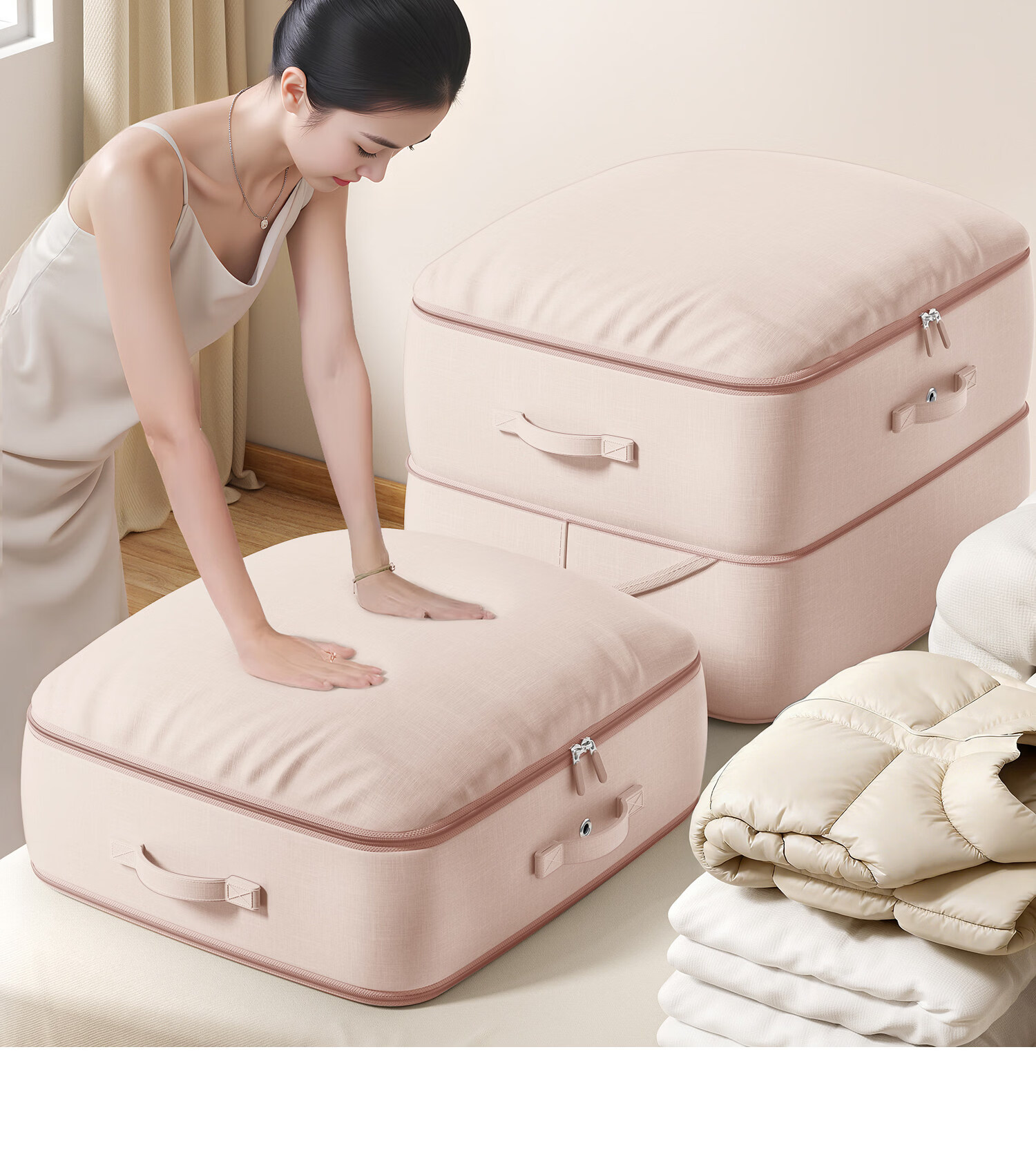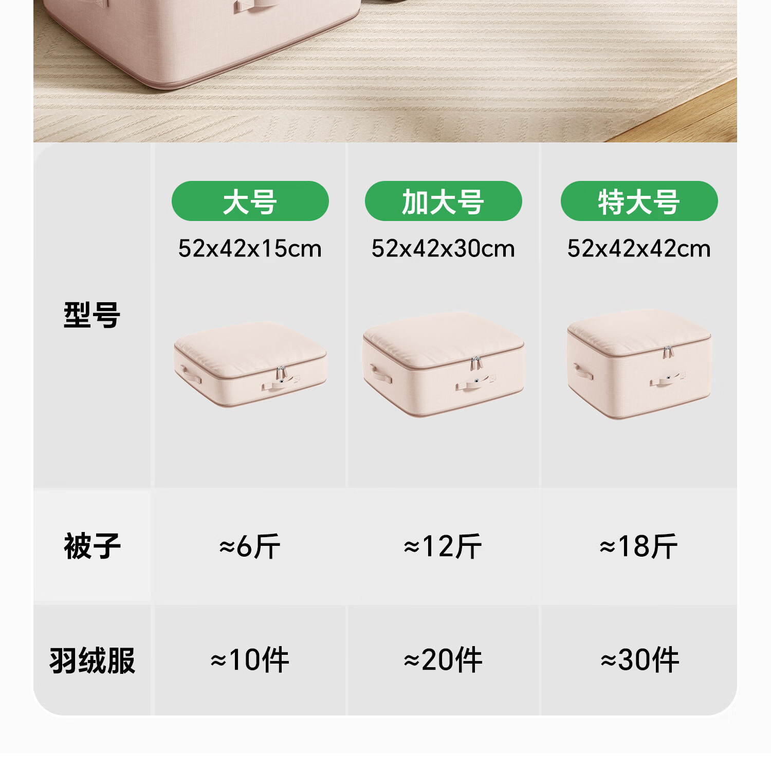 吱凡日本被子收纳袋羽绒服专用收纳袋大容量棉被衣服防潮压缩整理袋子 【加大号】豆沙粉【可装12斤被子或20件羽绒服】 【1个装】0异味
