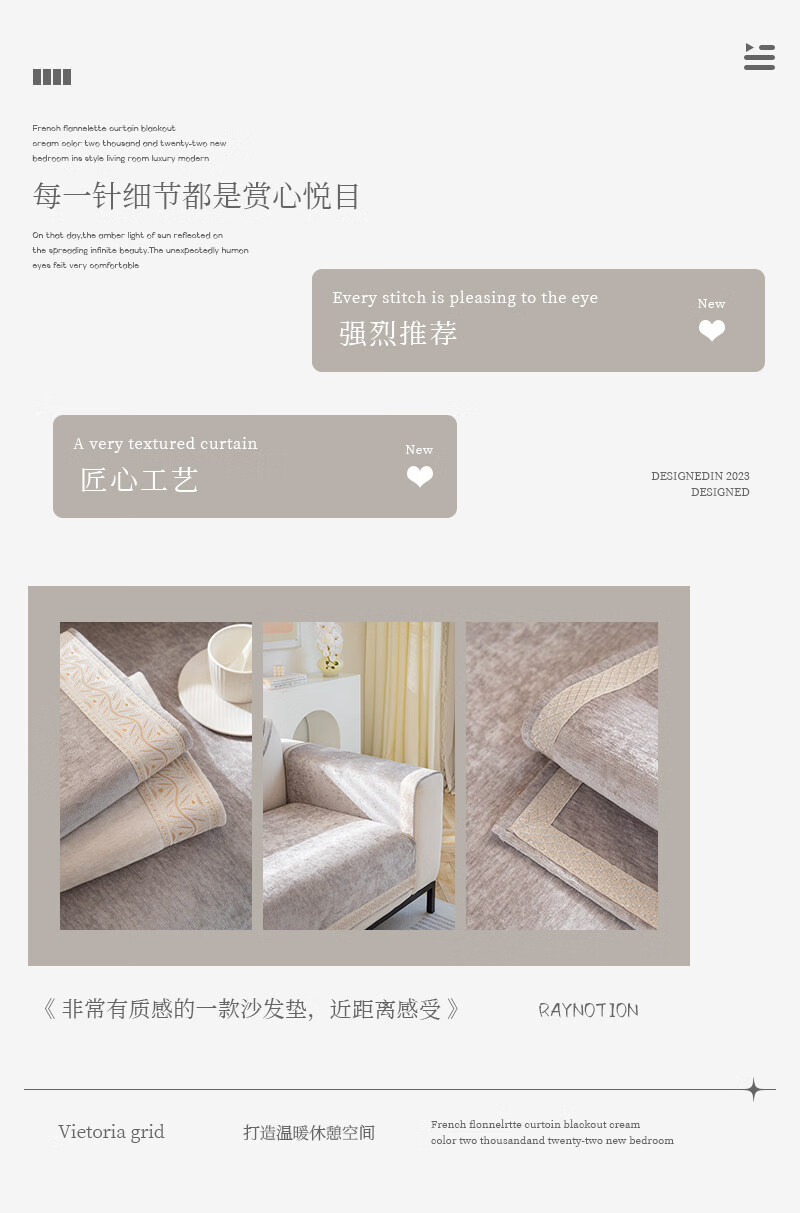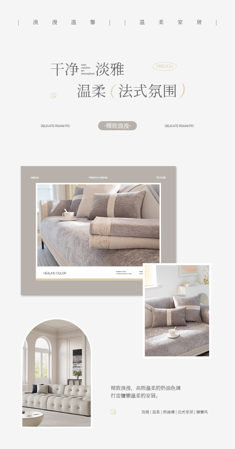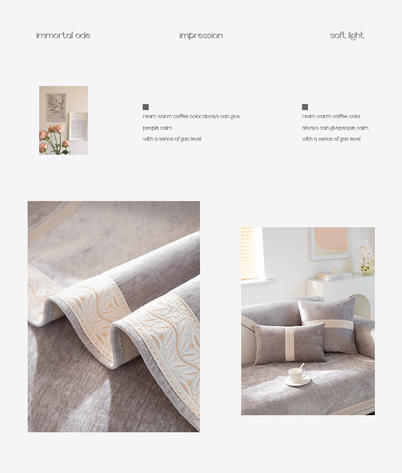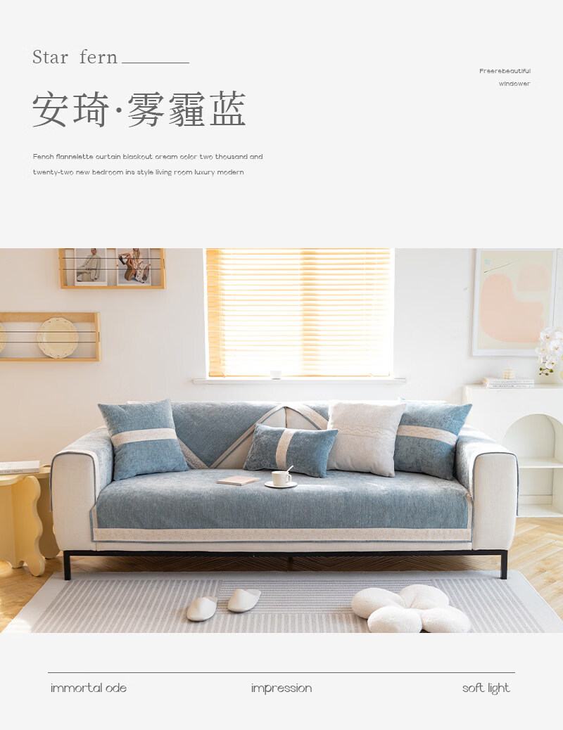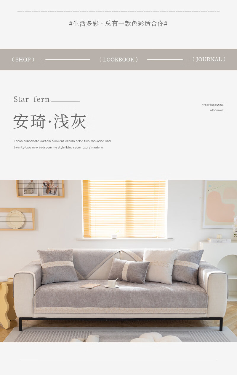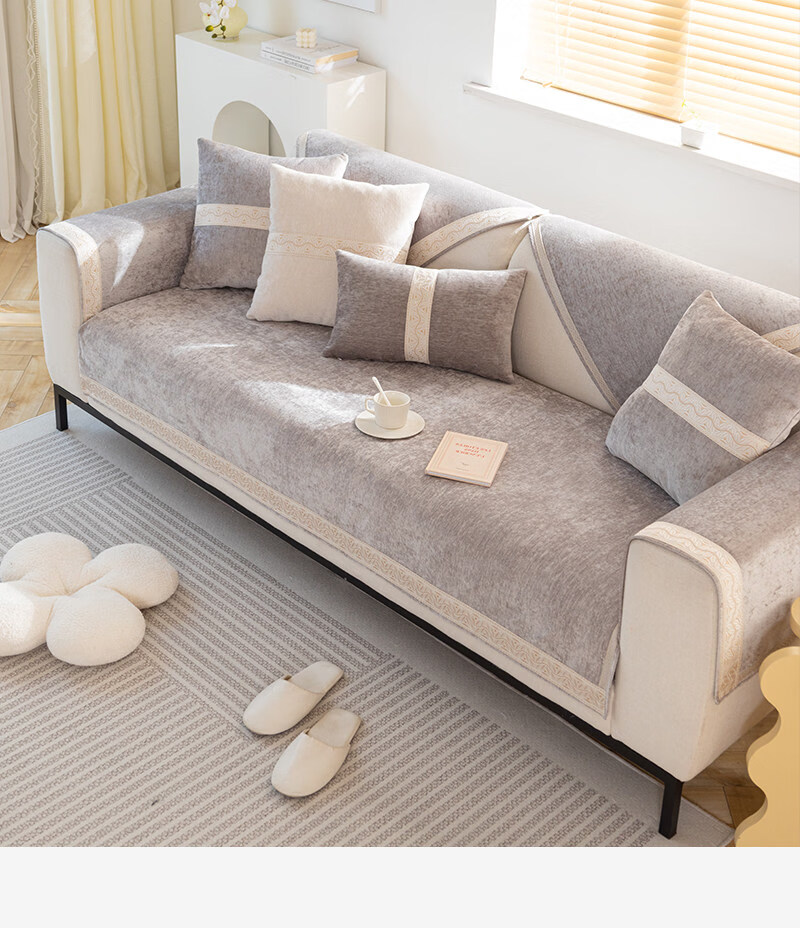 DONOYA 多罗亚简约现代轻奢沙发垫四季通用防滑2026年新款高端盖布雪尼尔座套罩 曼蒂-浅灰 1cm*1cm 定制专拍(定制不退换)