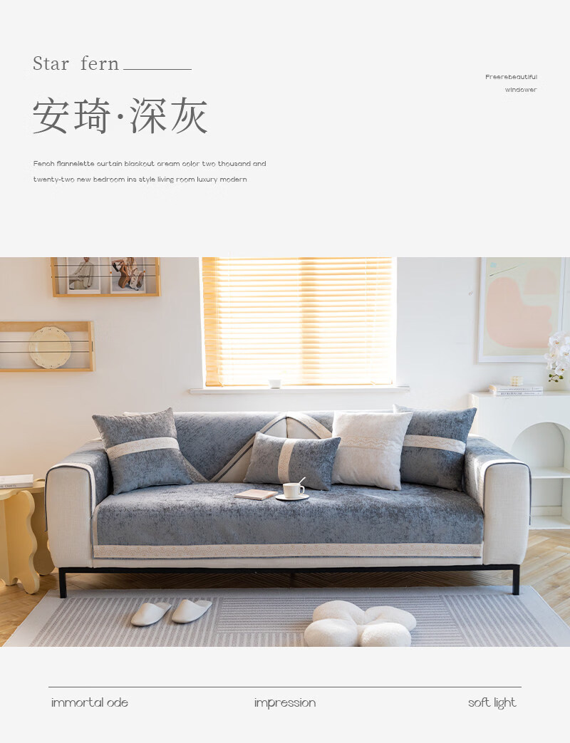 DONOYA 多罗亚雪尼尔简约现代沙发垫四季通用防滑2026年新款坐垫沙发套罩盖布巾 安琦-浅灰 1cm*1cm 定制专拍(定制不退换)