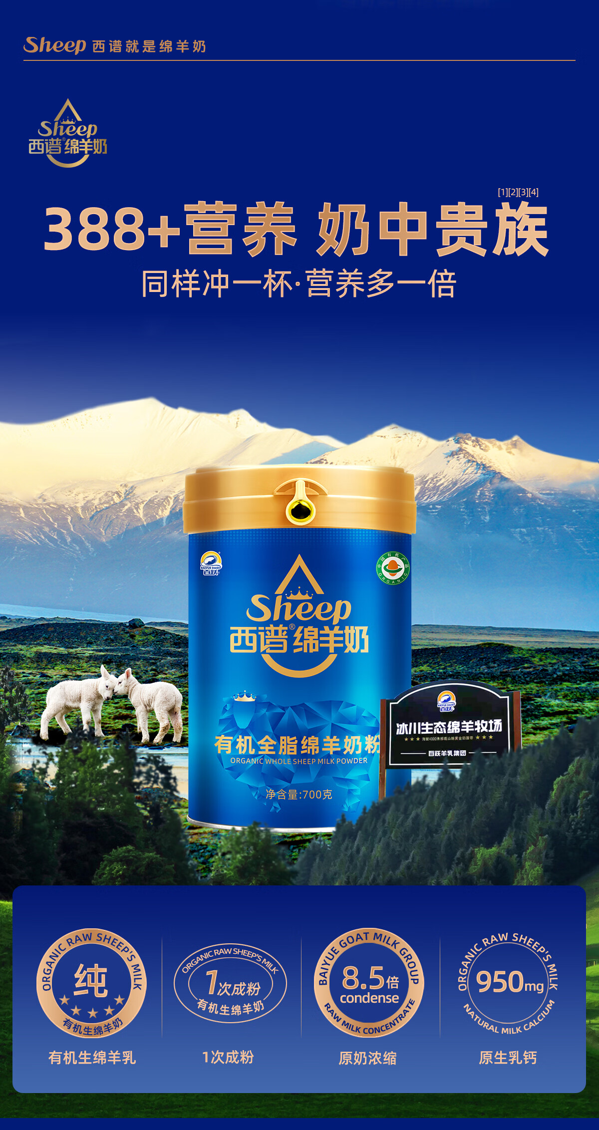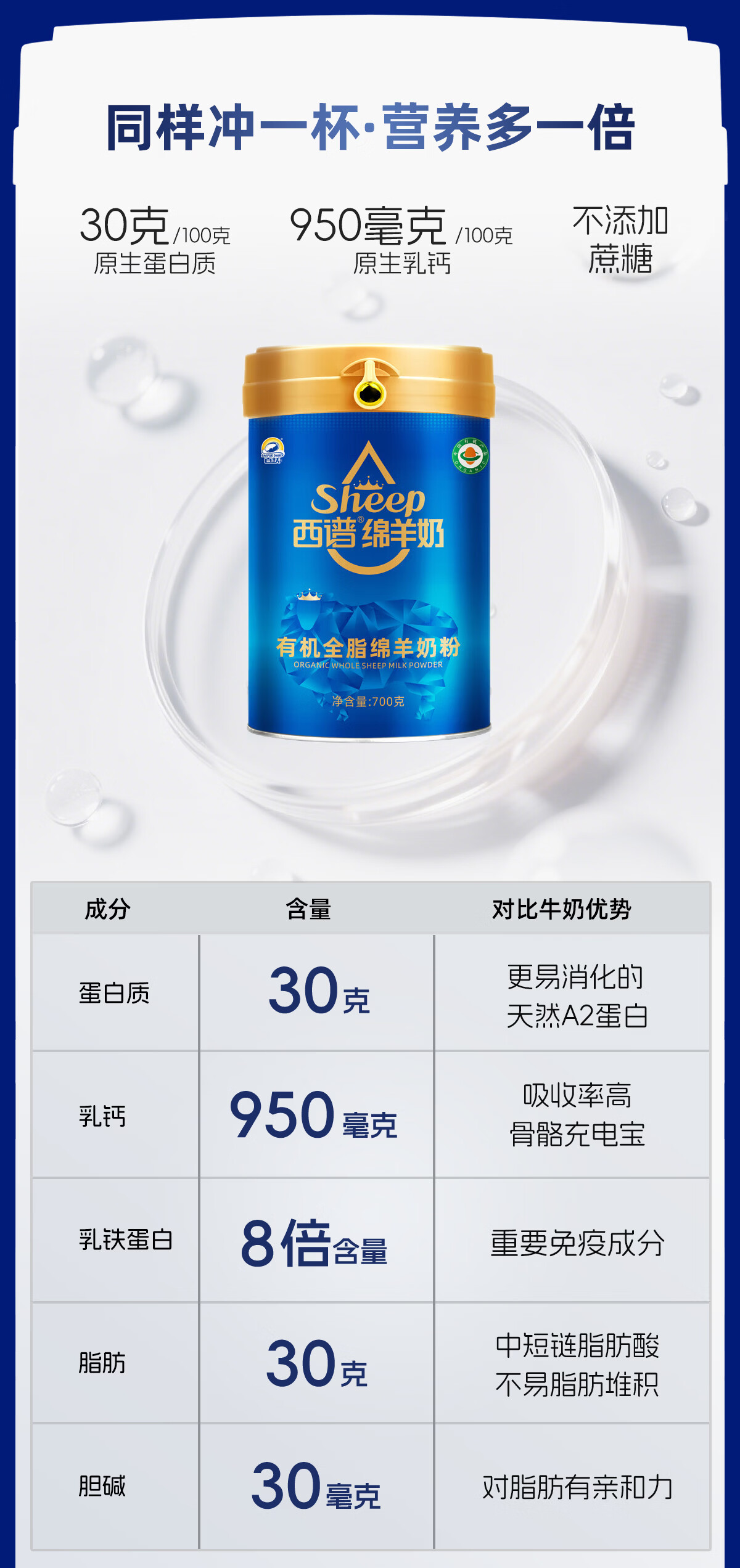 百跃西谱有机绵羊奶粉成人中老年学生孕妇新年送礼营养高钙奶粉 25克*2条/盒试用装
