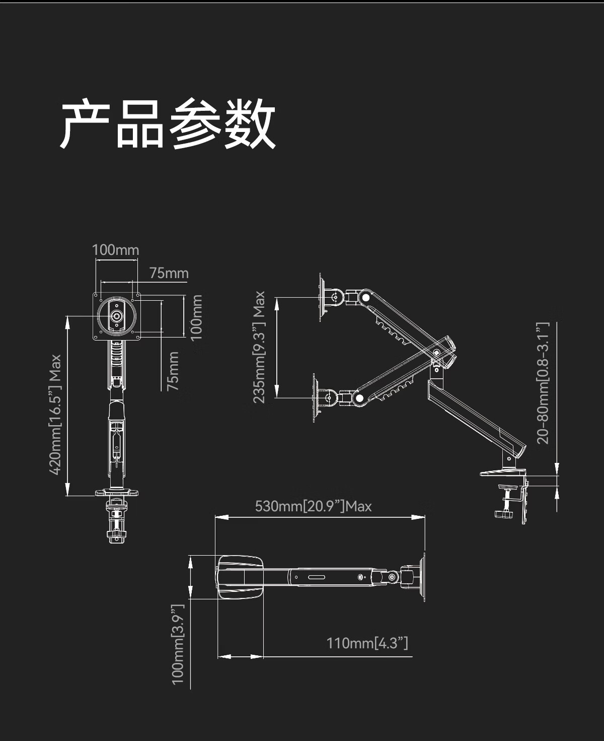 NB显示器支架 机械臂 电脑支架桌面夹式底座 屏幕升降增高架 显示屏支架臂17-32吋 适配卓威电竞AOC
