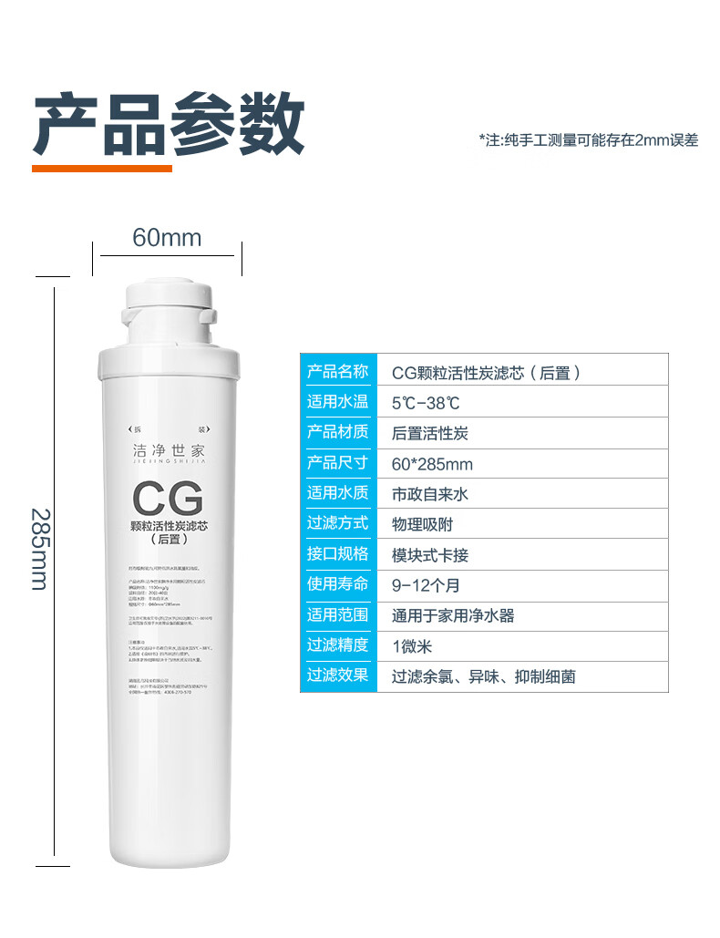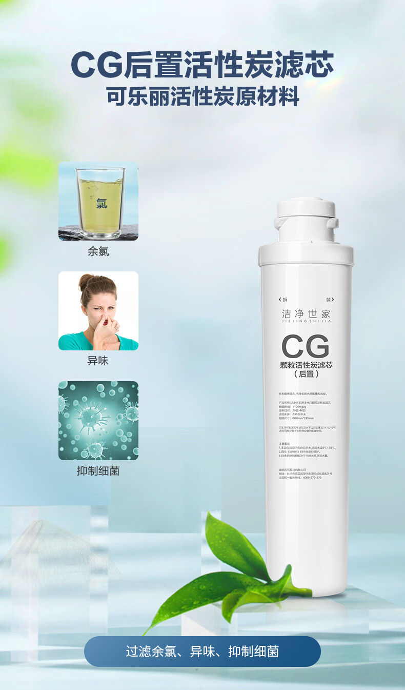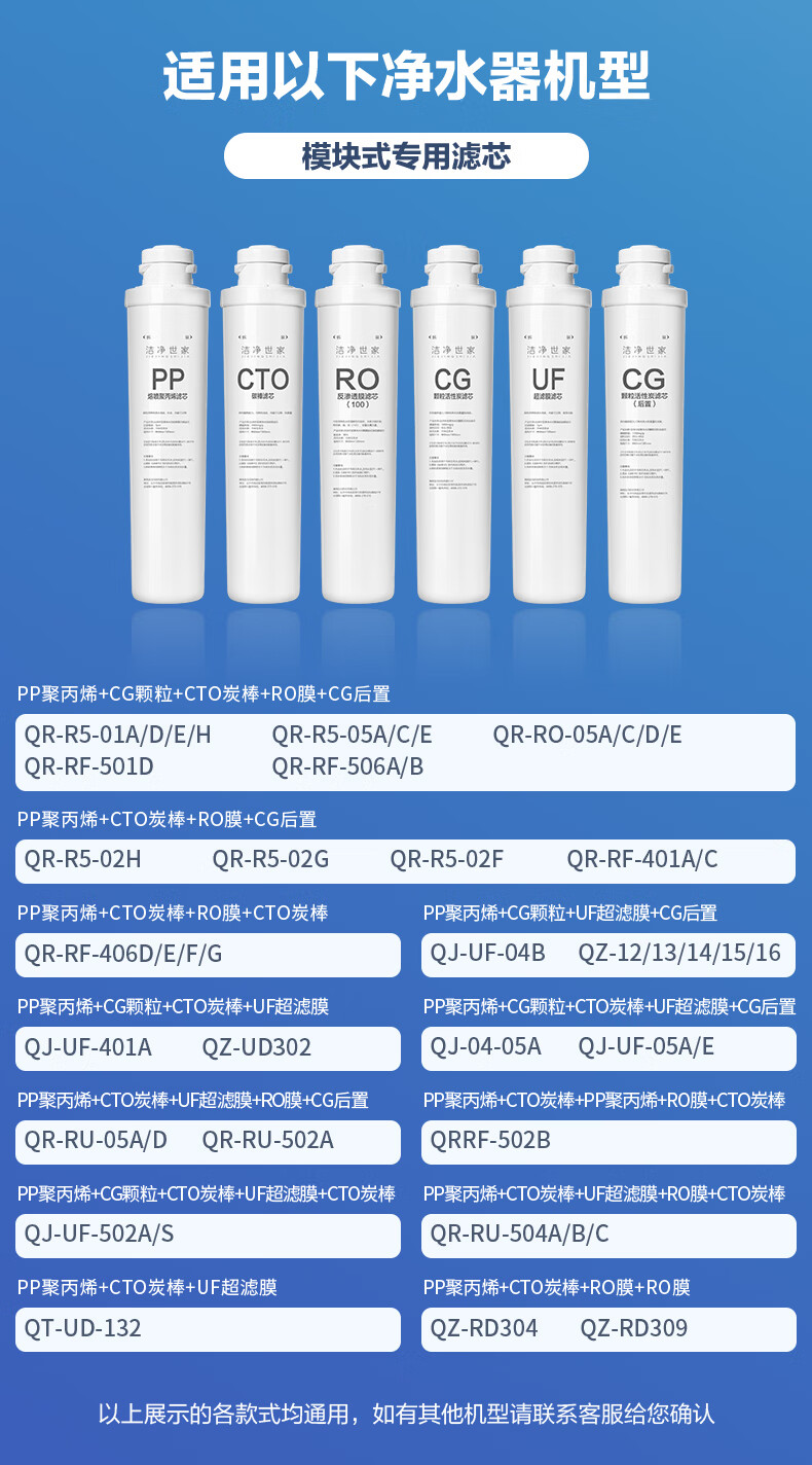 洁净世家适用沁园净水器滤芯全套模块式套装PP聚丙烯熔喷CG前置颗粒活性炭CTO碳棒CG后置RO反渗透膜 QR-RF-502B【5支装】