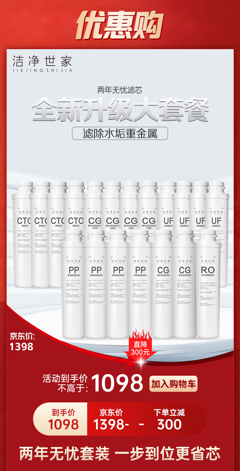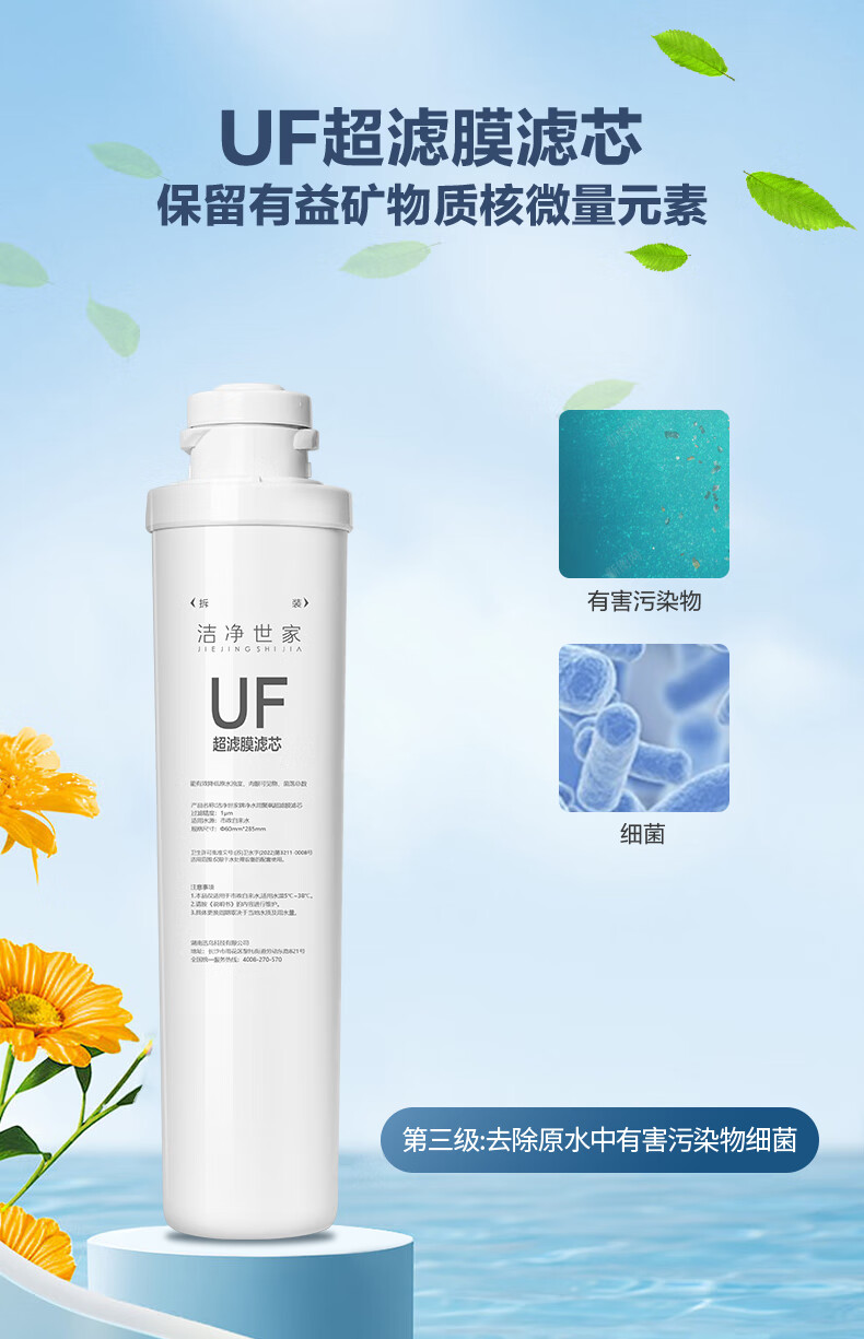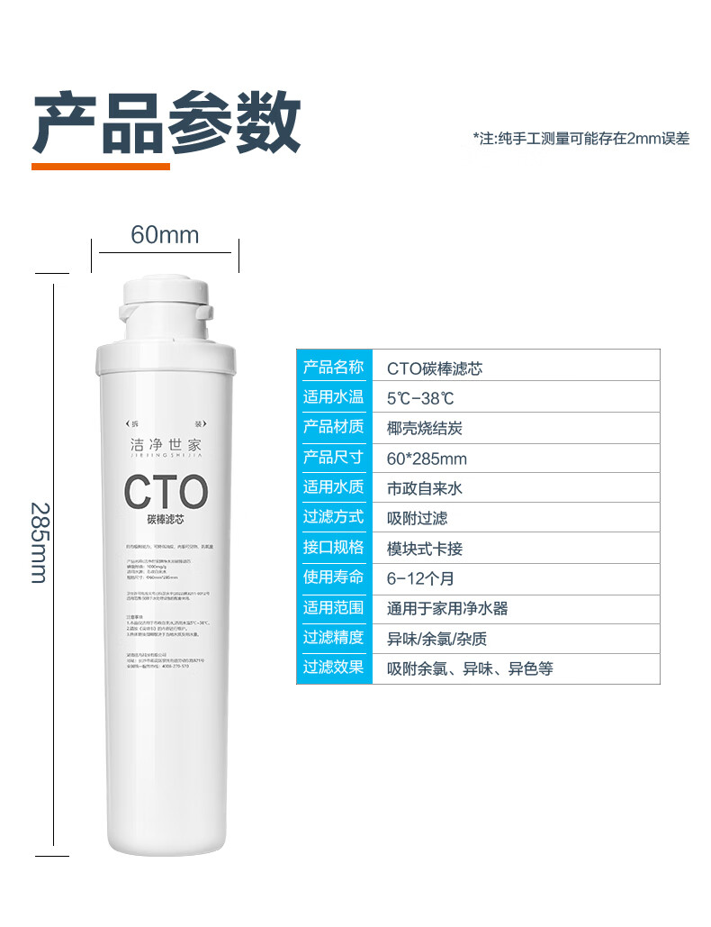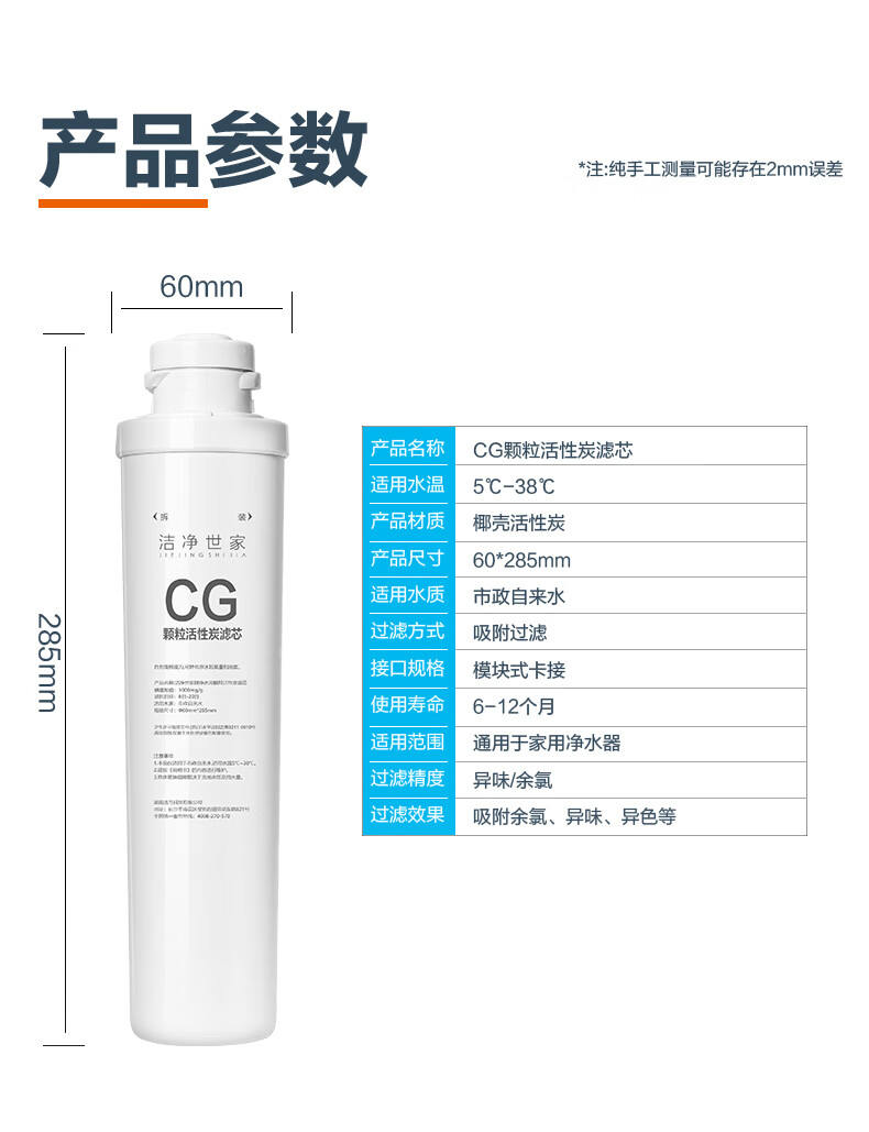 洁净世家适用沁园净水器滤芯全套模块式套装PP聚丙烯熔喷CG前置颗粒活性炭CTO碳棒CG后置RO反渗透膜 QR-RF-502B【5支装】