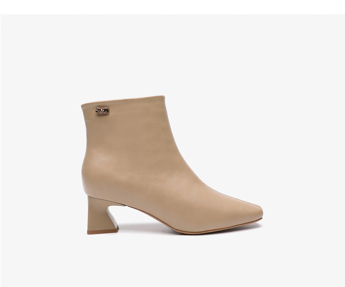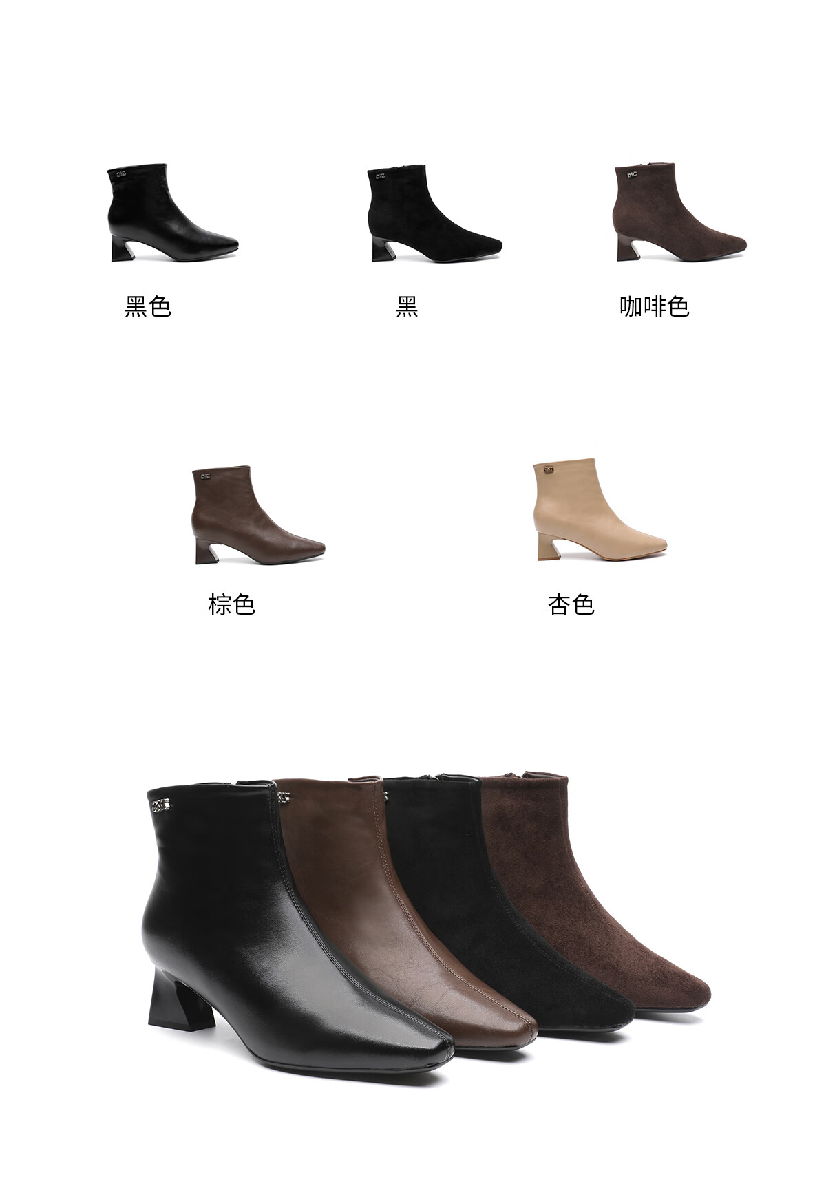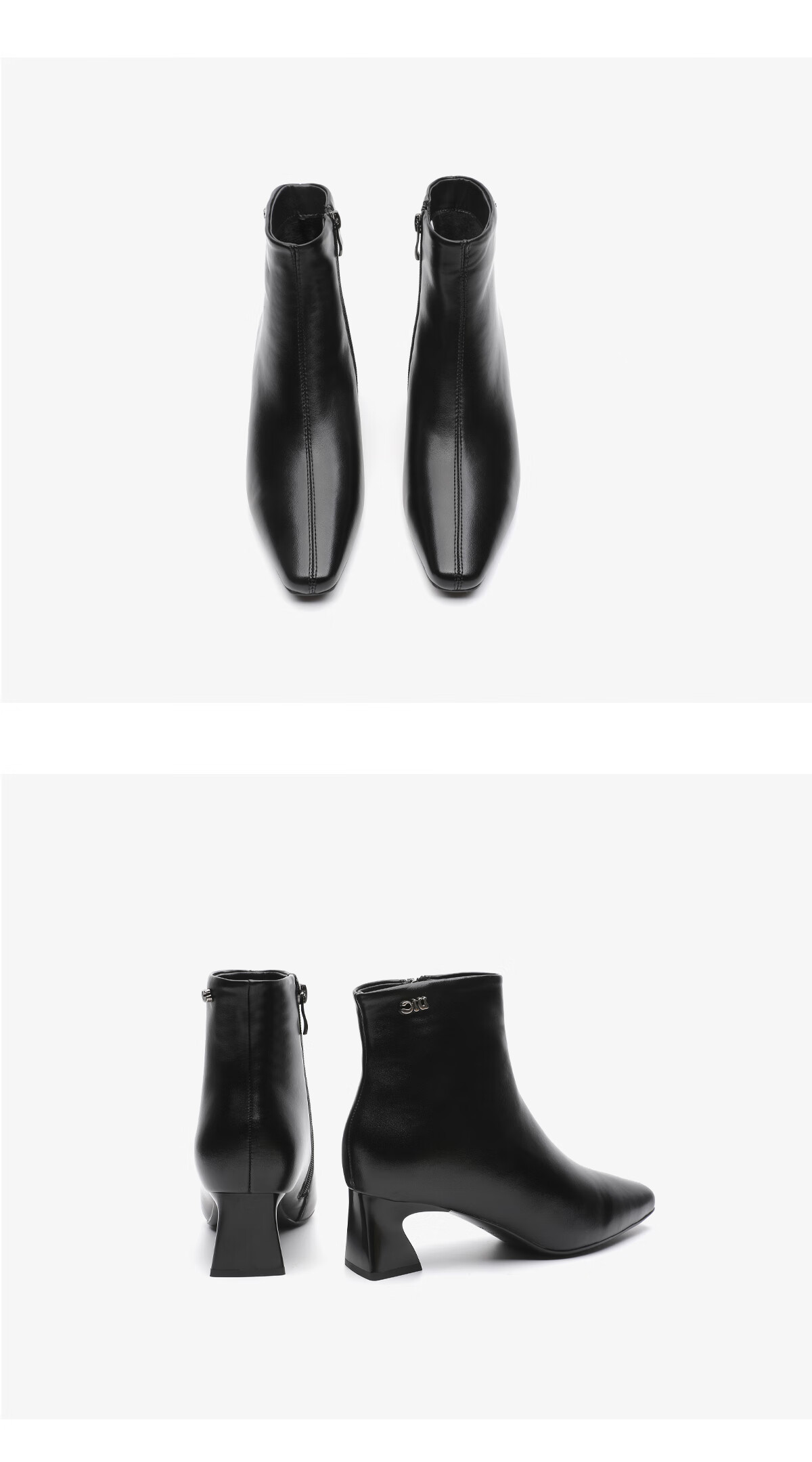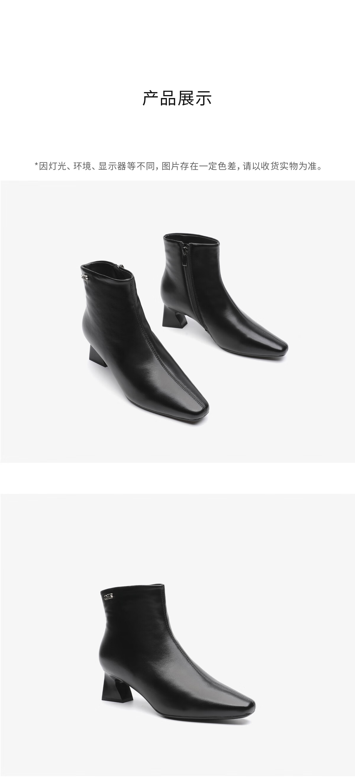 月芽儿复古短靴女款2025新款冬季方头瘦瘦靴侧拉链显瘦时装靴 绒里黑色01T 34