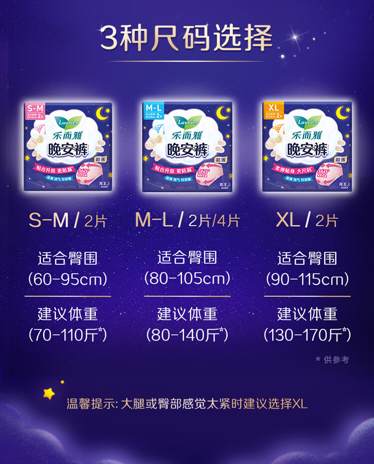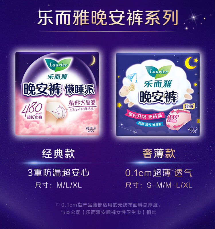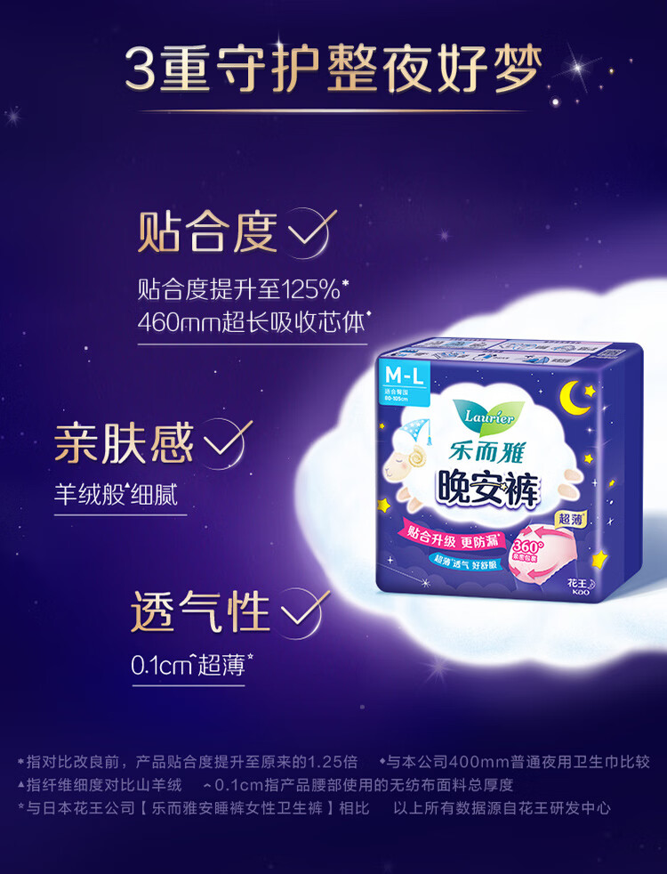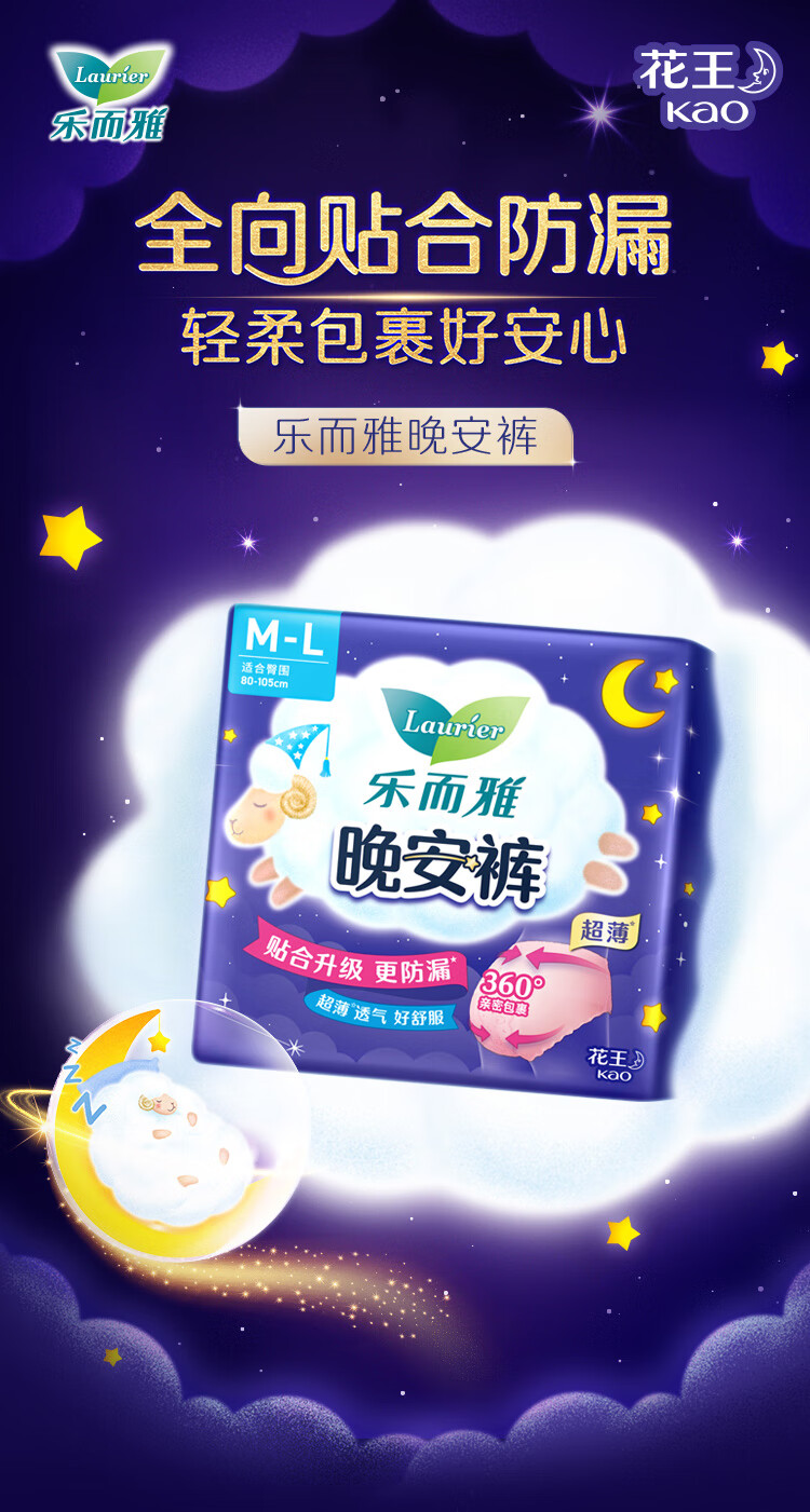 花王晚安裤 安心裤型夜用卫生巾 安睡裤 量大防侧漏 M-L码 20片 100-140斤