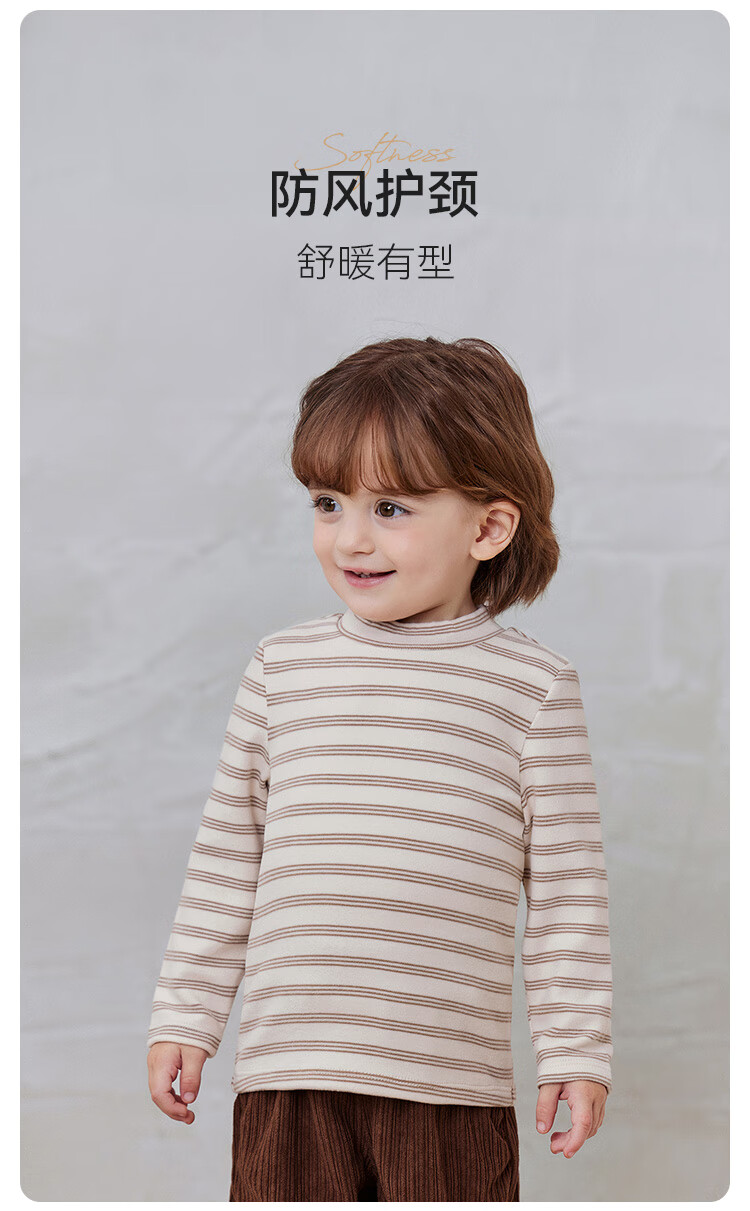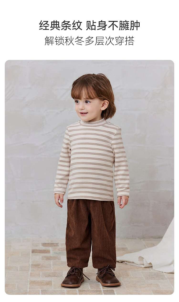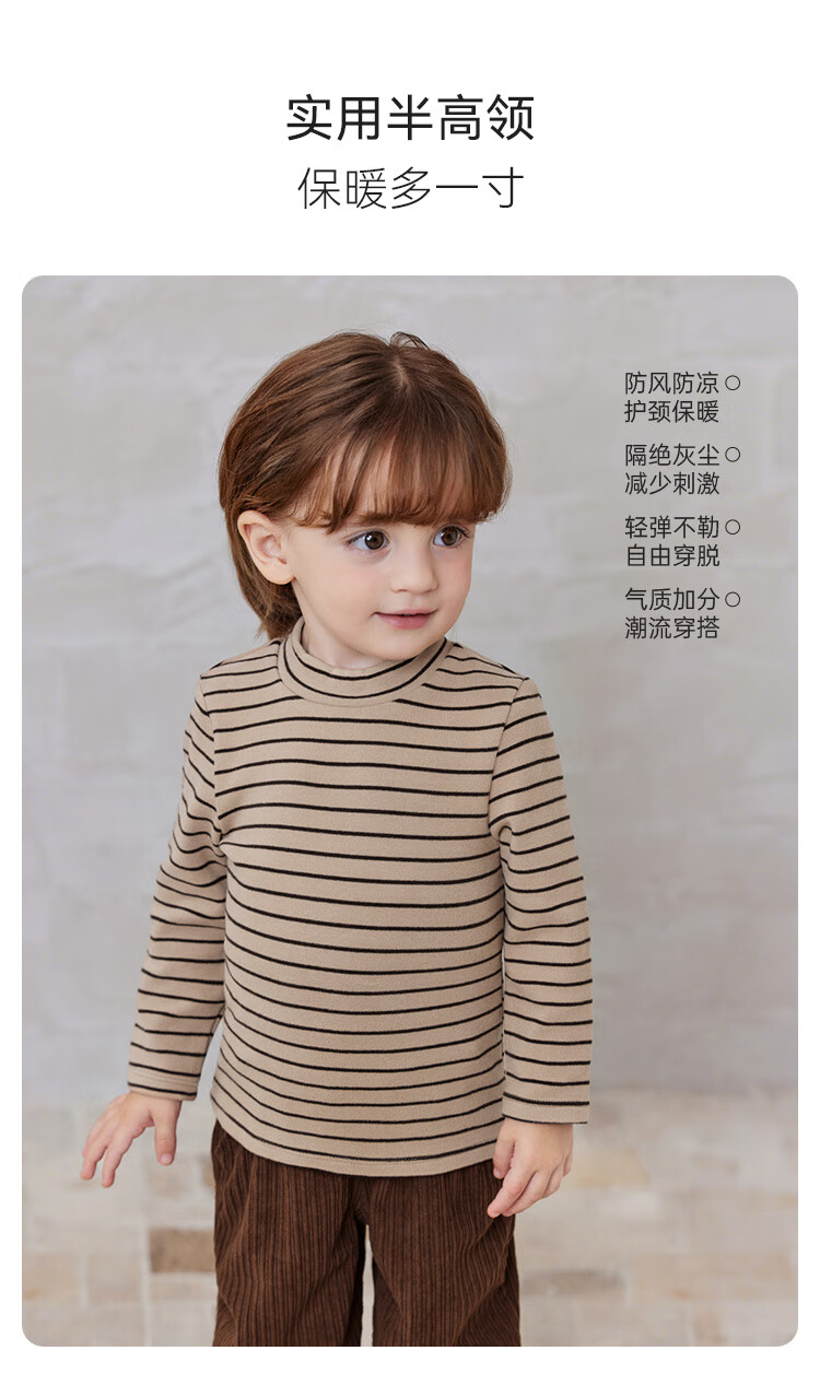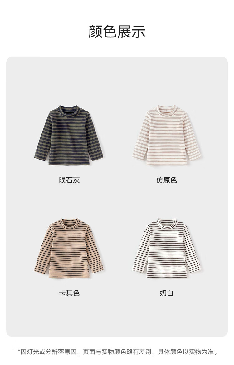 babylove【清仓】婴幼儿保暖t恤春秋季长袖条纹打底衫男女宝宝外出百搭 陨石灰 90