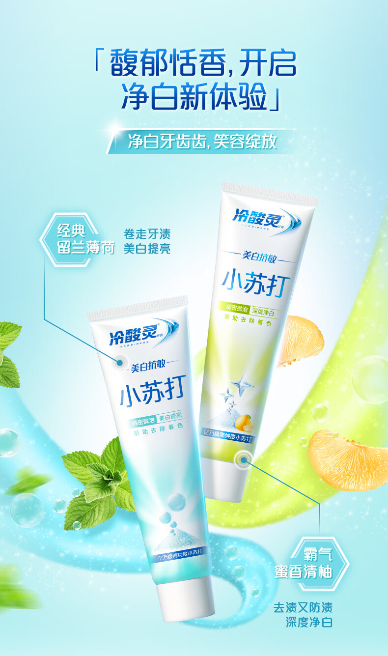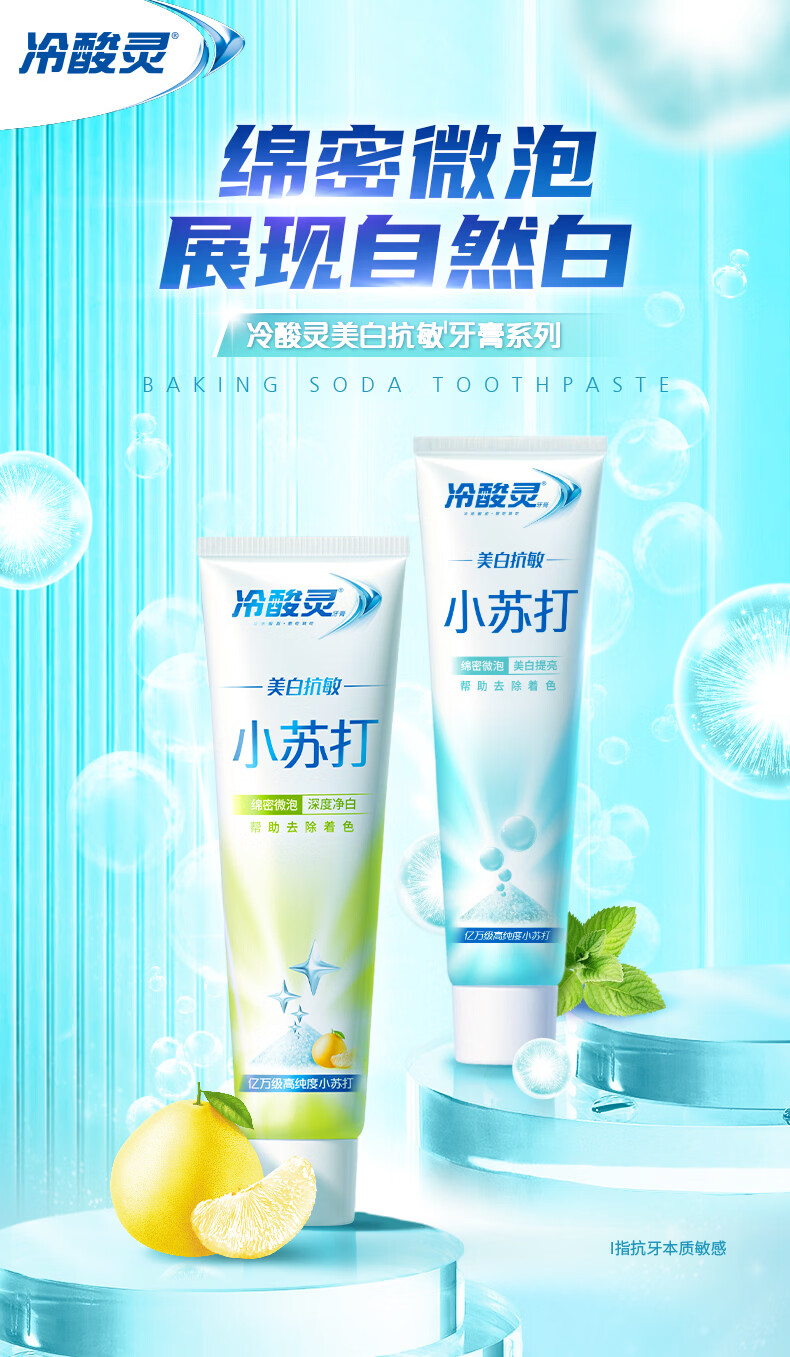 冷酸灵美白抗敏小苏打成人牙膏(清润蜜果)120g 清新口气【送家政卡】