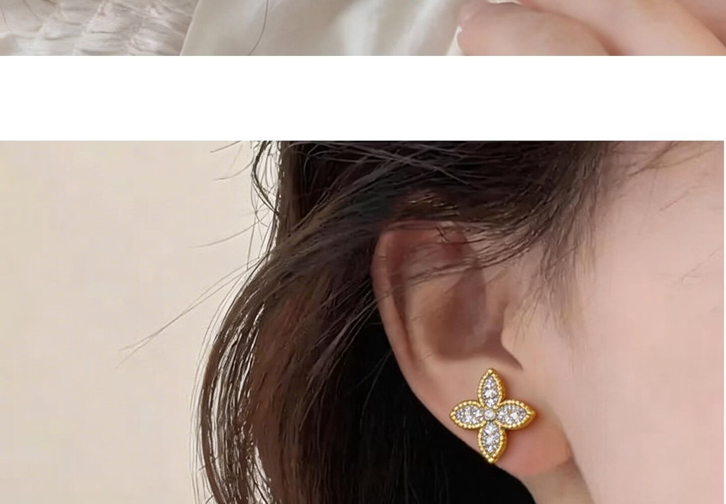 KRISTEN JUDI绿色花朵耳环女小众气质耳钉甜美学生高级感精致满钻耳饰38节礼物 送女友老婆闺蜜实用浪漫礼物 金色花瓣耳坠纪念日礼盒