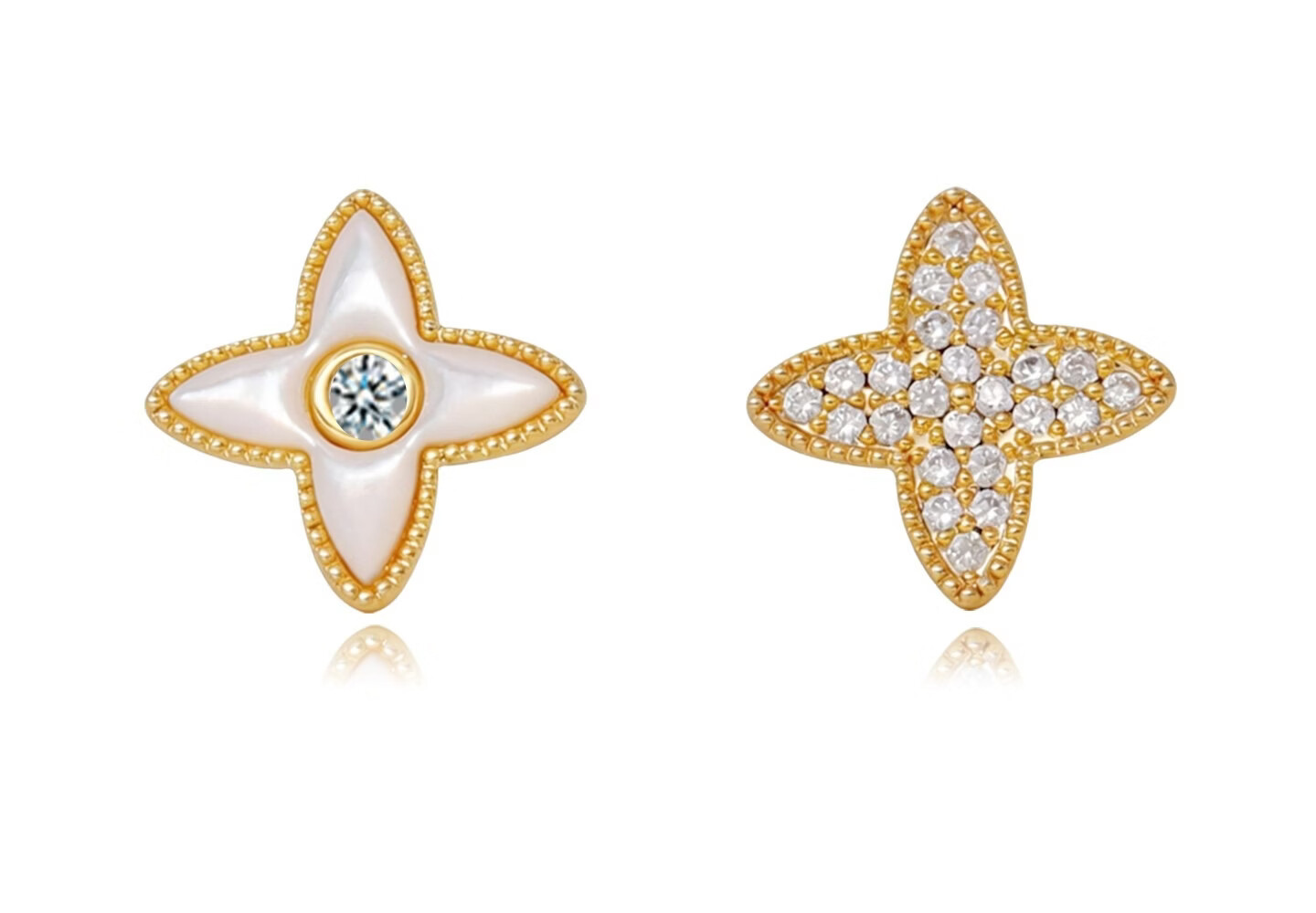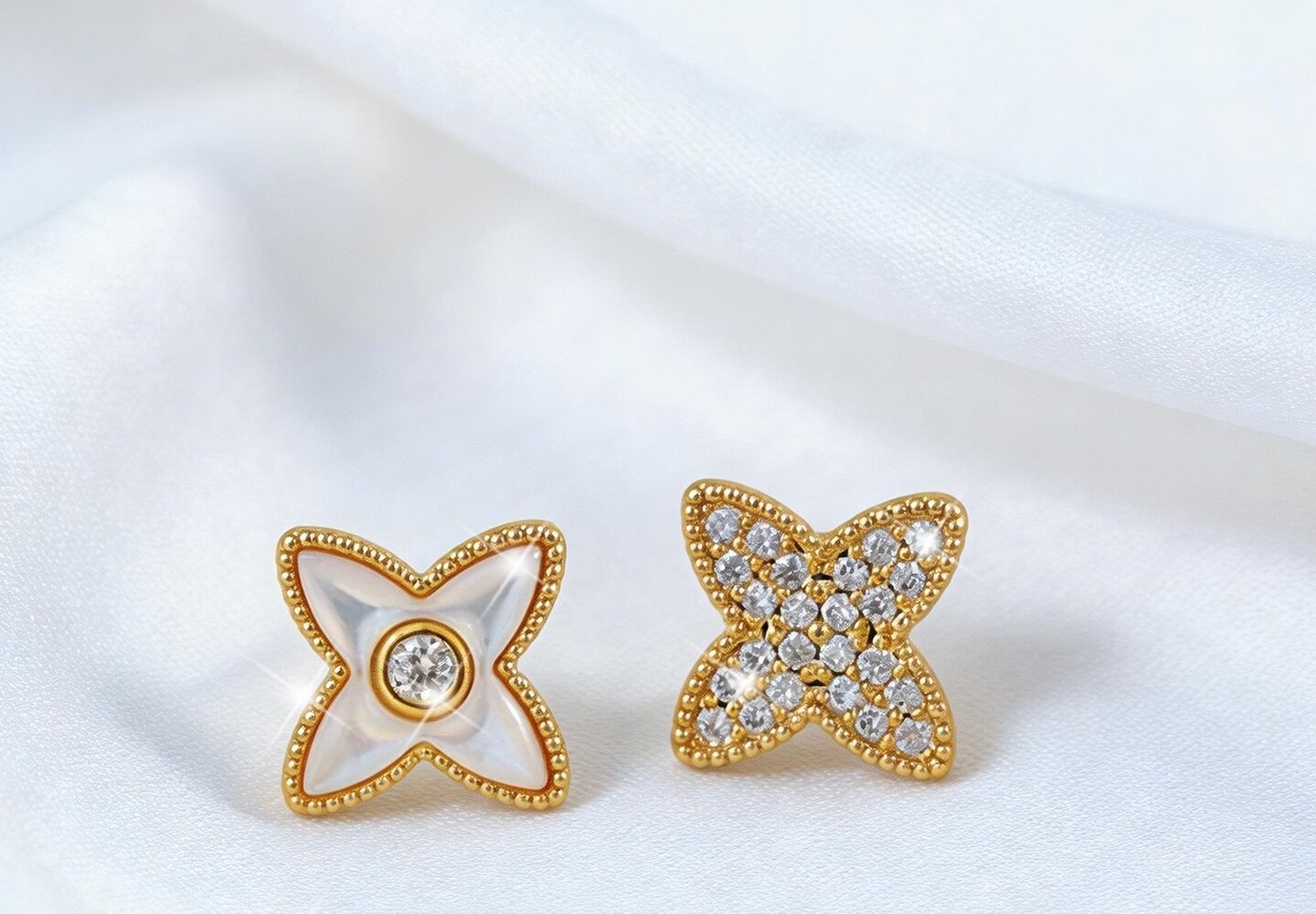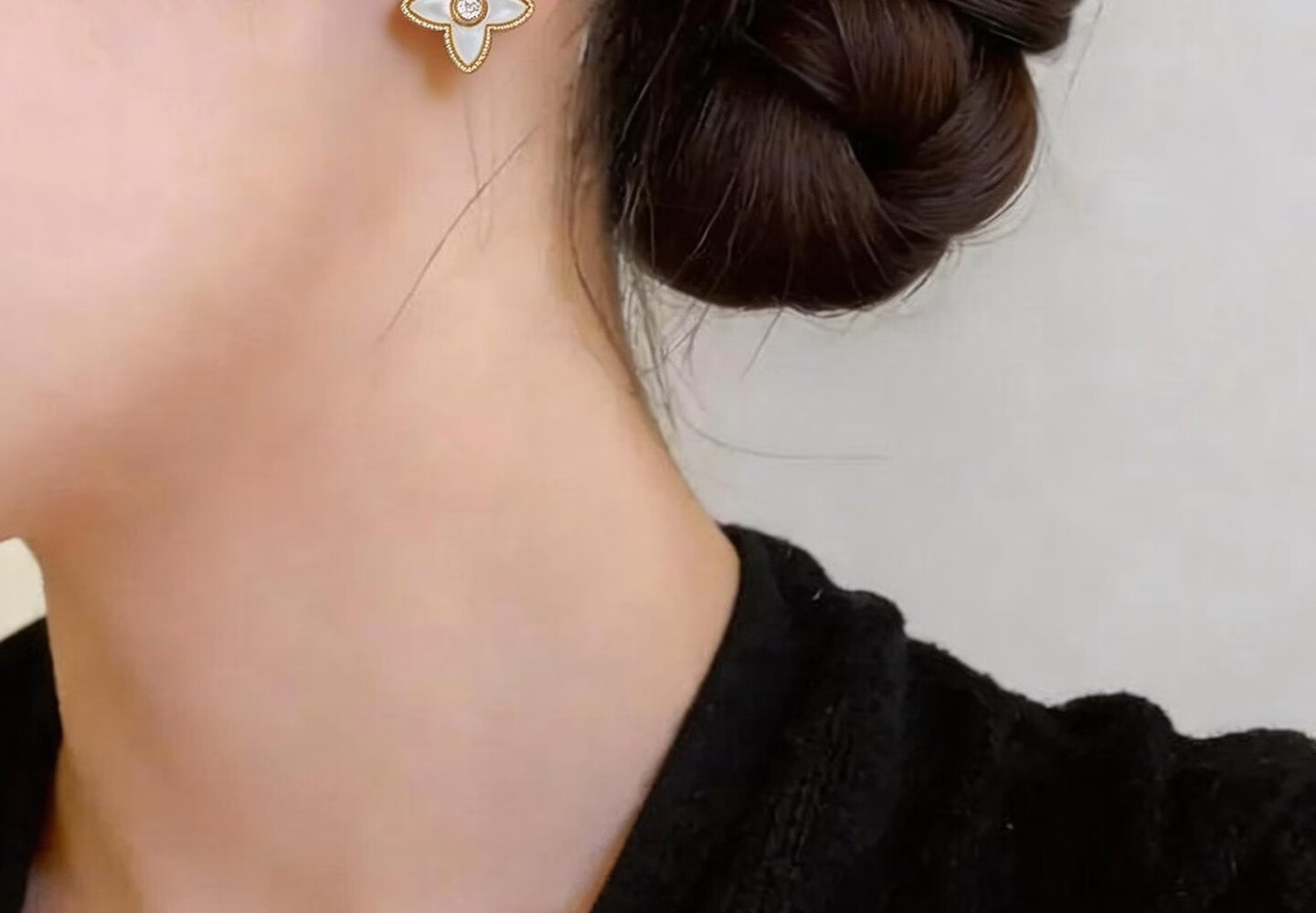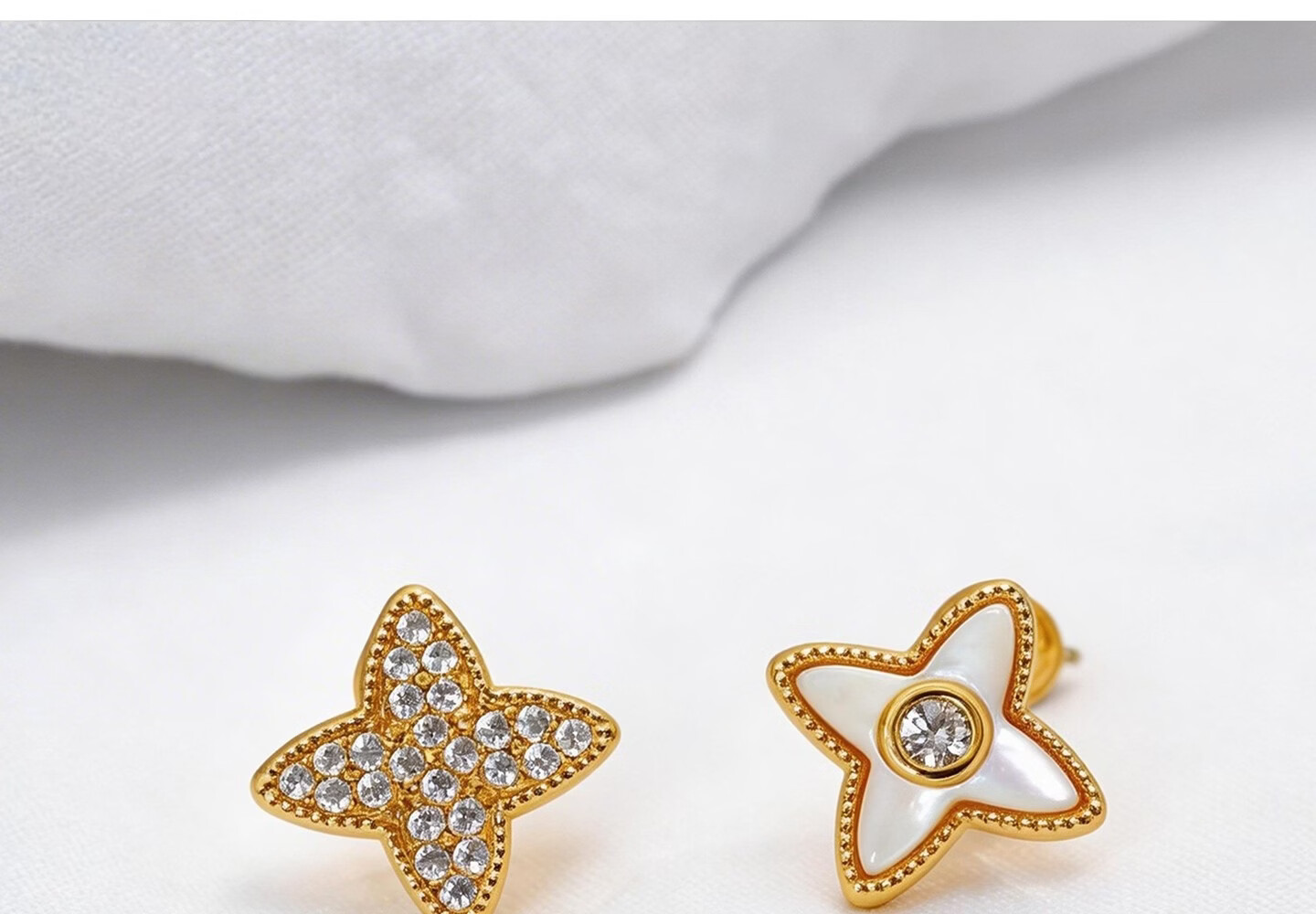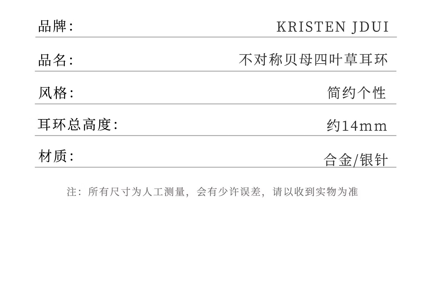 KRISTEN JUDI四叶草耳钉女银针贝母不对称贝壳耳环轻奢高级感2026新款耳饰礼物 实用生日礼物送女友老婆闺蜜