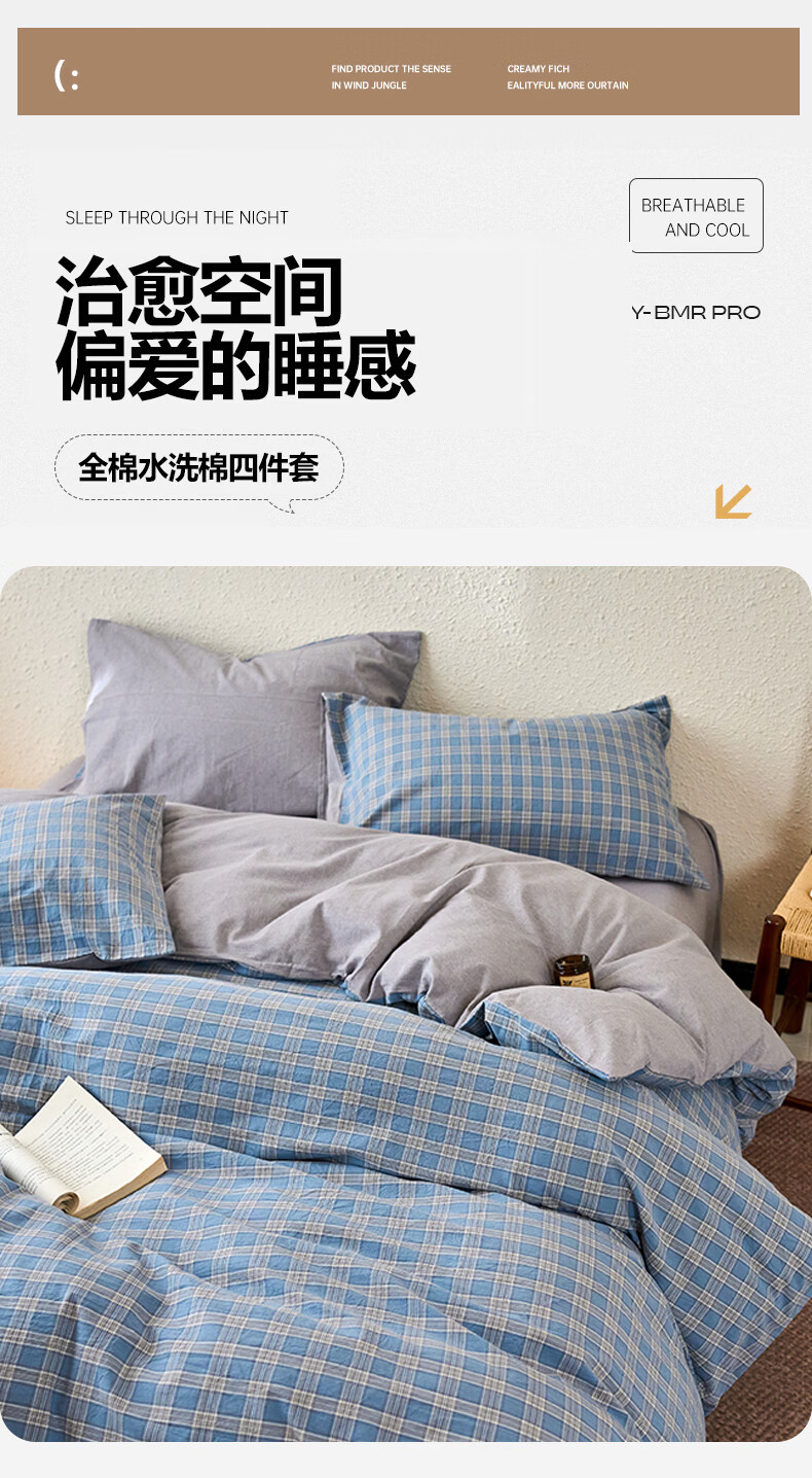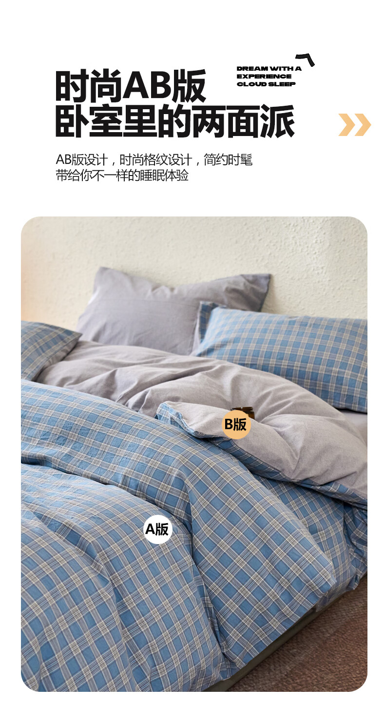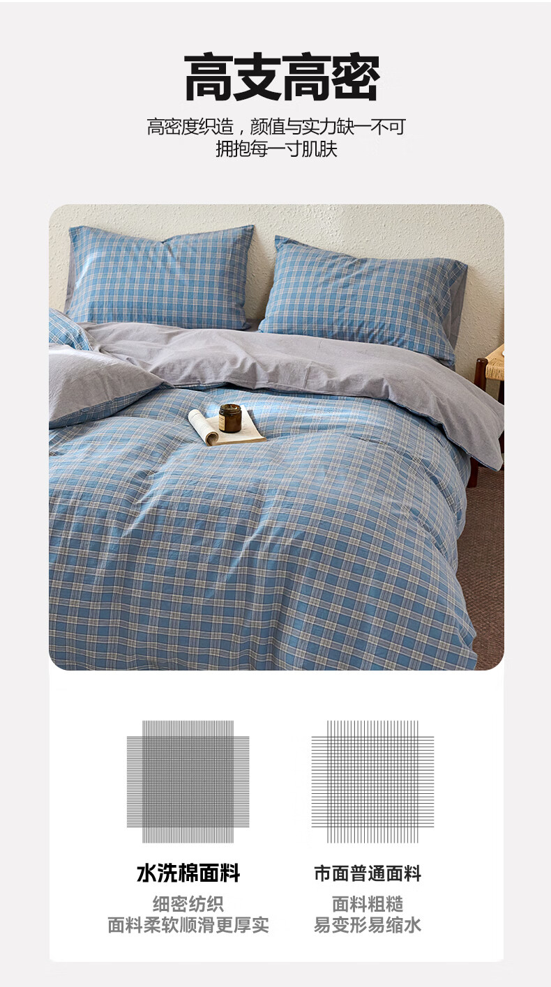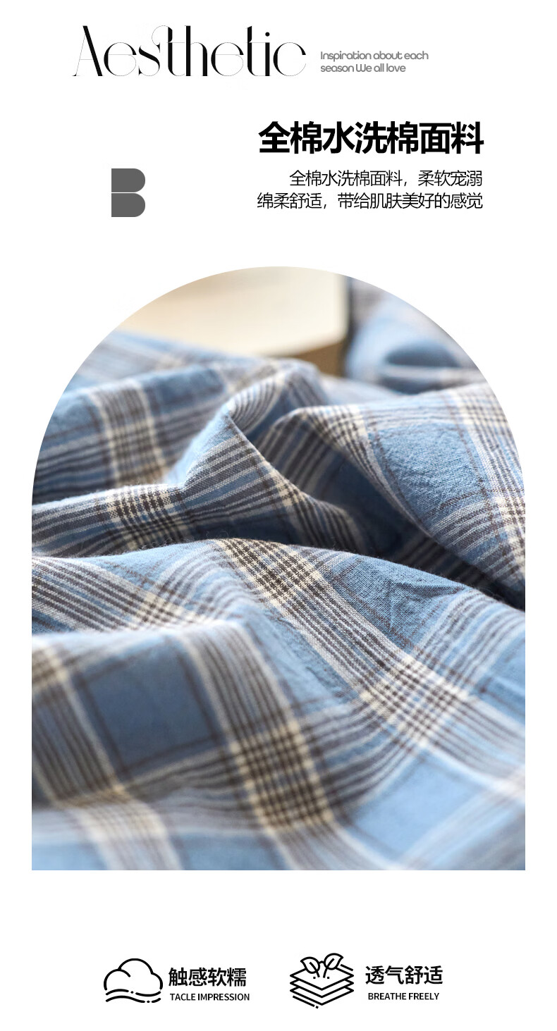 无印良品a类纯棉床上四件套全棉水洗棉床单被套亲肤裸睡三件套床笠款床品4 丝蕴-蓝【A类全棉 亲肤裸睡】 1.5m 床单款 四件套-被套200*230cm