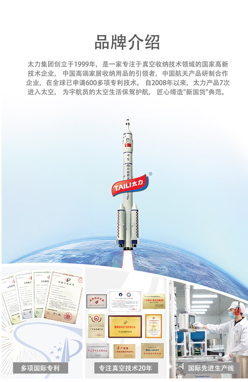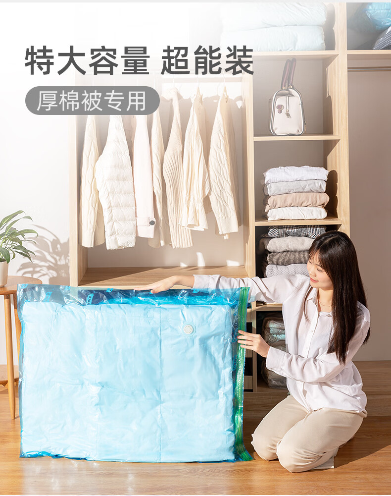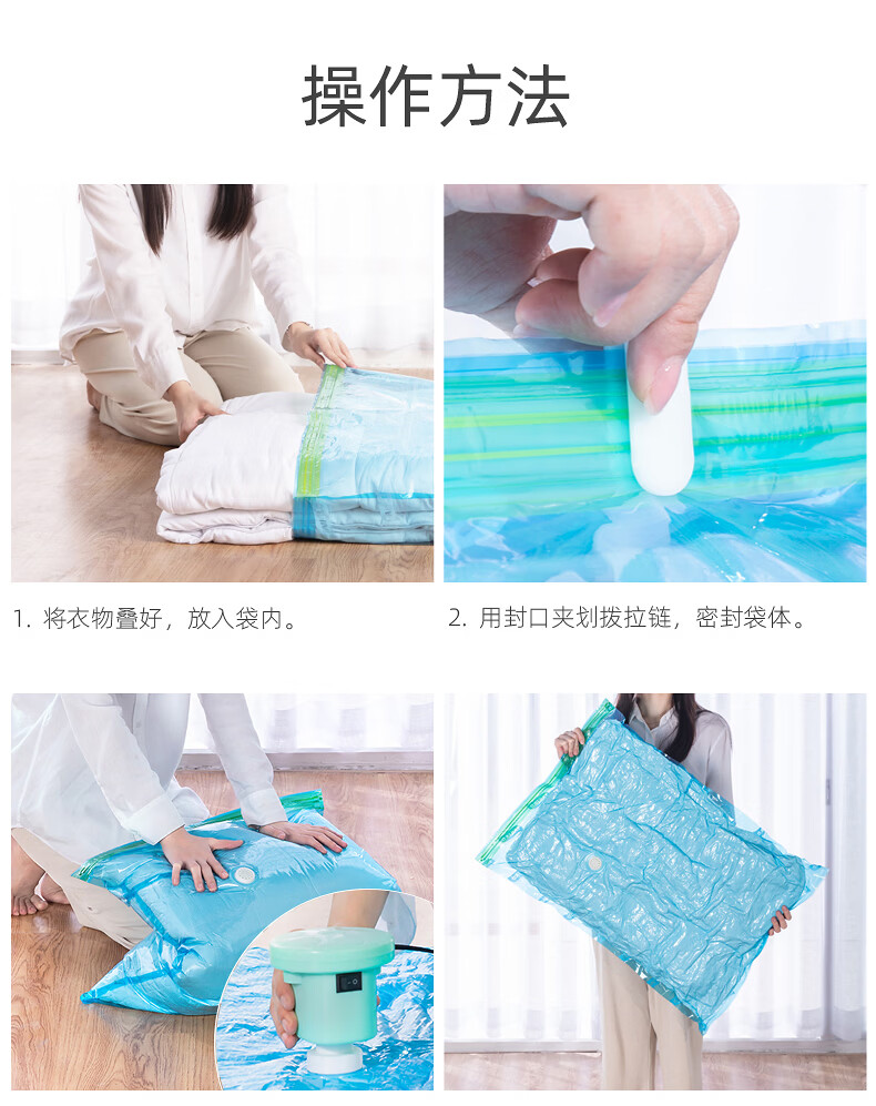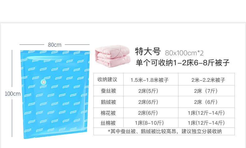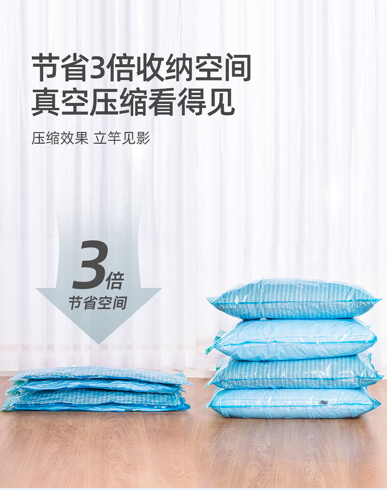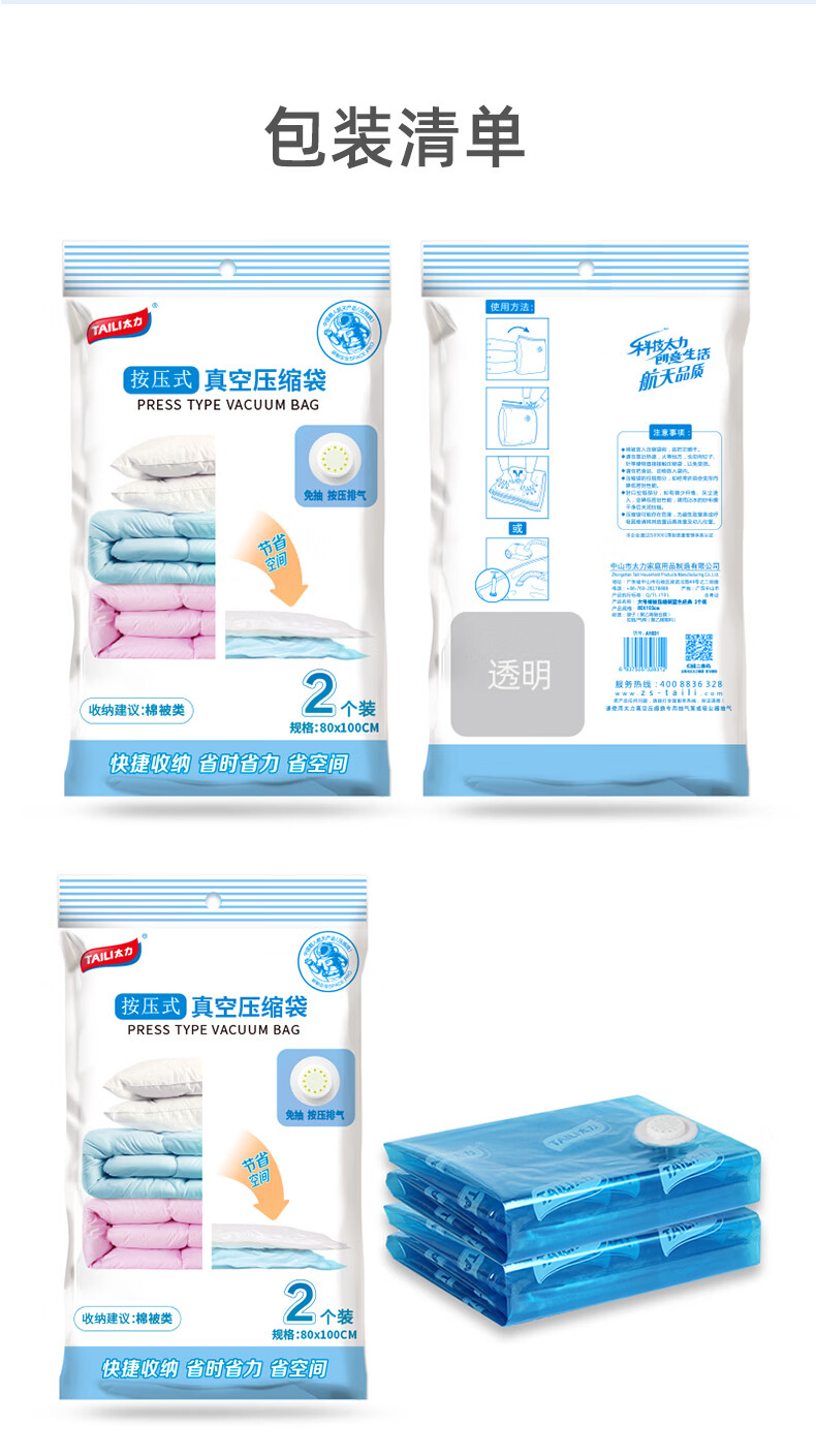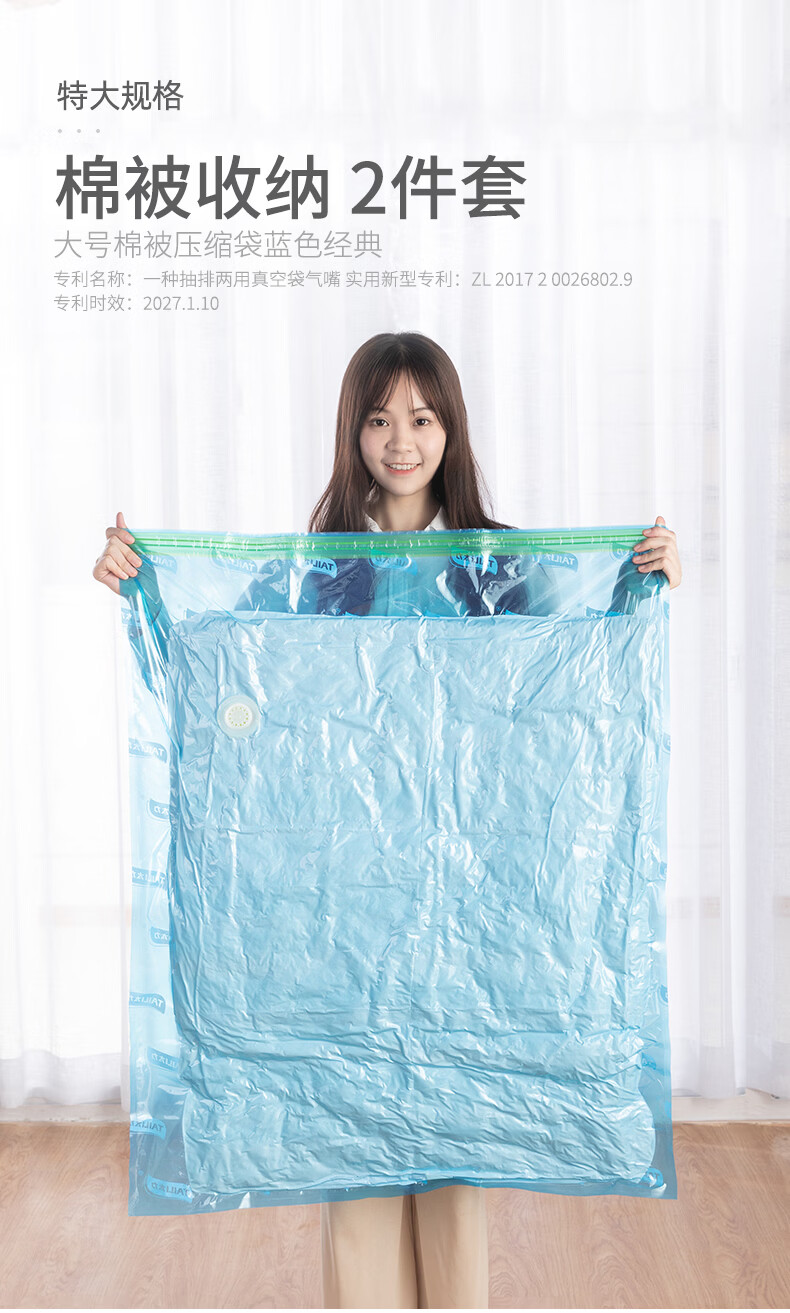 太力真空收纳压缩袋被子衣服专用羽绒服衣物旅行神器棉被抽气平面 80*100cm*2个 蓝色