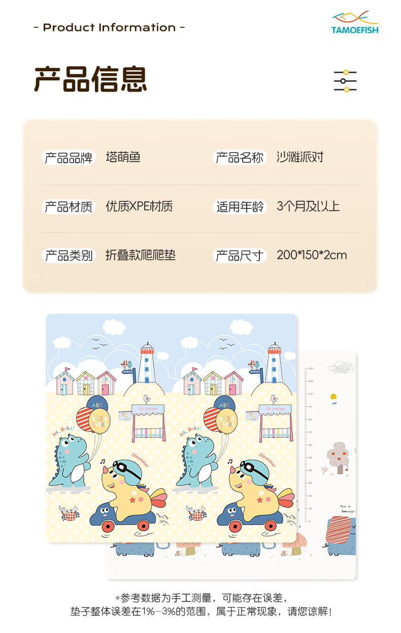 塔萌鱼 爬行垫宝宝爬爬垫婴儿XPE折叠地垫泡沫防滑儿童玩具垫子午休垫厚