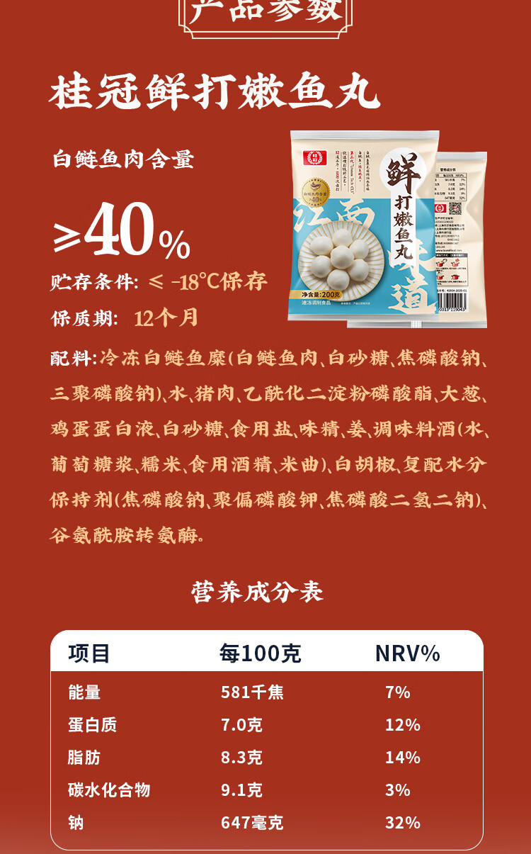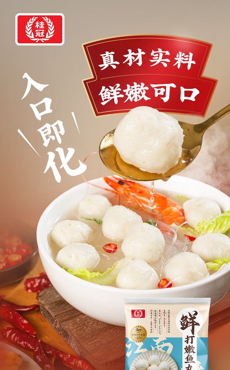 桂冠鲜打嫩鱼丸200g 白鲢鱼糜 湖泊水养殖 火锅丸子食材 麻辣烫关东煮