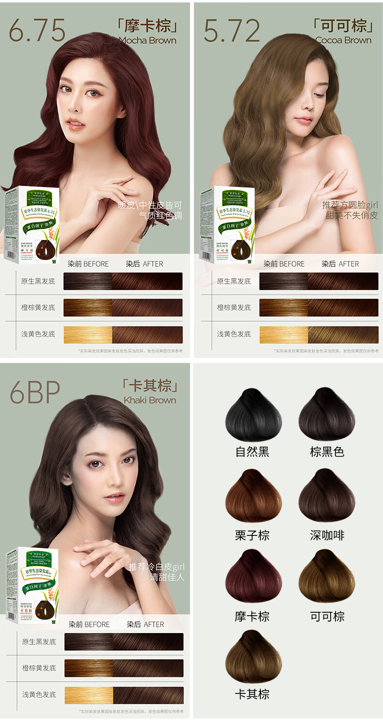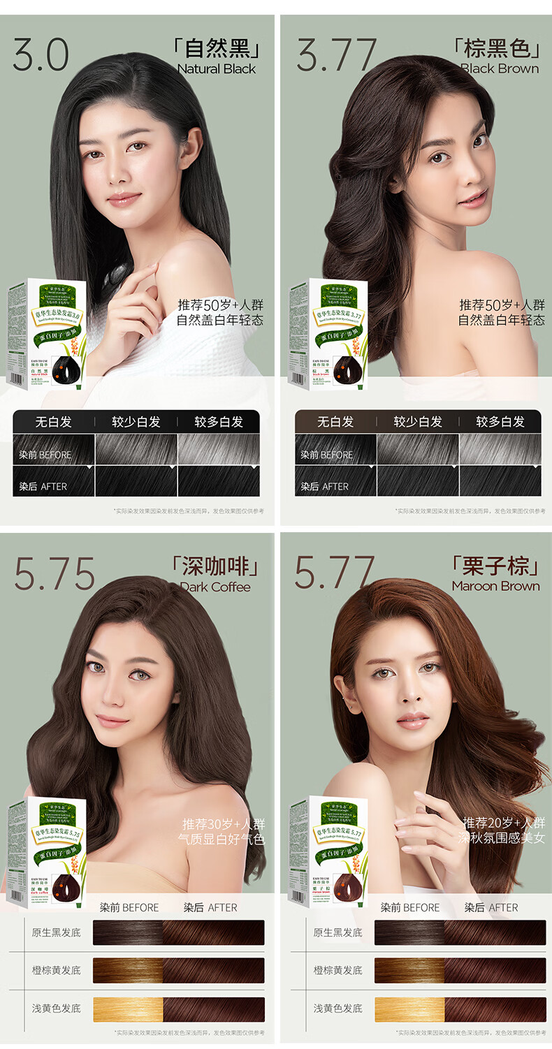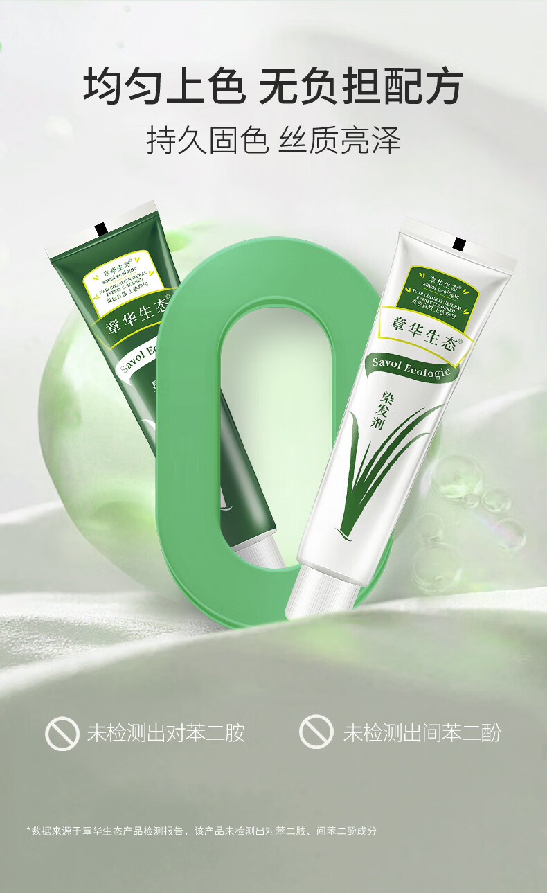 章华生态染发霜142ml (一梳黑染发剂黑色系可盖白染头膏无对苯二胺) 棕黑色(盖白减龄)【买就随机送袋包发膜/洗发水】