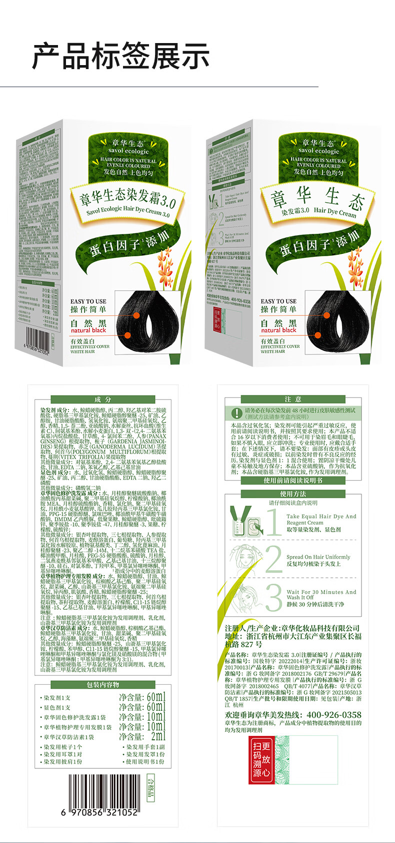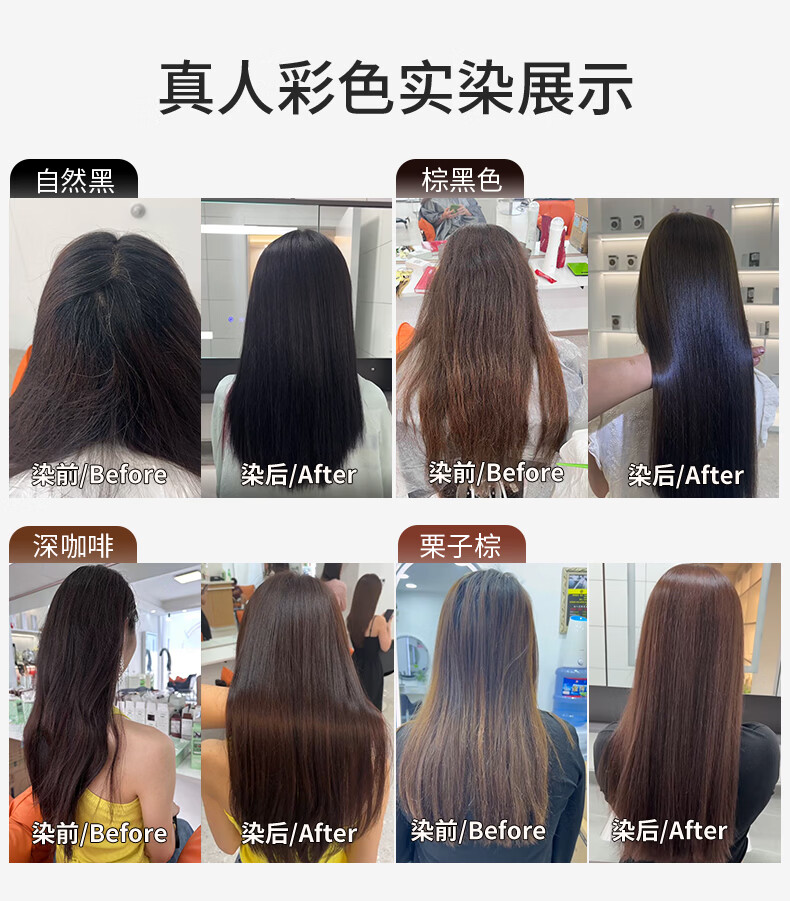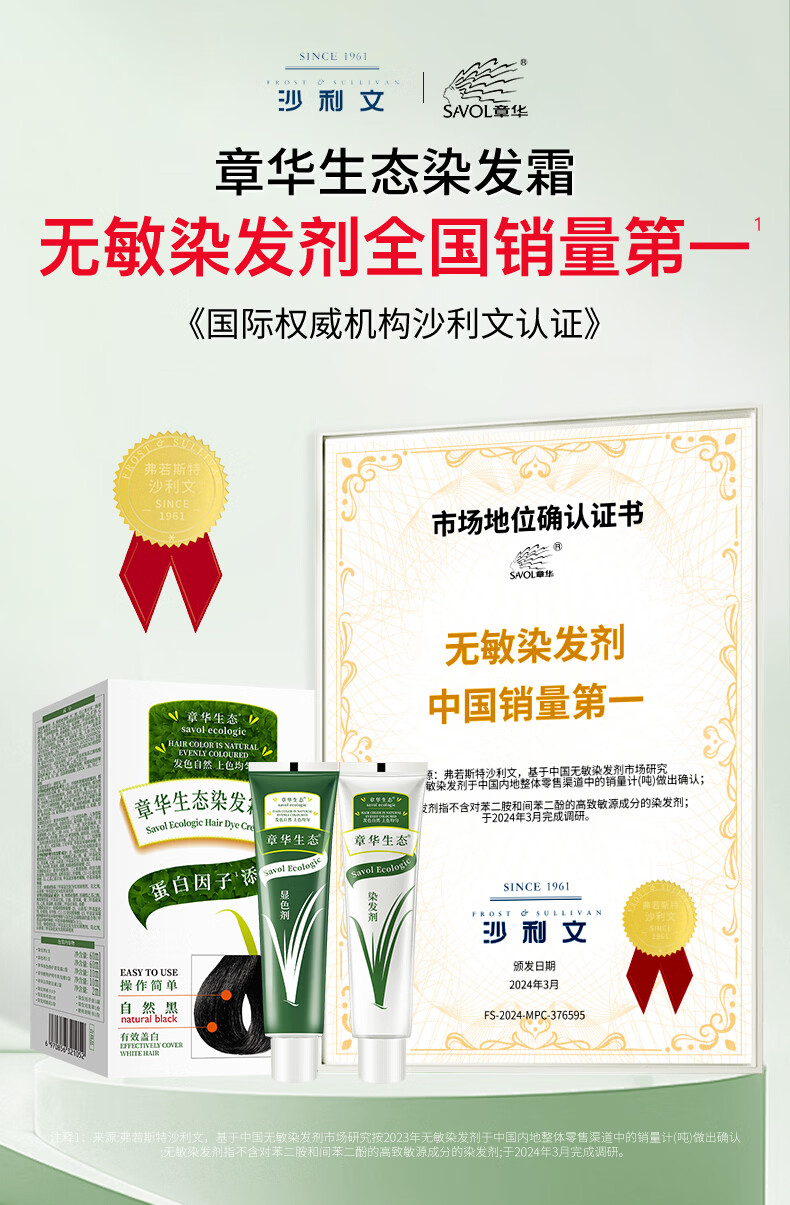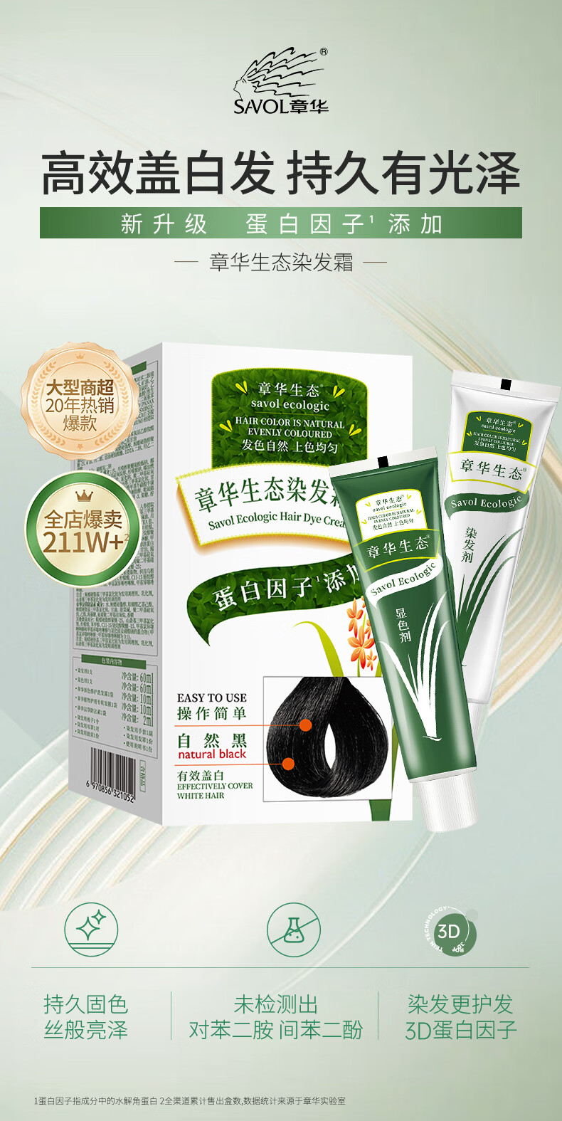 章华生态染发霜142ml (一梳黑染发剂黑色系可盖白染头膏无对苯二胺) 棕黑色(盖白减龄)【买就随机送袋包发膜/洗发水】