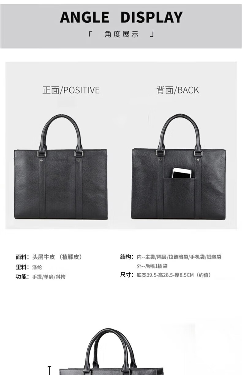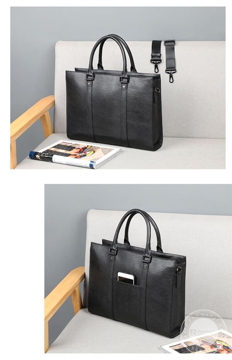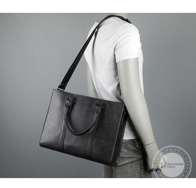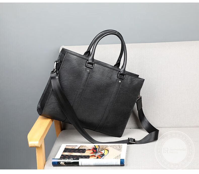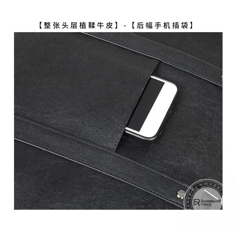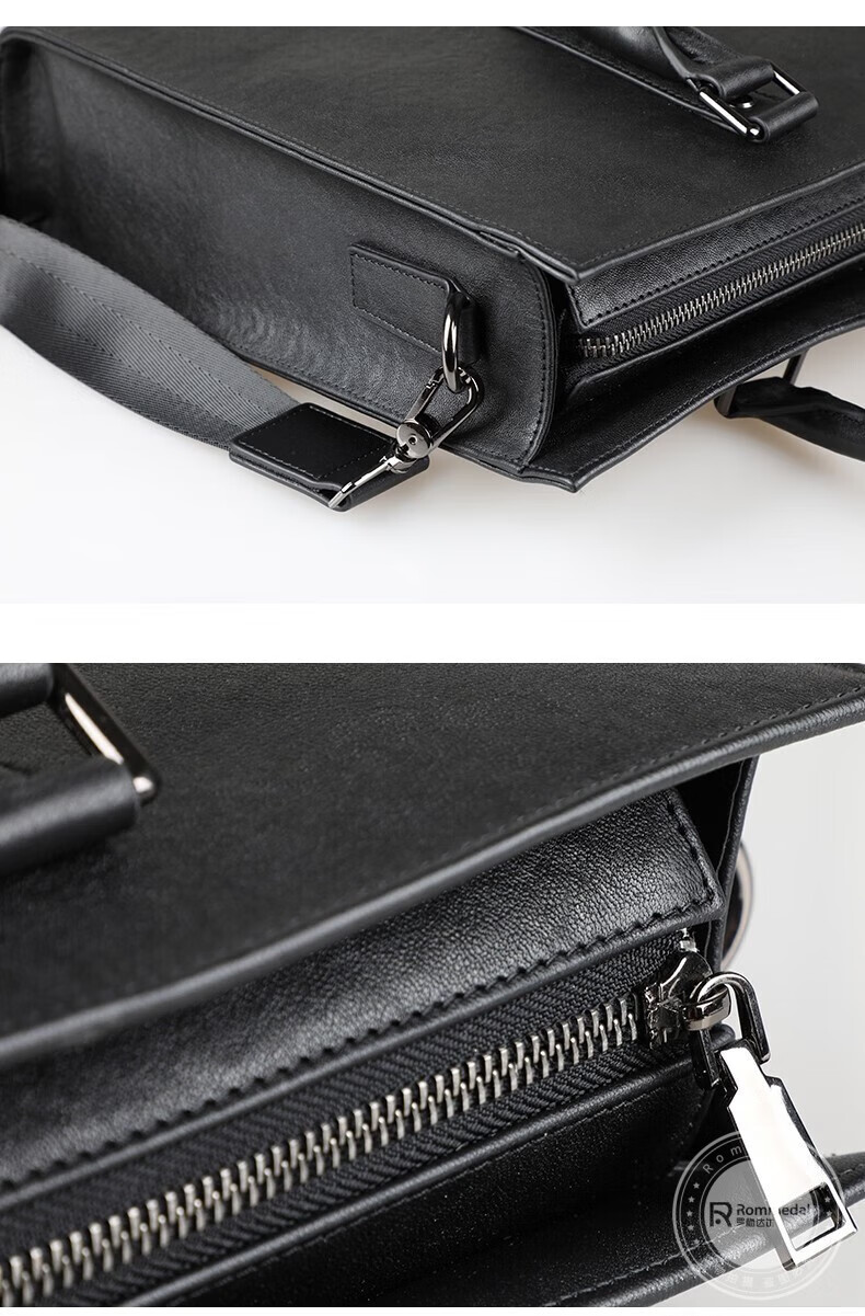 罗梅达尔(Rommedal)高级感公文包男商务男士手提包电脑包大容量牛皮文件包出差律师包 黑色 大包 15.6英寸