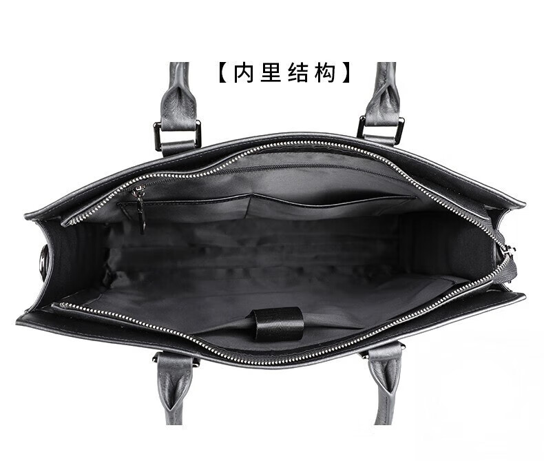 Walker Shop手提公文包【头层牛皮】男士电脑包商务大容量斜挎单肩包 黑色侧袋 中号(37.5*25.5*12)