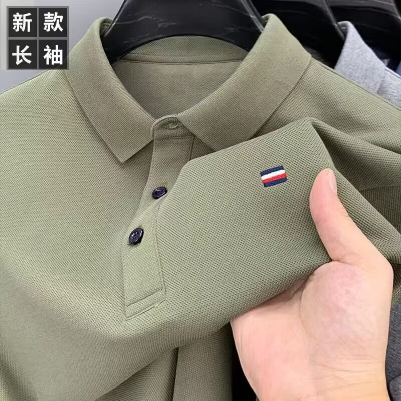 MDODC春秋男士长袖T恤2026新款中青年爸爸装翻领POLO衫打底衫上衣 浅灰 5XL (推荐175-190斤)