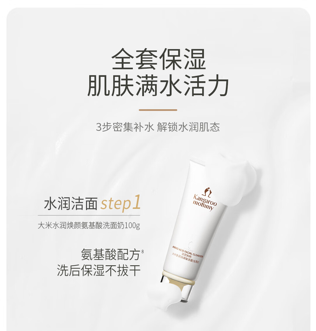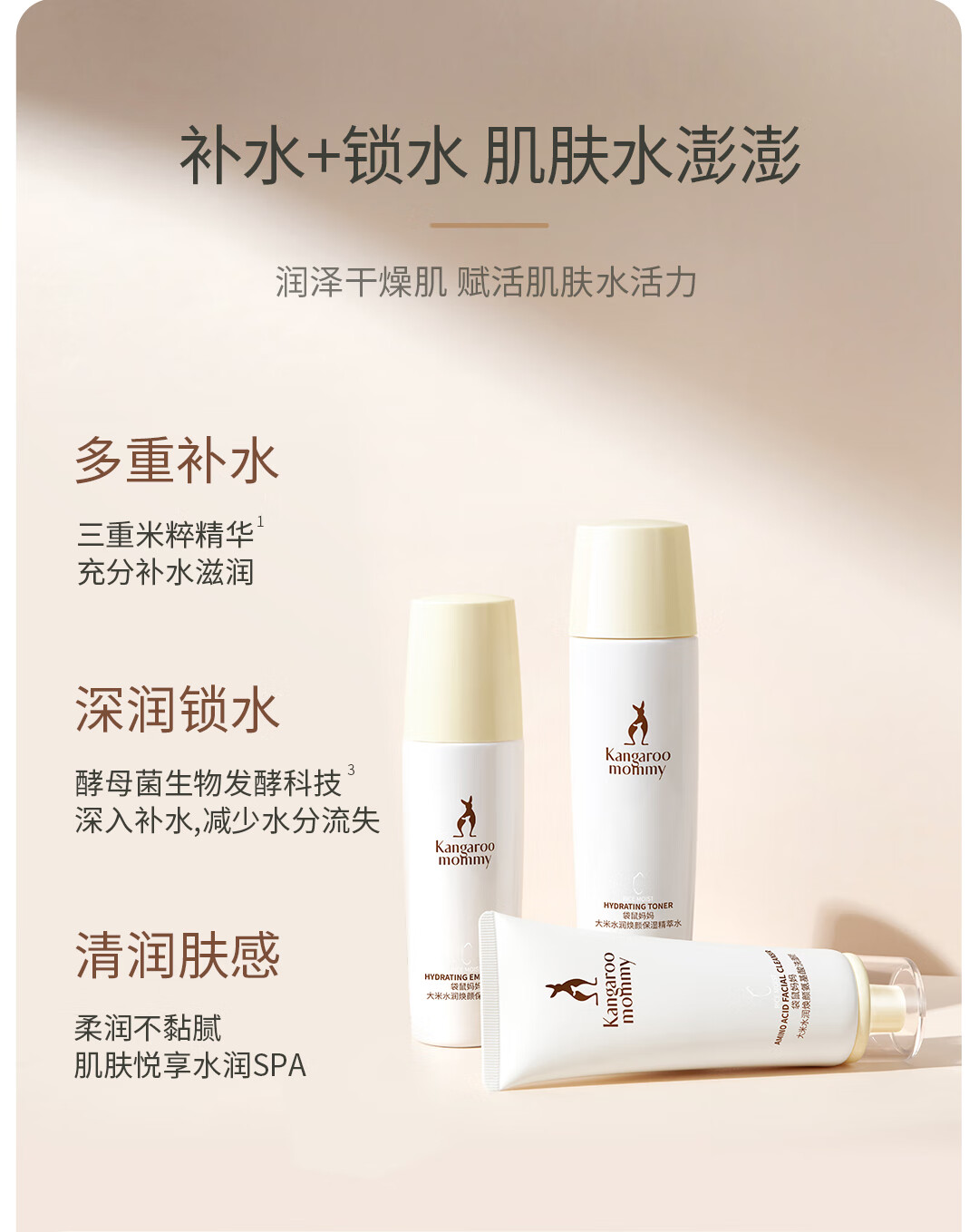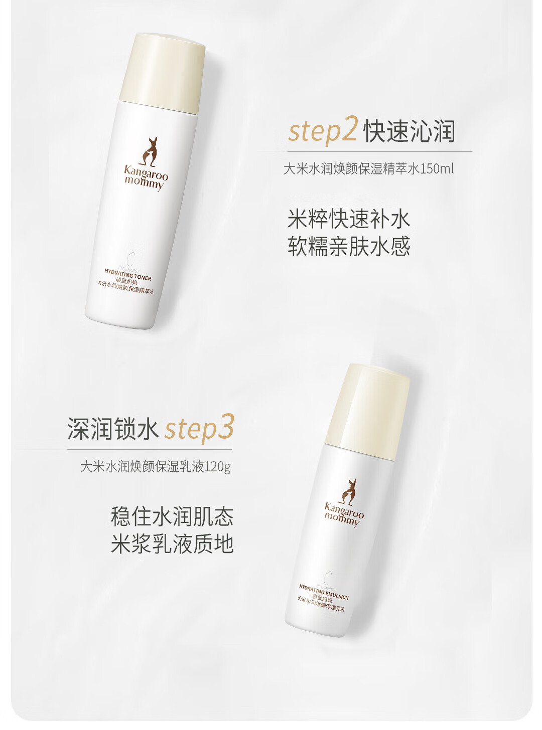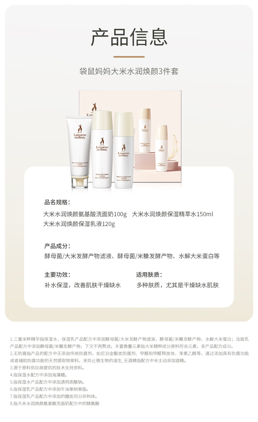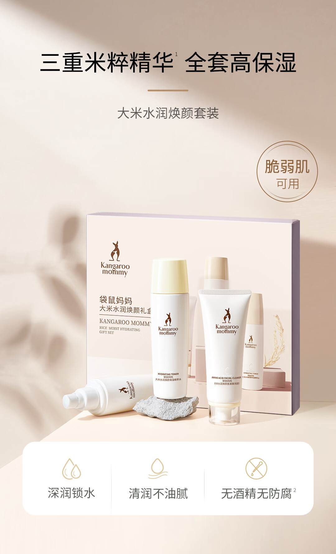 袋鼠妈妈(Kangaroo Mommy)大米水乳霜套装护肤品补水保湿面霜护肤套装礼盒 【大米5件套】洁面+水+乳+眼霜+精华
