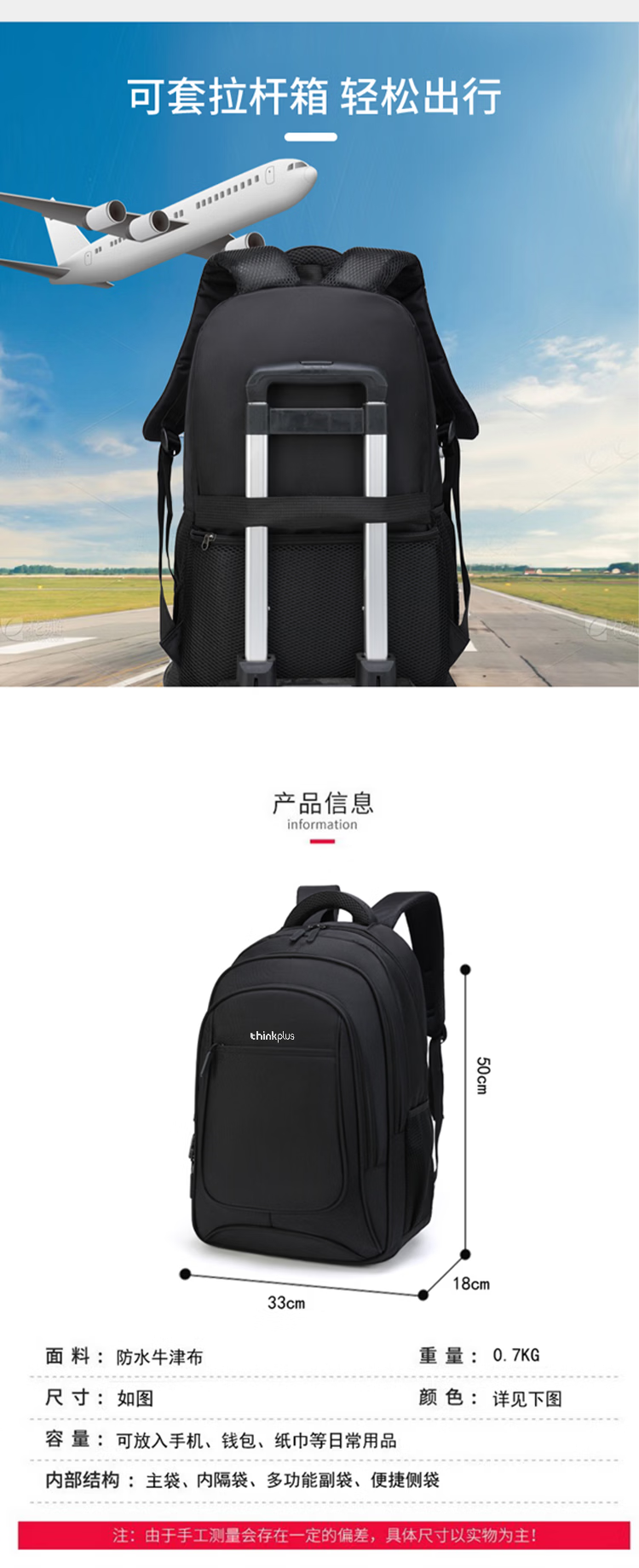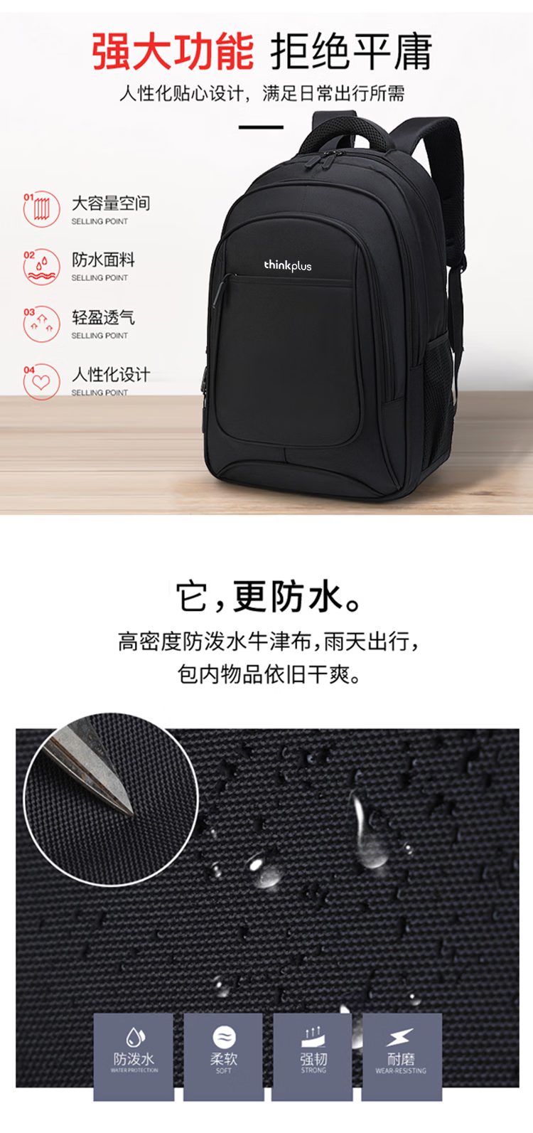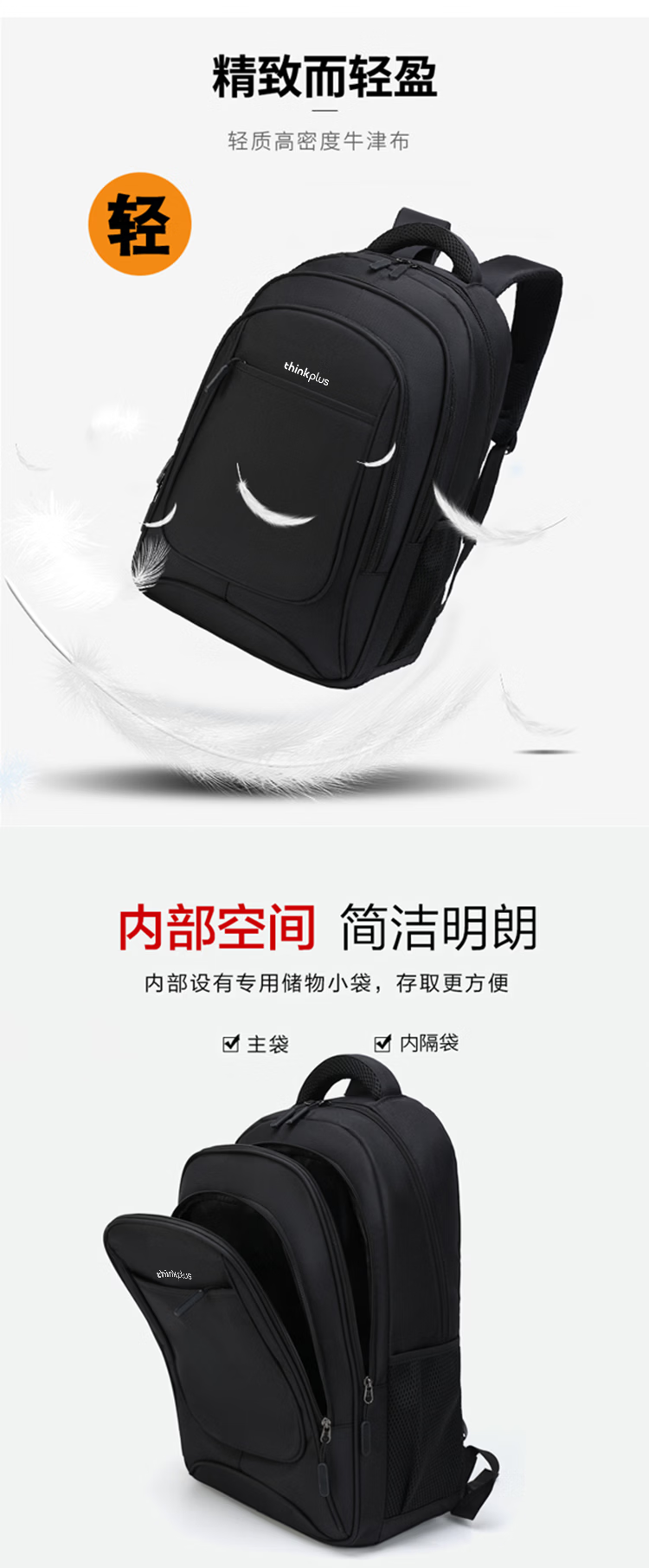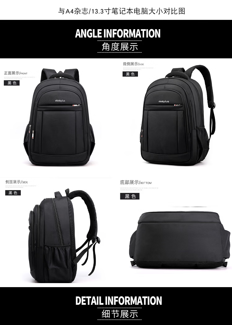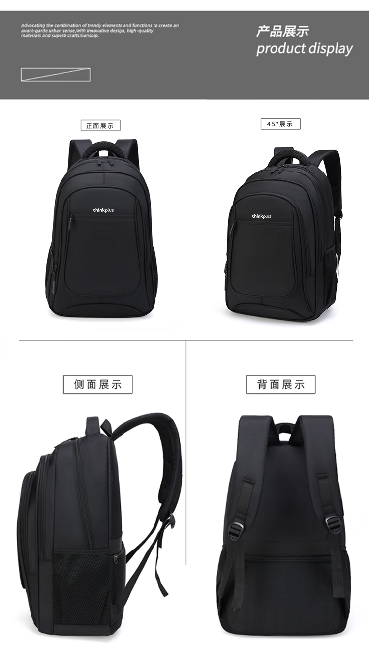 ThinkPlus联想双肩包学生书包男女旅行出差背包2025年新款轻便电脑包出游 【时尚扩容款】黑色
