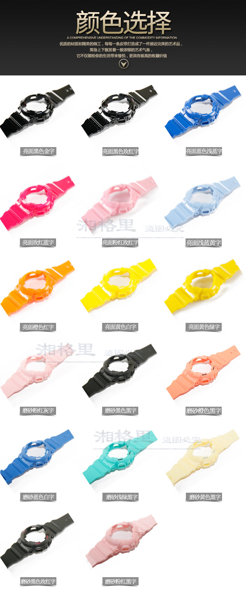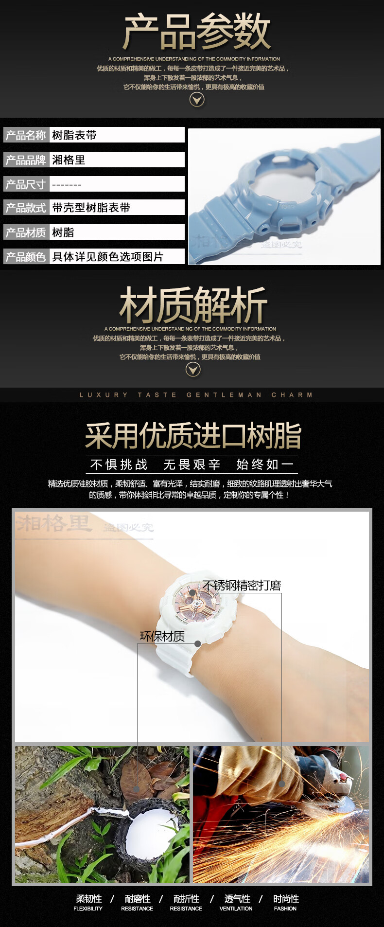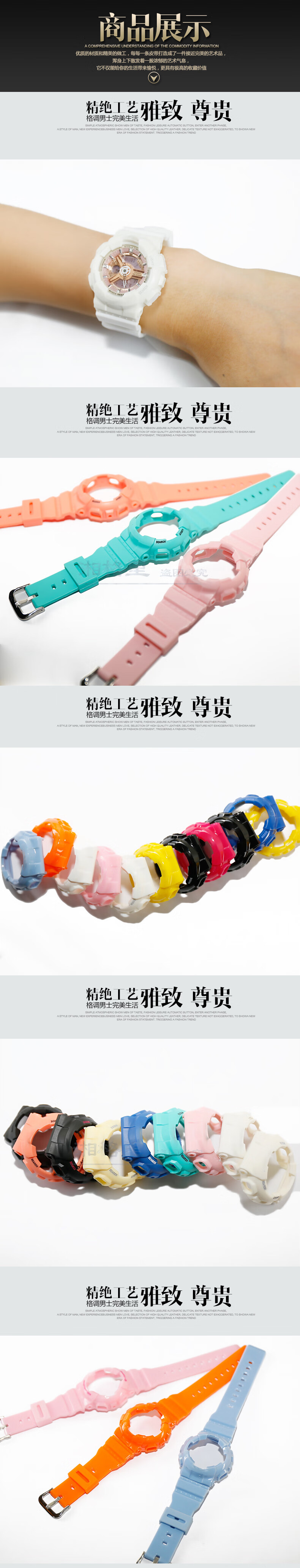 针扣树脂表带表壳适用于卡西欧BABY-G BA111 BA110 BA112户外运动防水手表带男女 磨砂黑色黑字