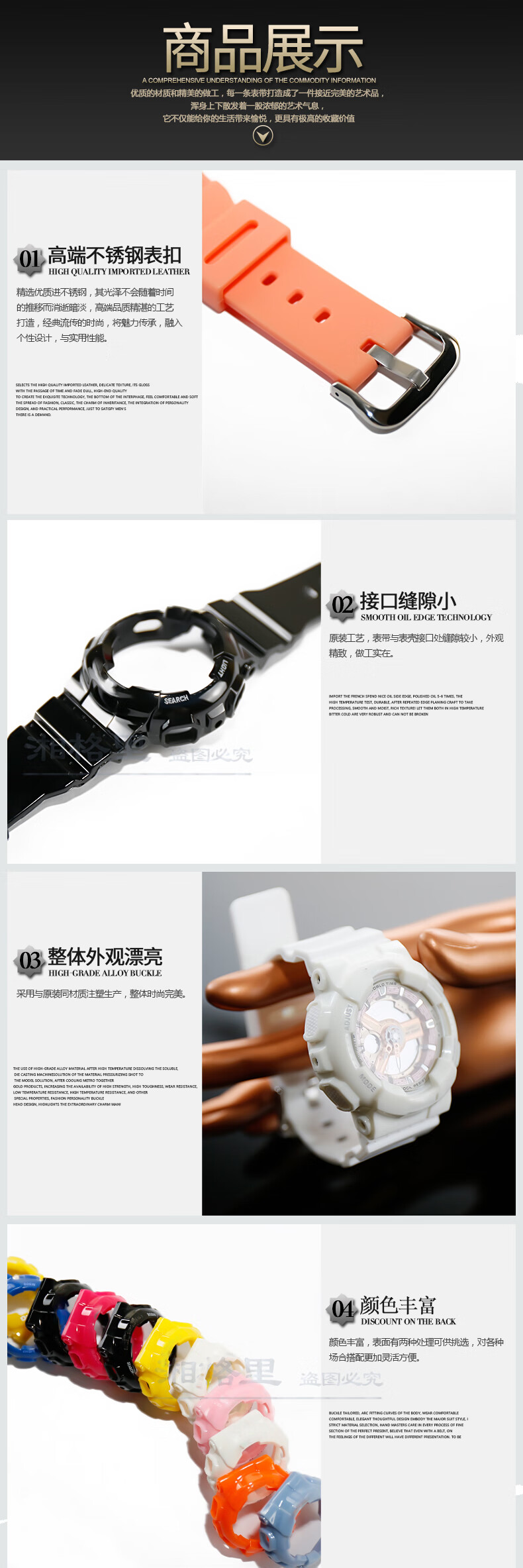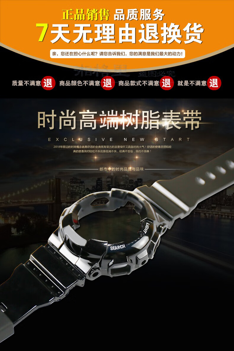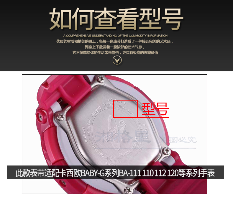针扣树脂表带表壳适用于卡西欧BABY-G BA111 BA110 BA112户外运动防水手表带男女 磨砂黑色黑字
