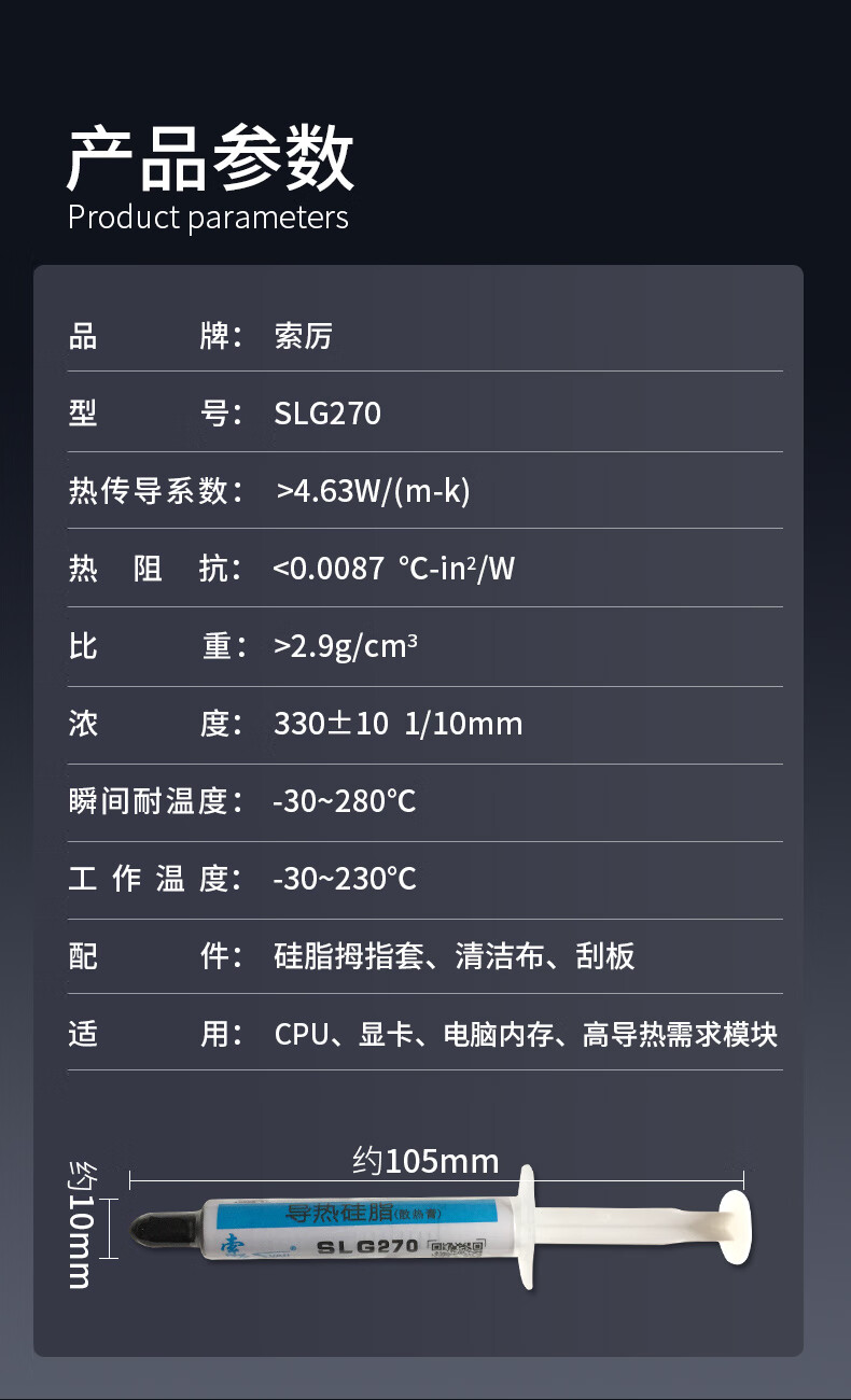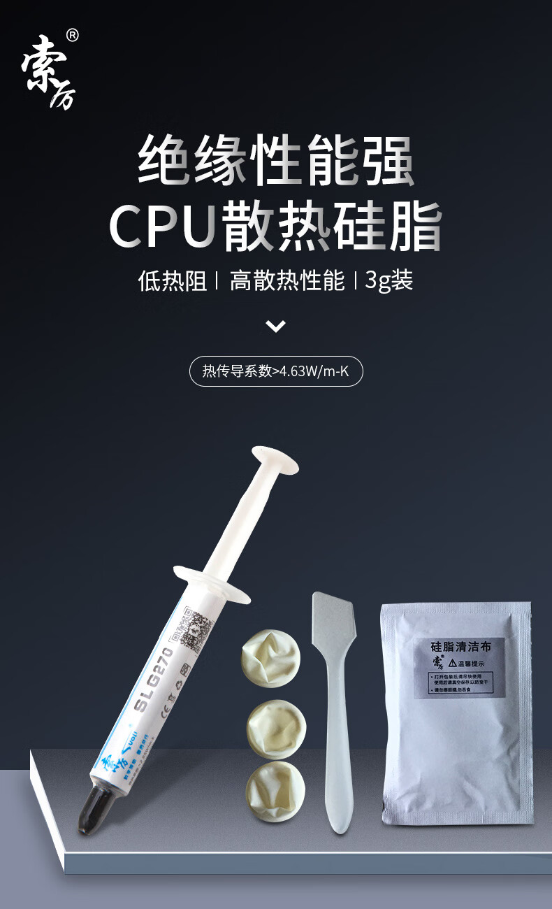 索厉 CPU散热硅脂(导热硅脂/显卡散热膏/台式机cpu笔记本/配刮刀/3g装/SLG270)