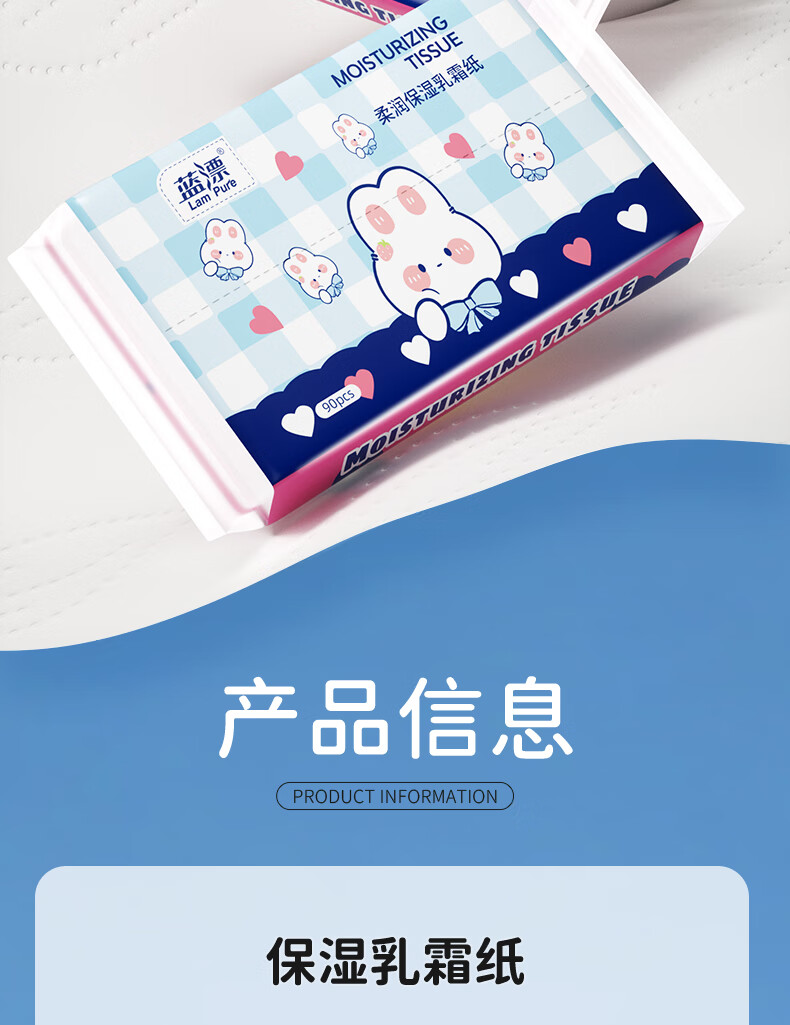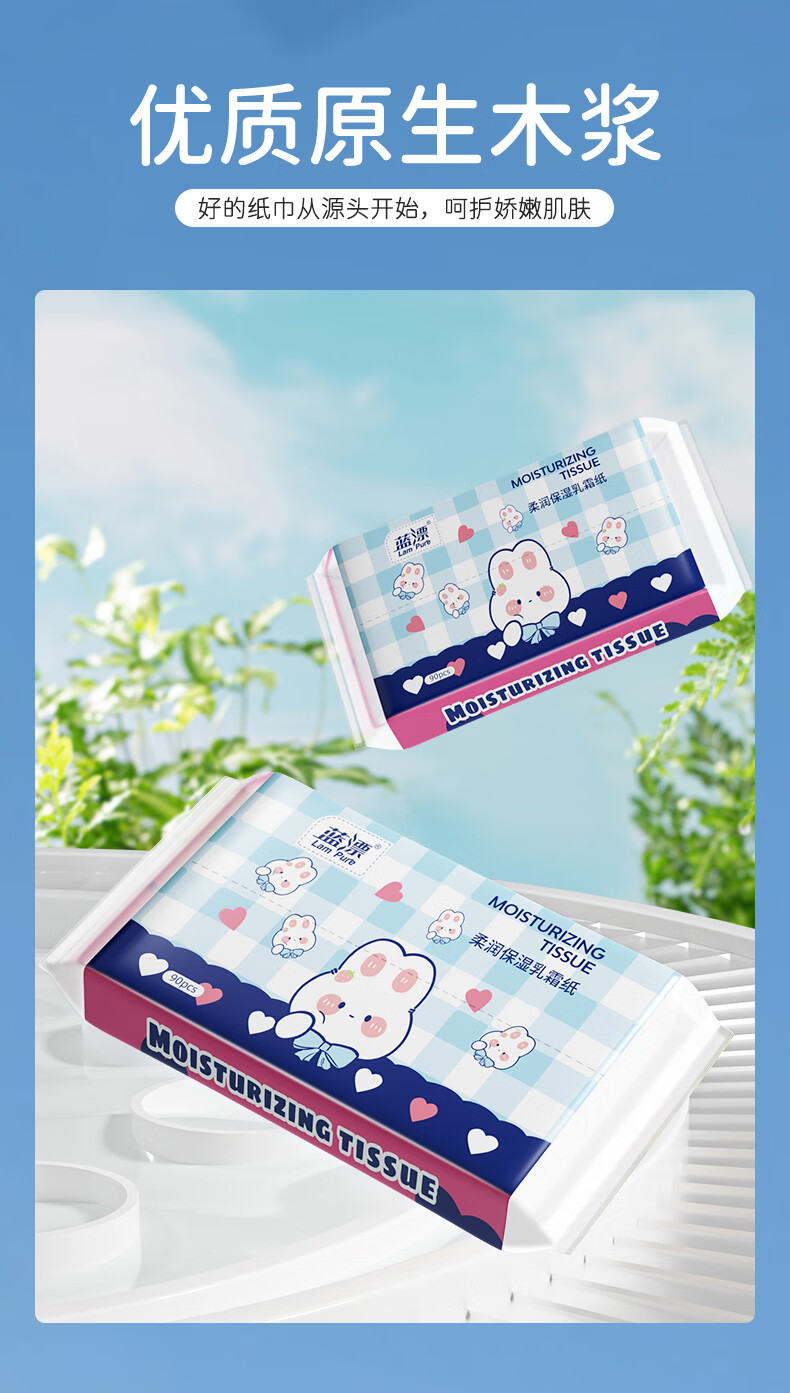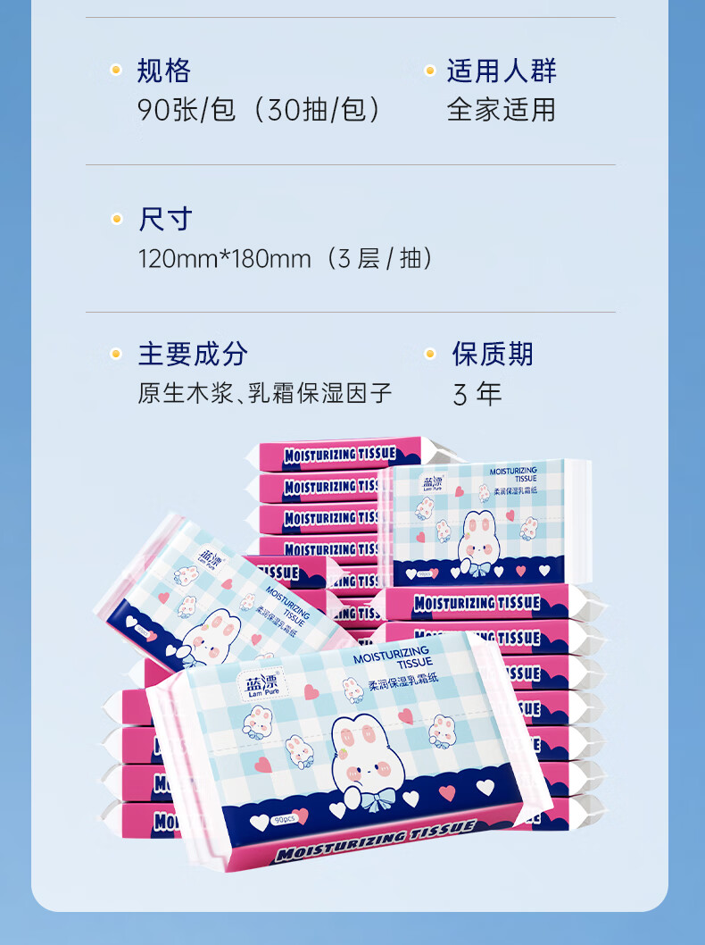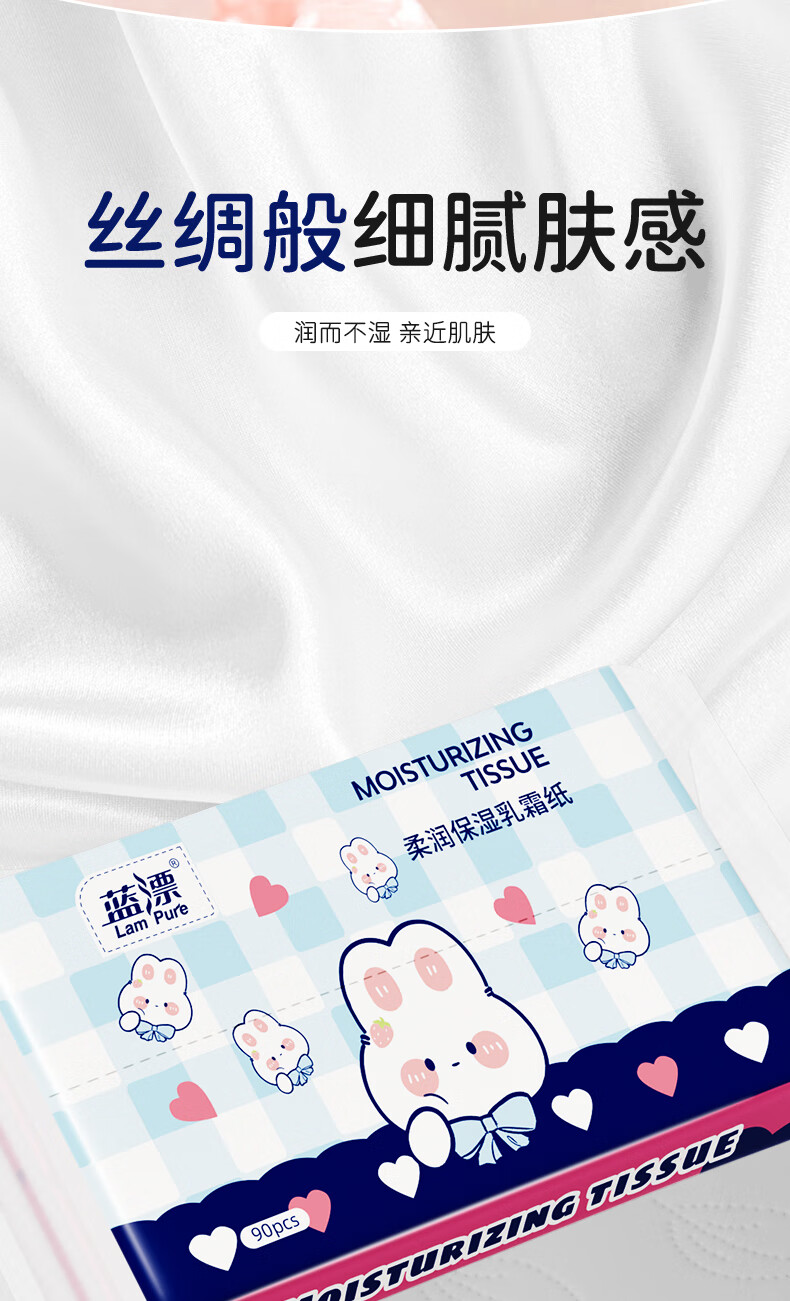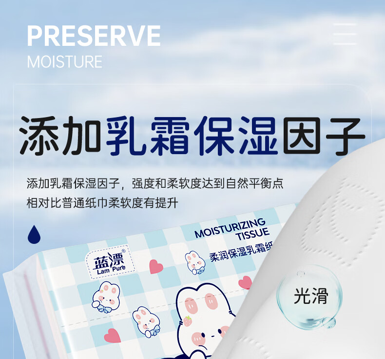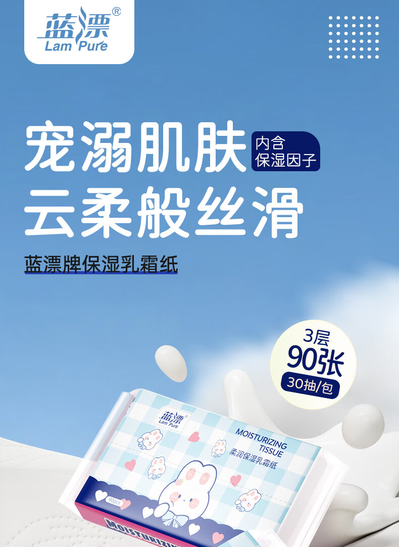 蓝漂乳霜纸柔润亲肤保湿纸云柔巾家用抽纸柔纸巾 3层 30抽*5包