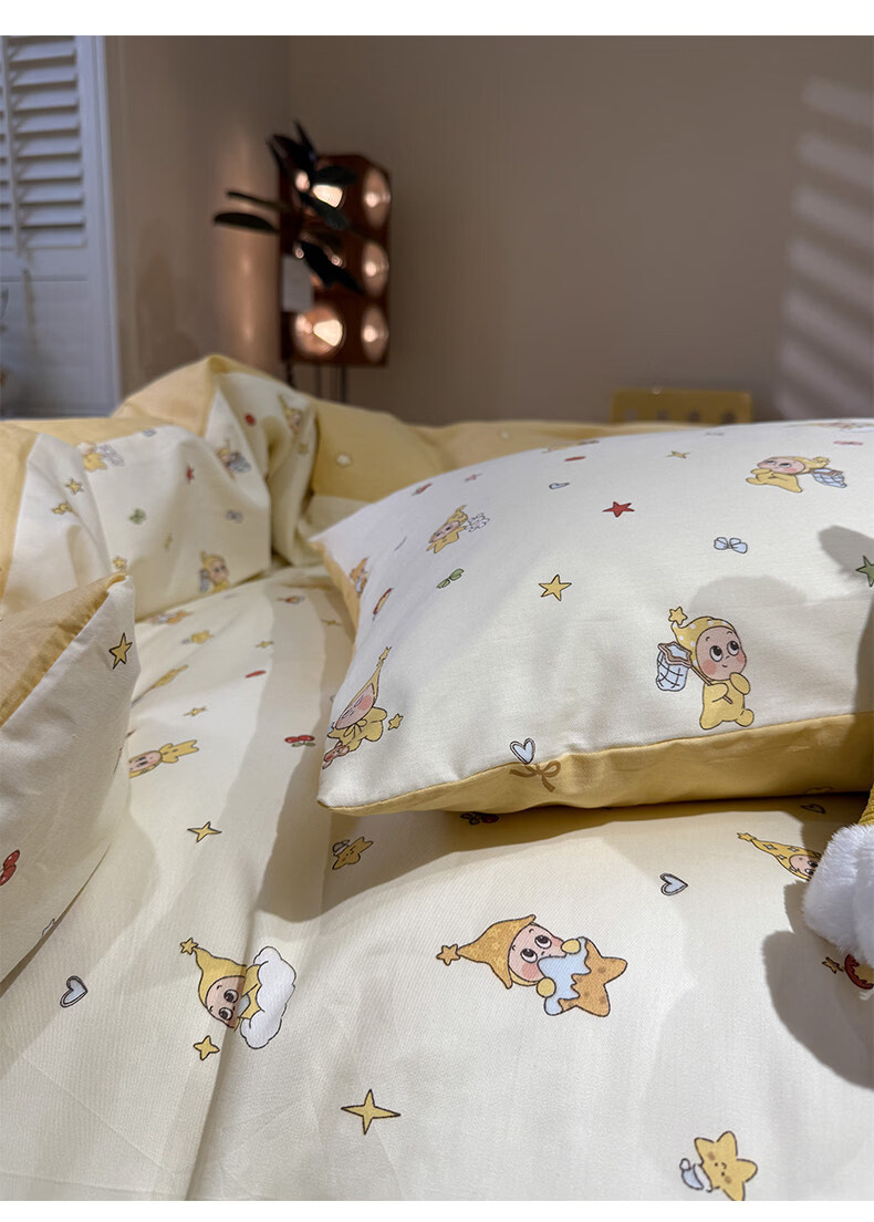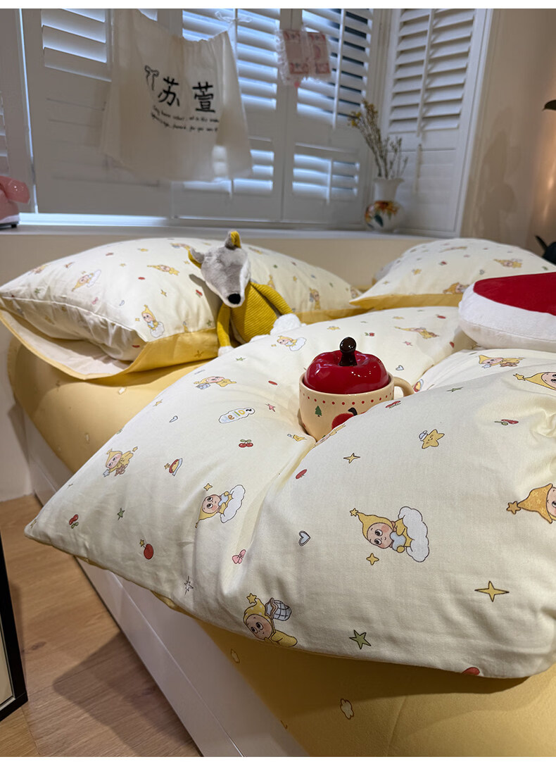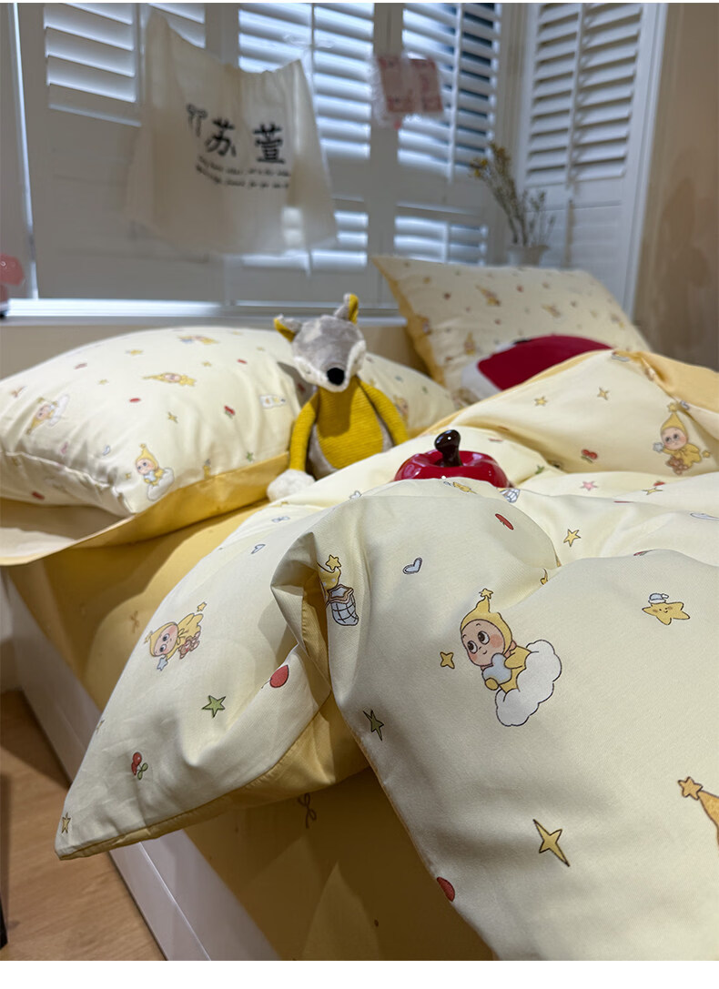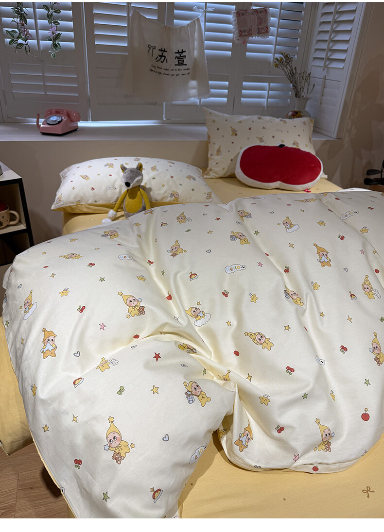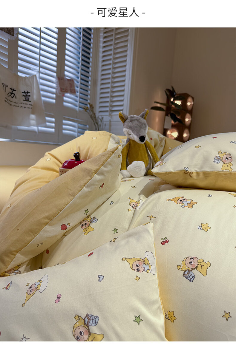 苏萱卡通纯棉床上四件套1.5m1.8米学生宿舍100全棉被套床单床品三件套 可爱星人 1.8m 床单款 四件套-被套200x230cm
