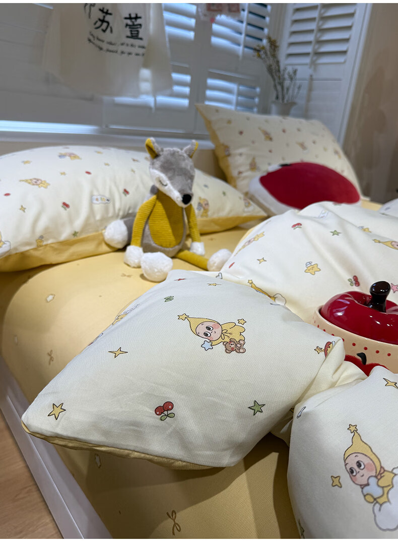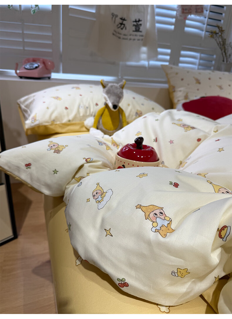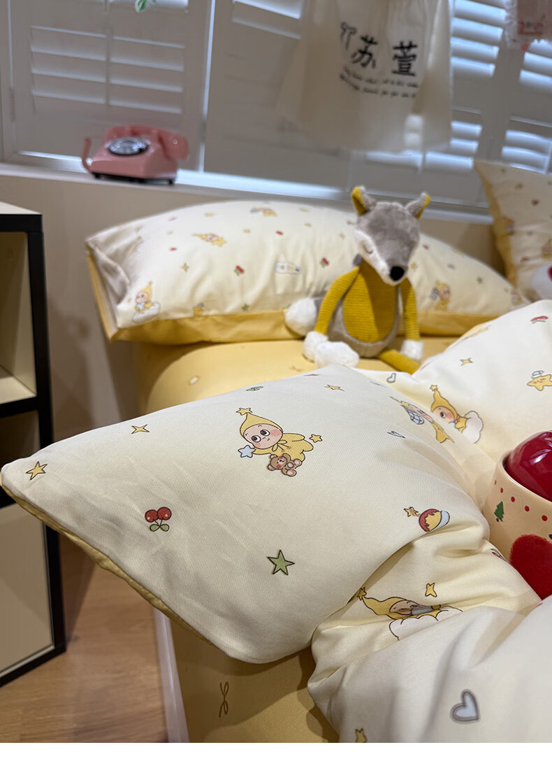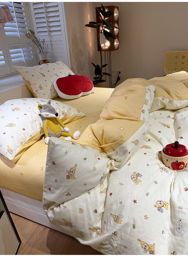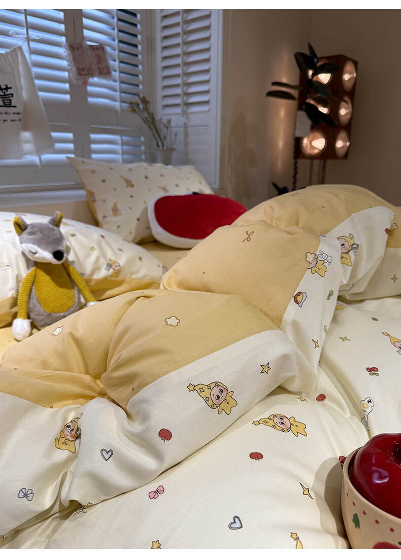 苏萱卡通纯棉床上四件套1.5m1.8米学生宿舍100全棉被套床单床品三件套 可爱星人 1.8m 床单款 四件套-被套200x230cm