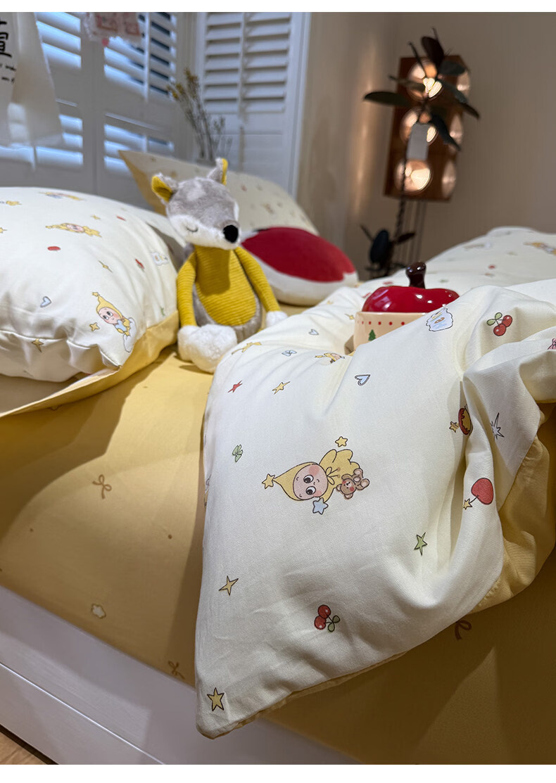 博洋宝贝(Beyond Kids)竹棉纱儿童豆豆绒被套纯棉被套幼儿园被套单件套四季通用 豆豆绒竹棉纱被套单件套—萌虎小鹿 150*210cm