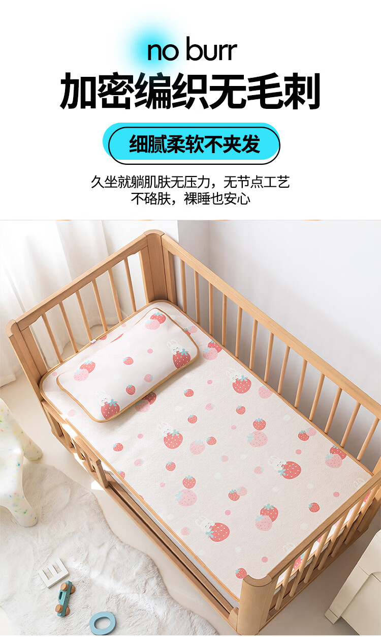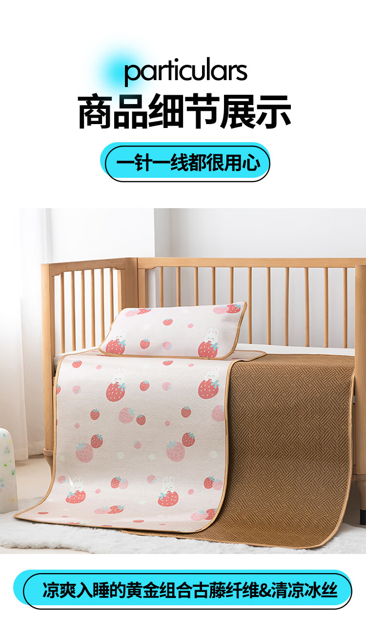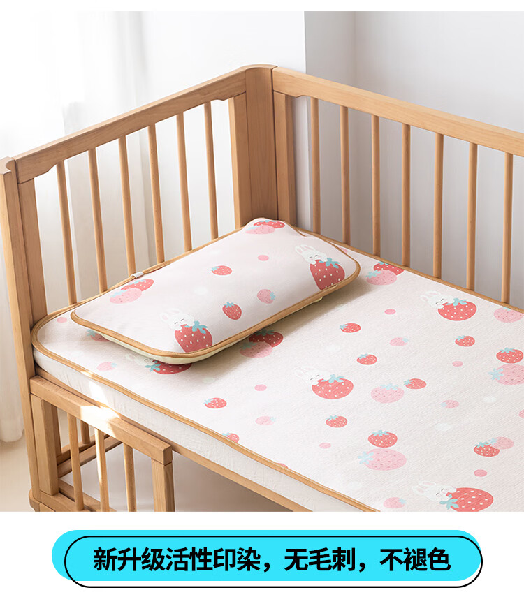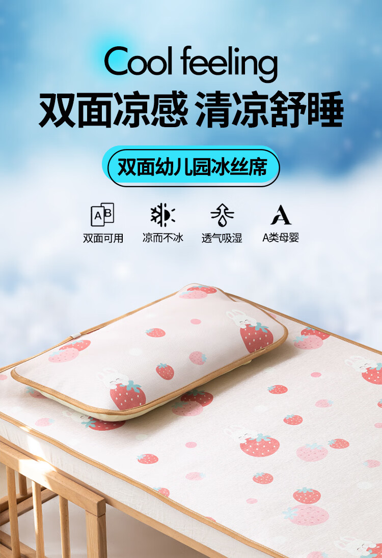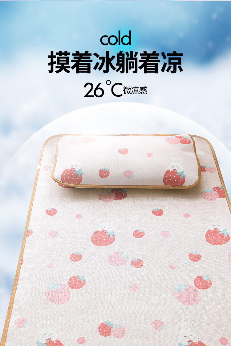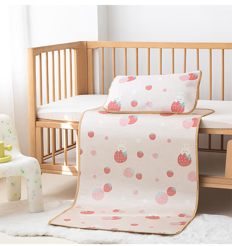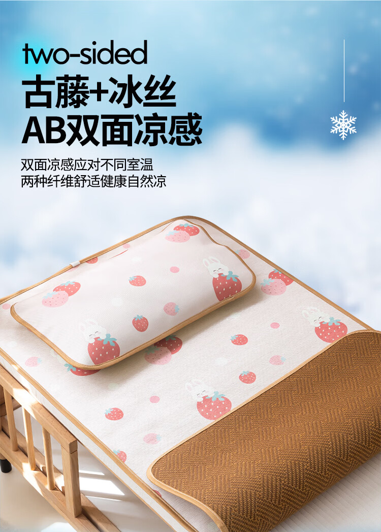 罗兰家纺夏季儿童卡通凉席冰丝席古藤席双面可用幼儿园凉席双面凉感凉席 HSH婴童双面凉席-草莓兔 56*100cm凉席单件