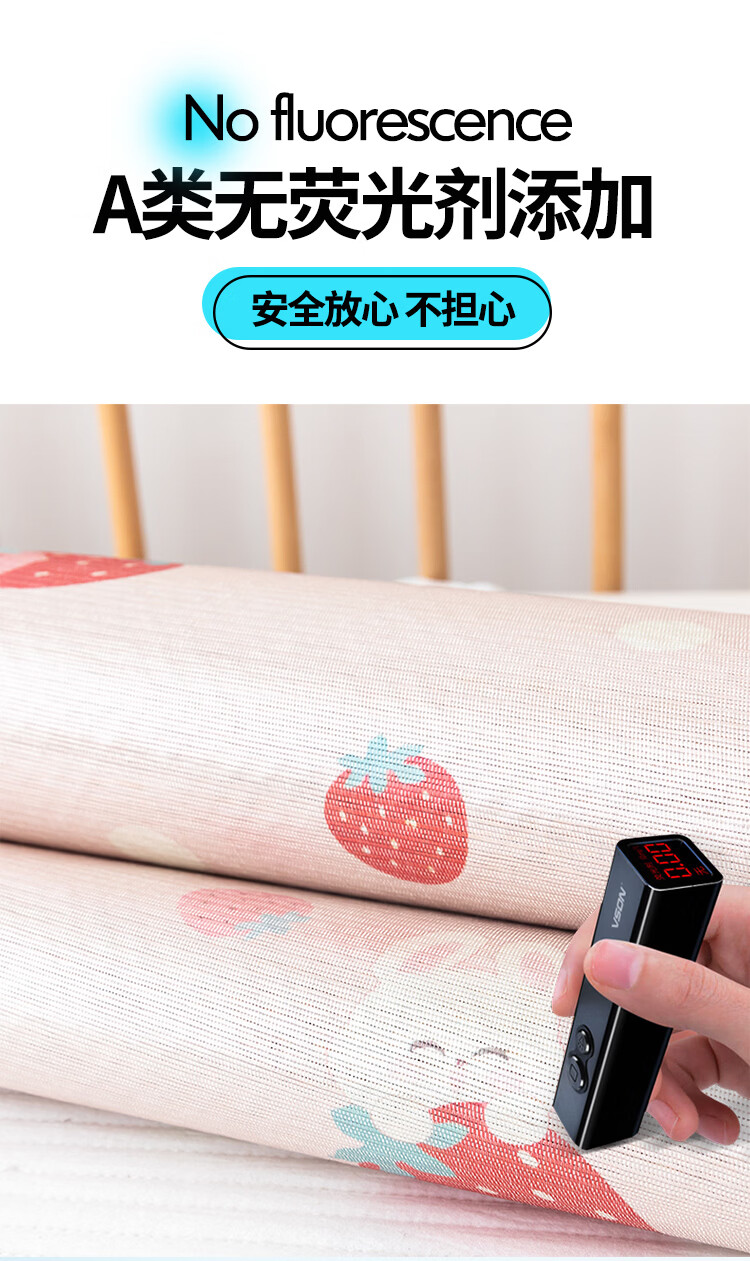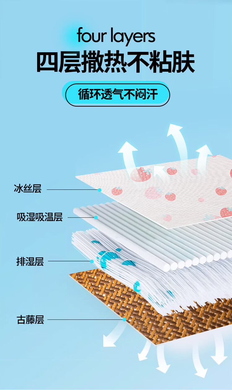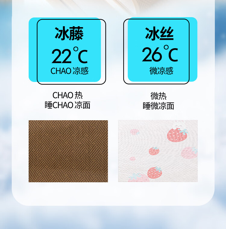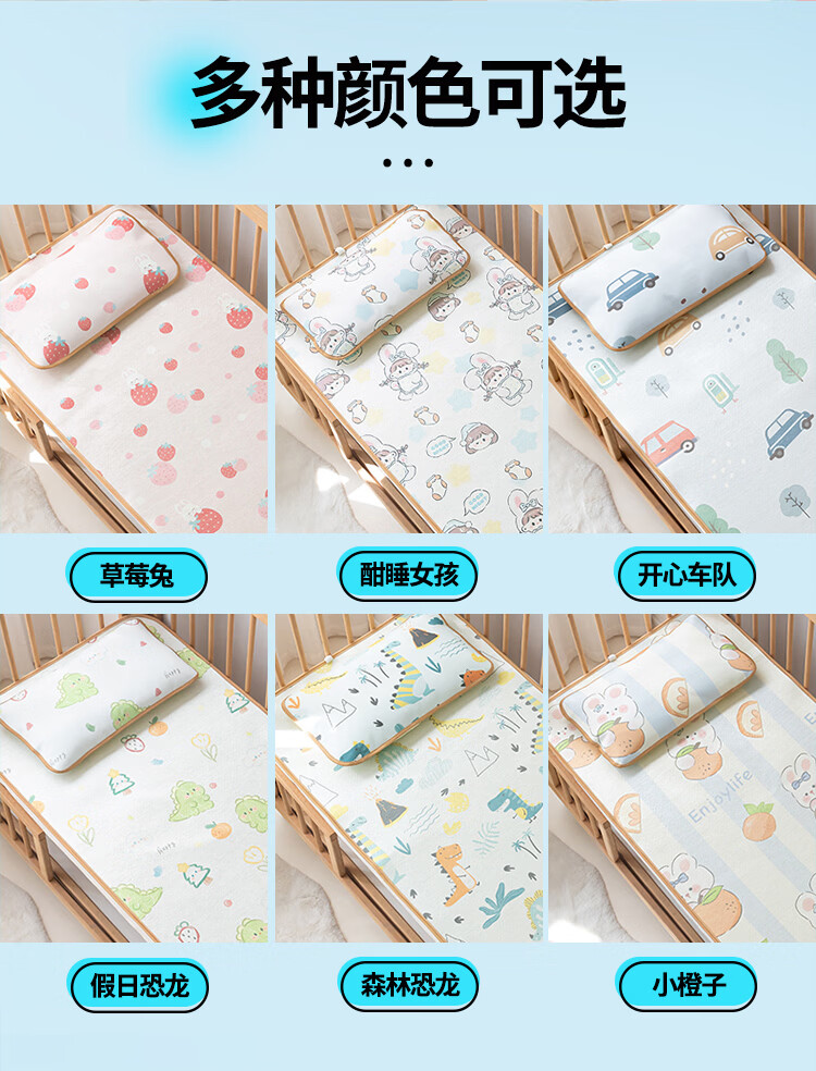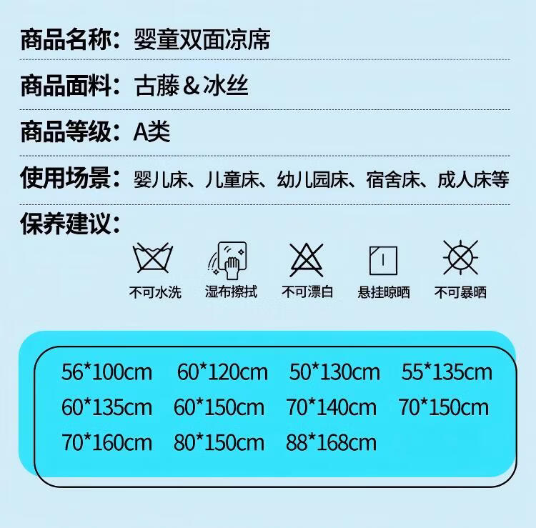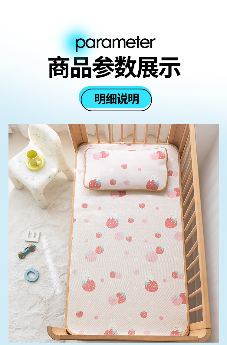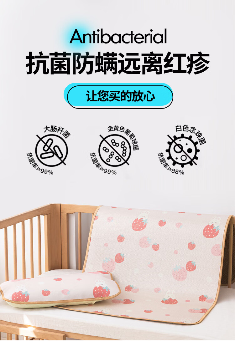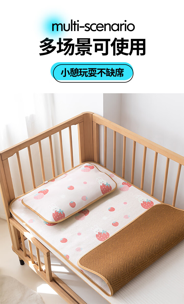 罗兰家纺夏季儿童卡通凉席冰丝席古藤席双面可用幼儿园凉席双面凉感凉席 HSH婴童双面凉席-草莓兔 56*100cm凉席单件