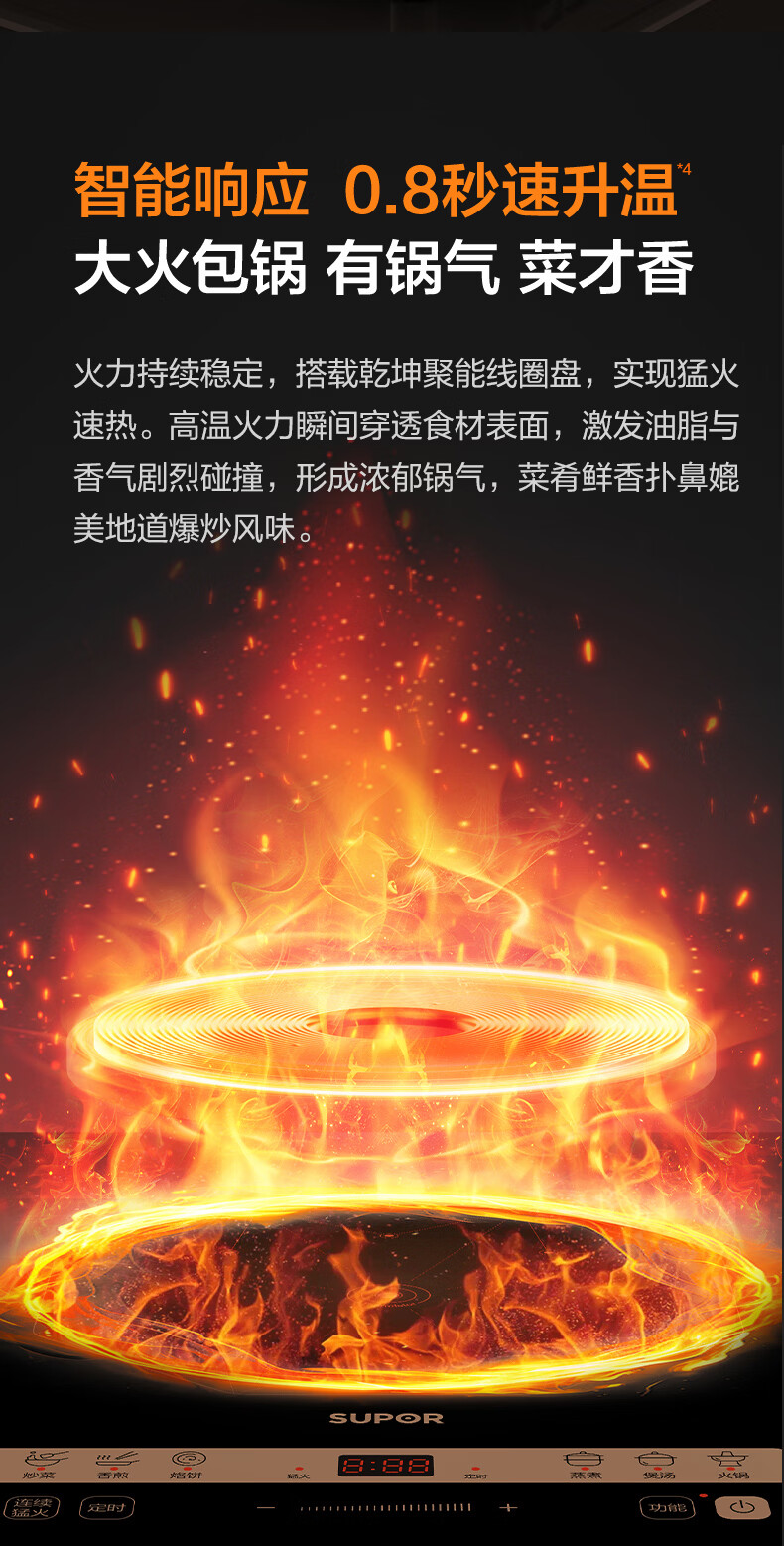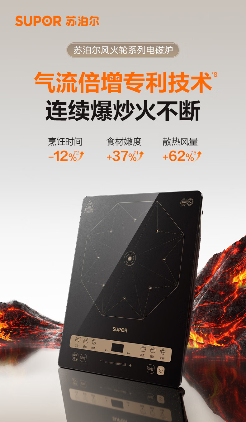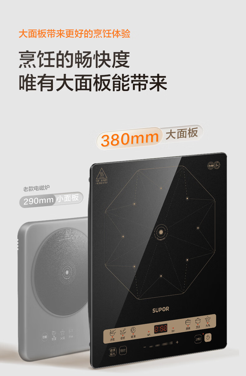 苏泊尔(SUPOR)风火轮系列电磁炉家用持续猛火大功率电池炉2026年新款高端电炒炉380mm大面板电炉电火灶 0.8秒速升温