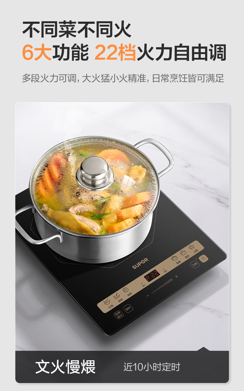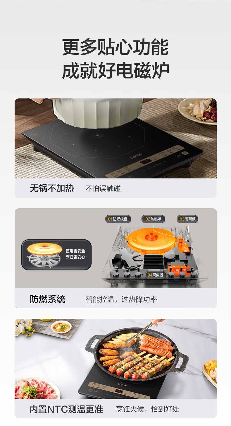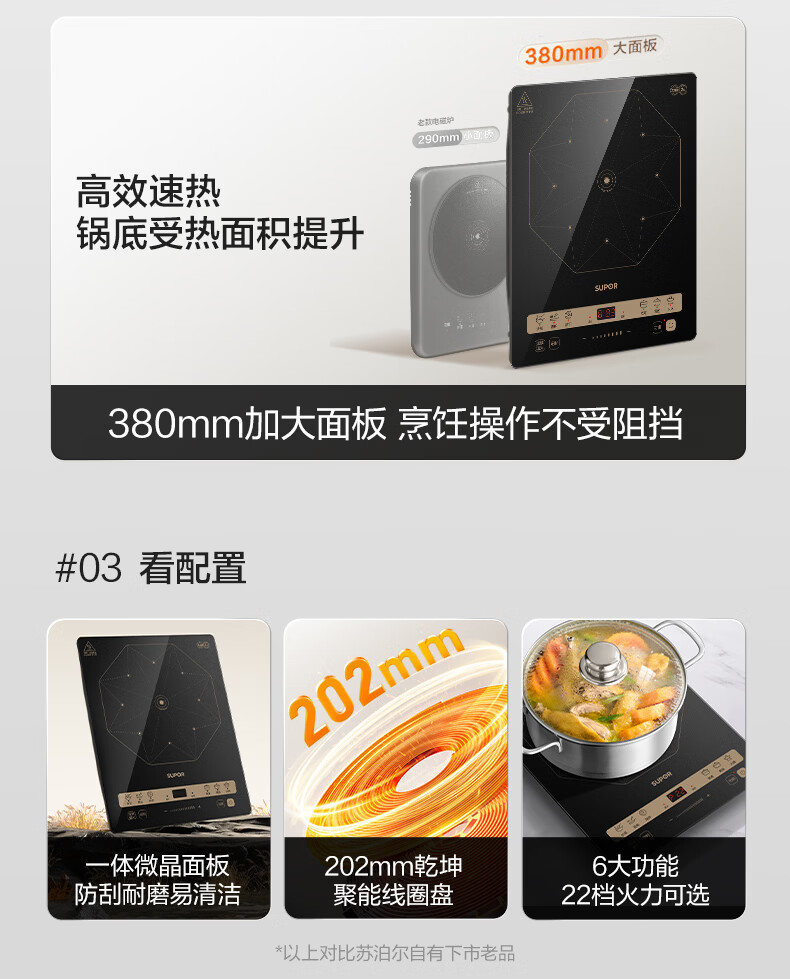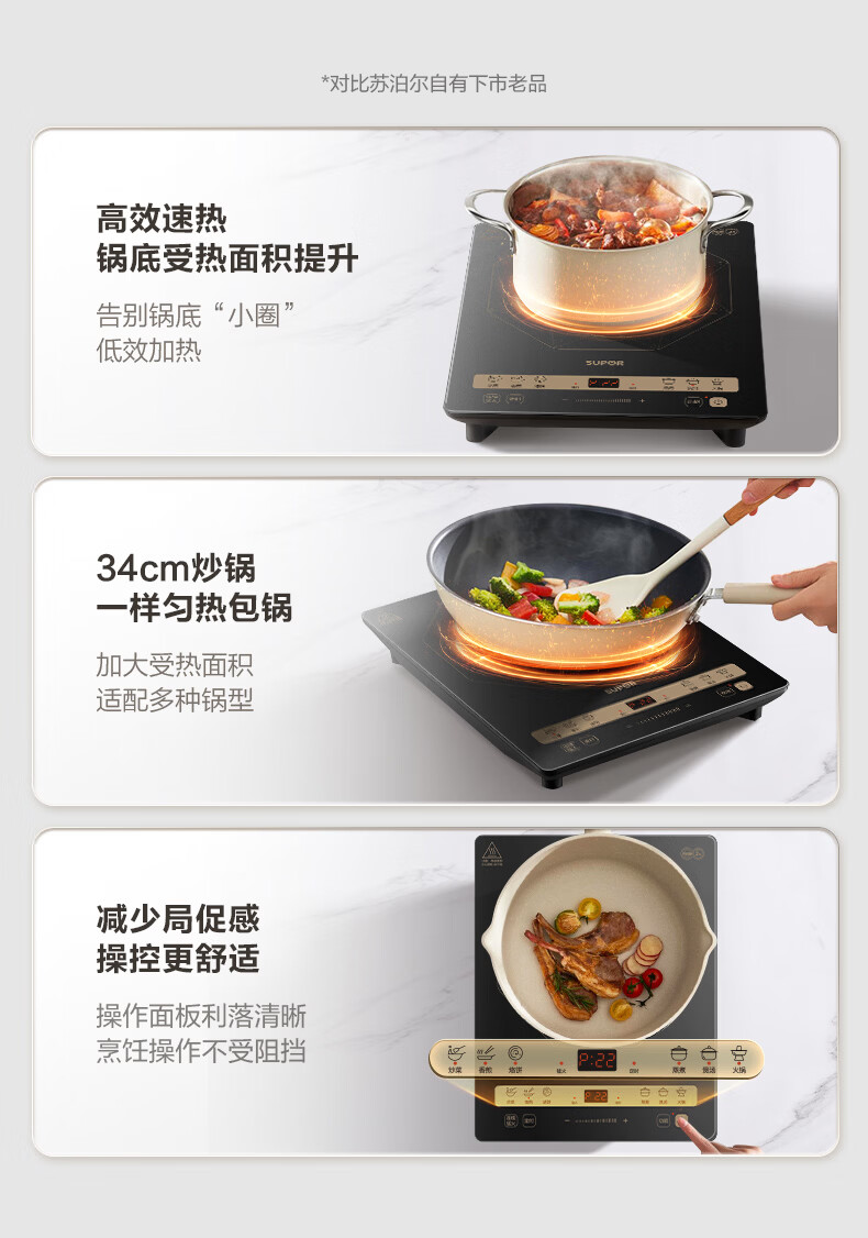 苏泊尔(SUPOR)风火轮系列电磁炉家用持续猛火大功率电池炉2026年新款高端电炒炉380mm大面板电炉电火灶 0.8秒速升温
