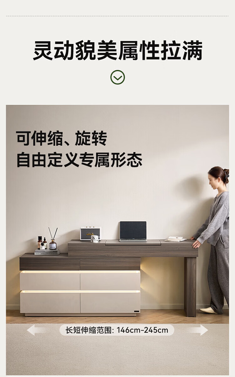 梵木领秀胡桃木移动升降茶几餐桌二合一客厅高级感新中式电动茶几方圆两用 【胡桃木纹】语音+按键升降 1.1米