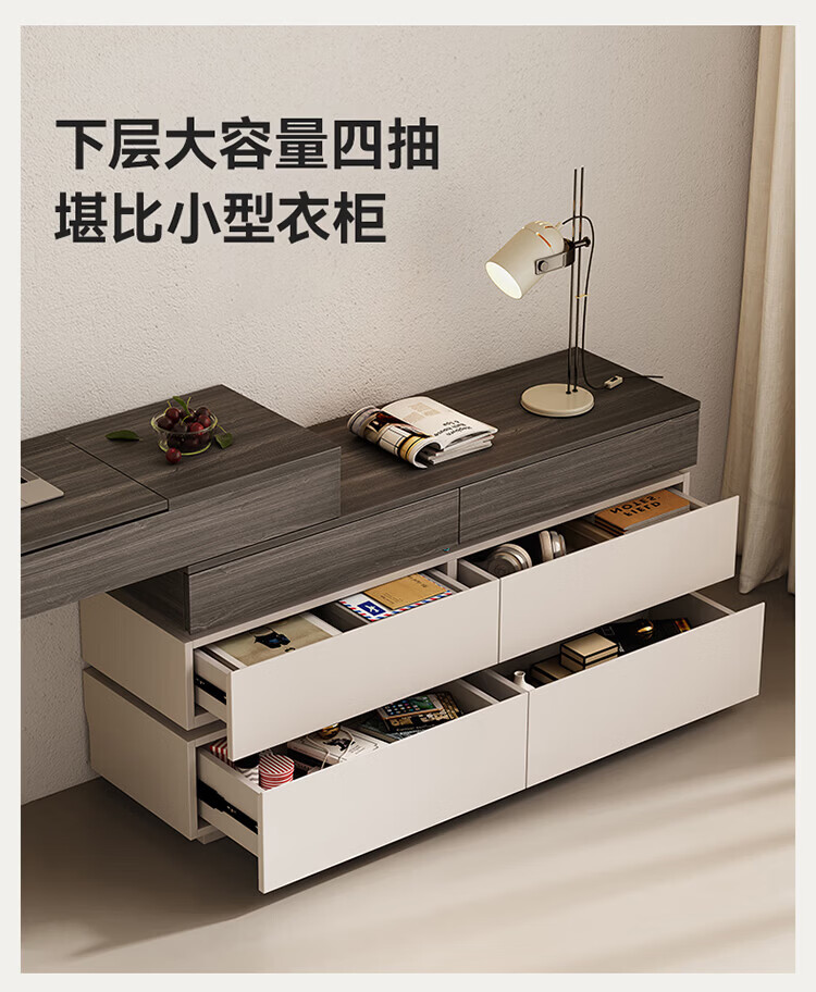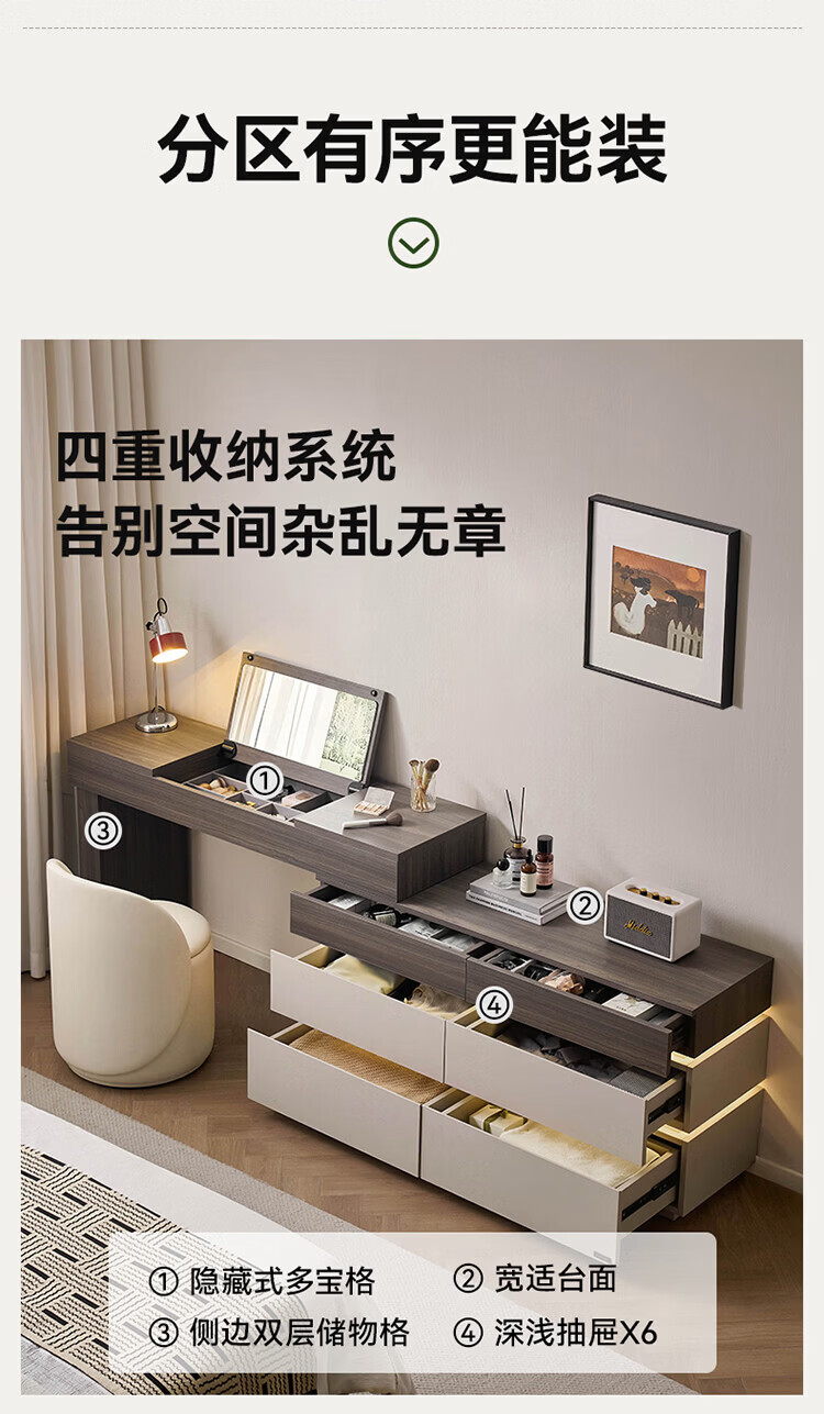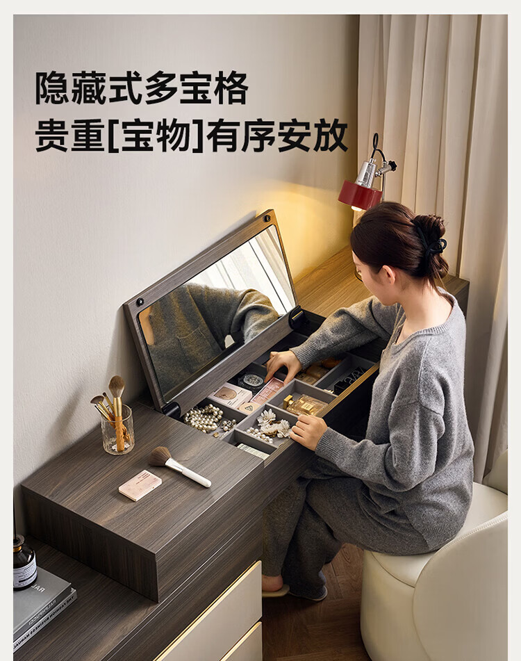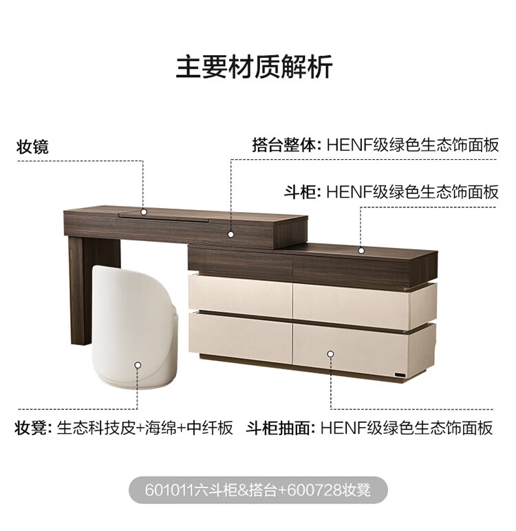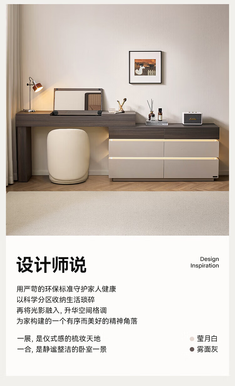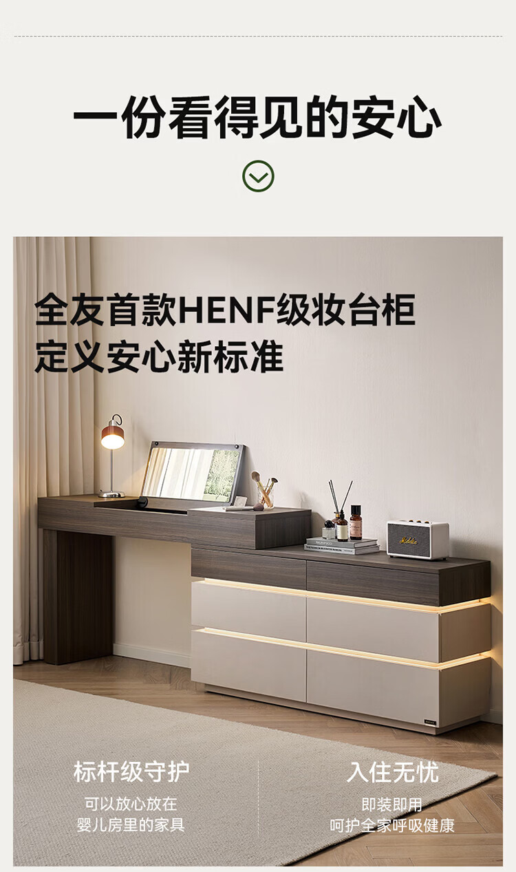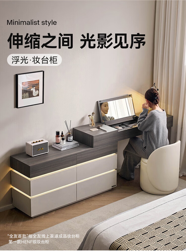 全友(QUANU)【迷瞪直播间】601011浮光妆台柜现代简约风斗柜化妆台一体六斗柜 【HENF级 | 莹月白+雾面灰】六斗柜+搭台