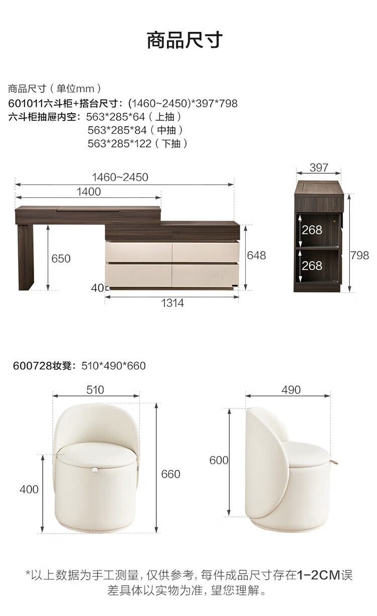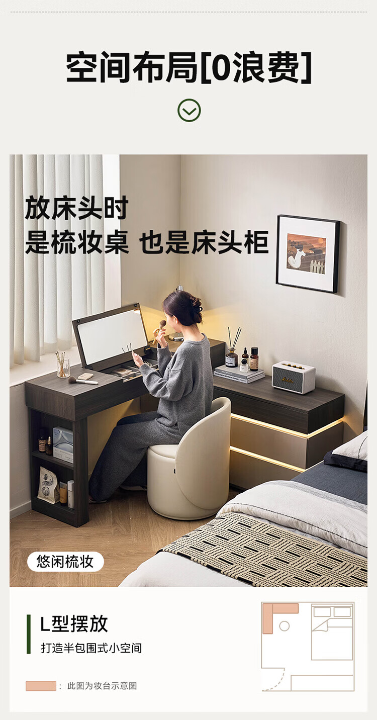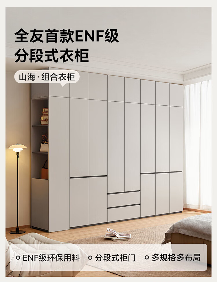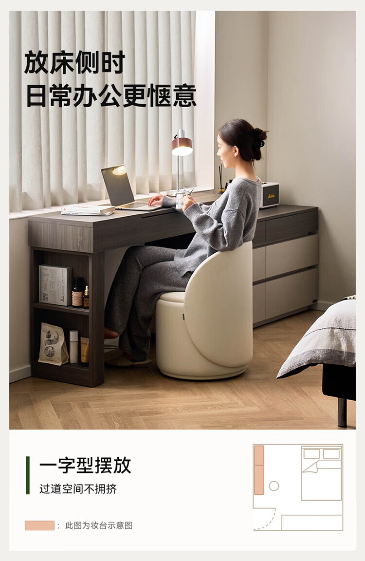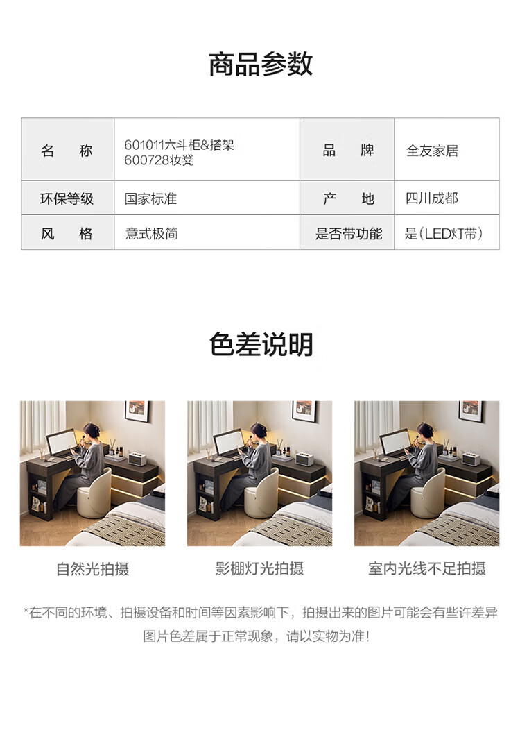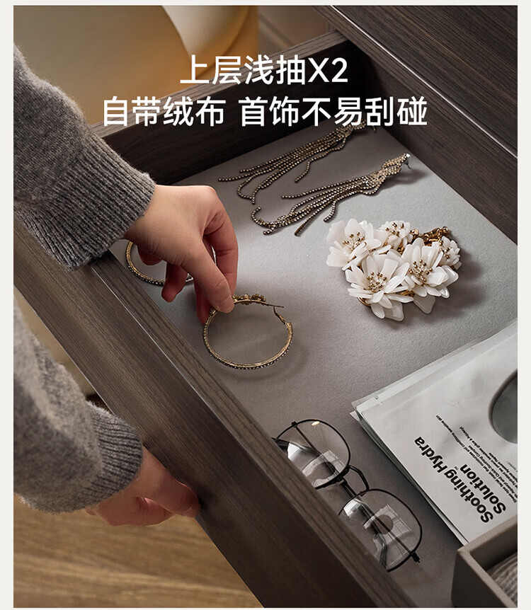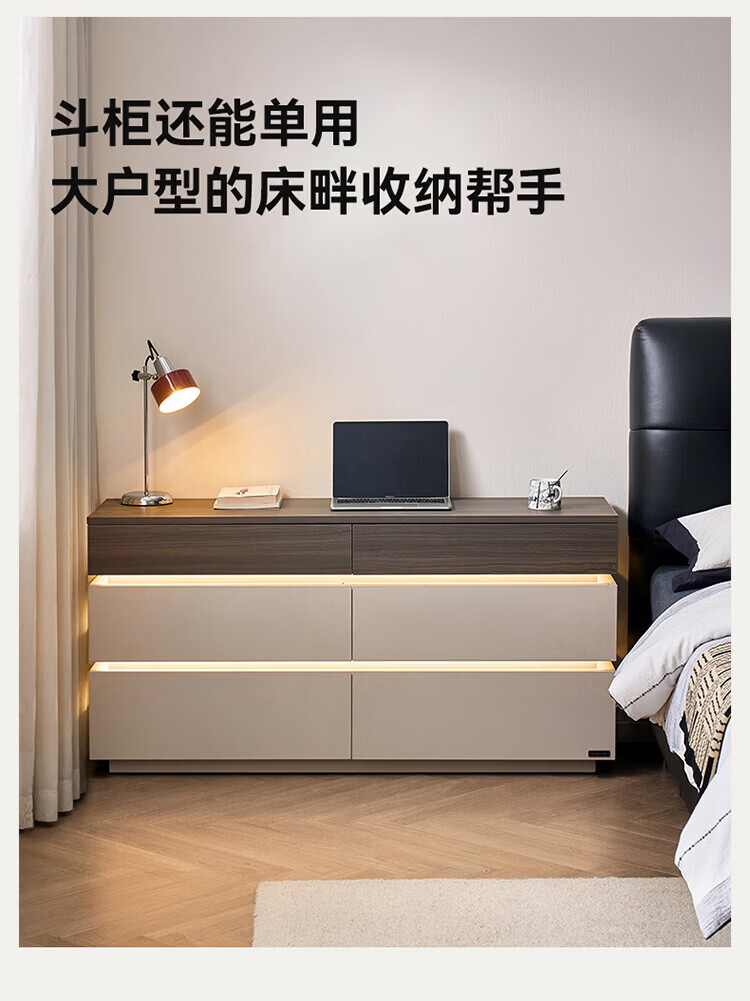 全友(QUANU)【迷瞪直播间】601011浮光妆台柜现代简约风斗柜化妆台一体六斗柜 【HENF级 | 莹月白+雾面灰】六斗柜+搭台
