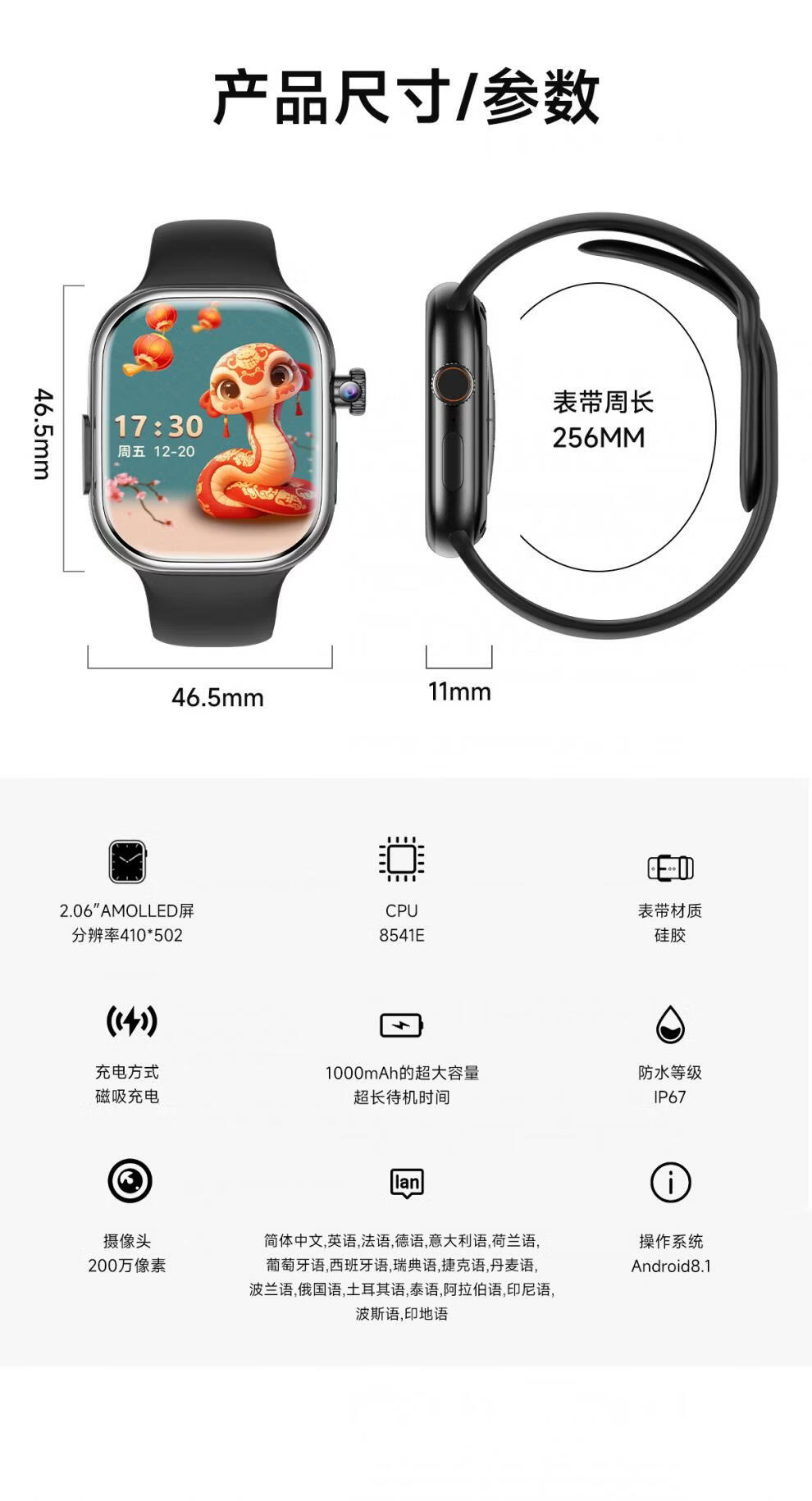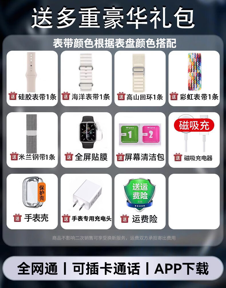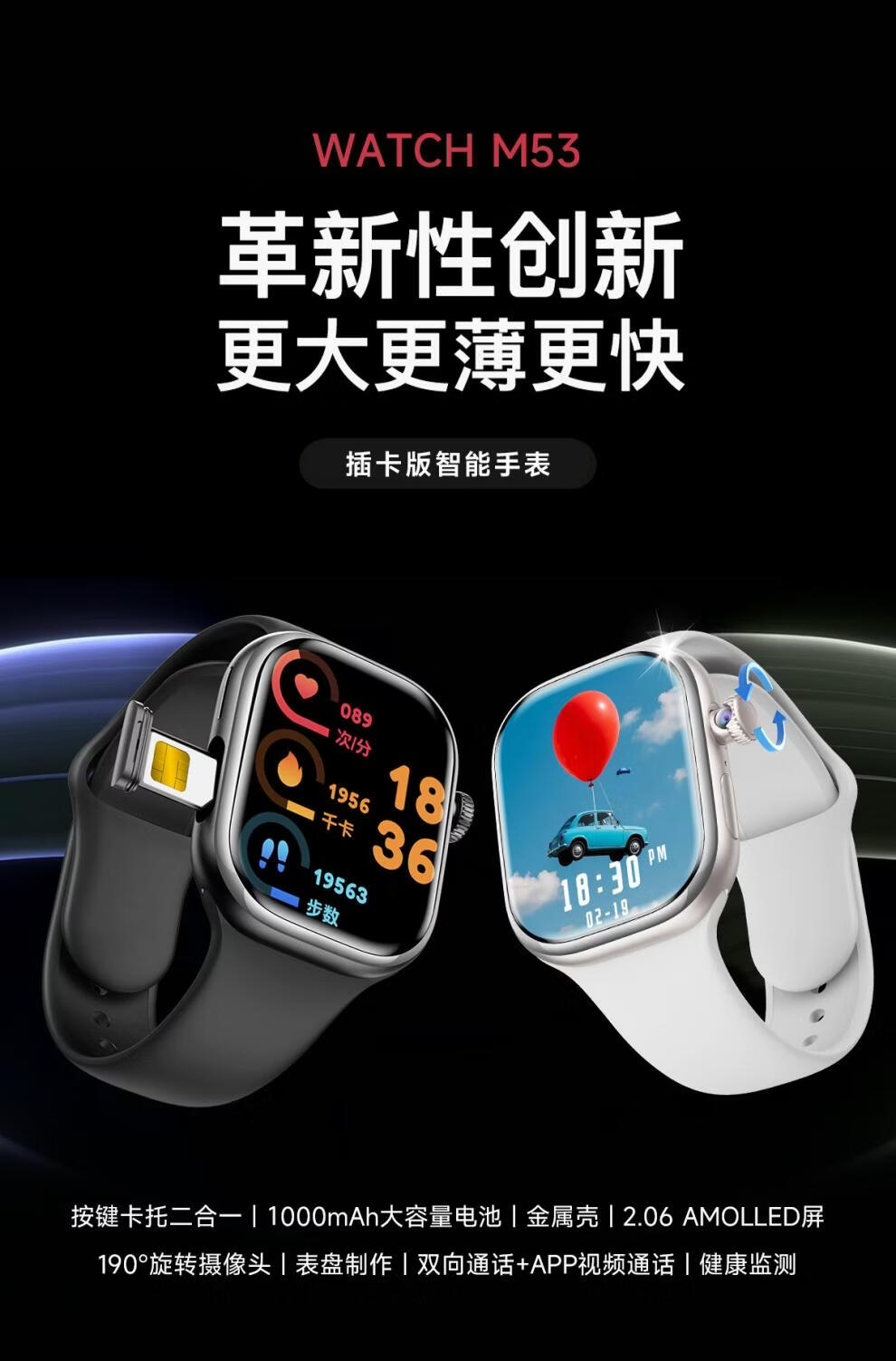 HKQH华强北M9U和顺成5.0mimu智能电话手表可插卡中学生成人男女下载APP学生双模式任意门面 32G银色M9U 摩斯密码2.0·5G通·2.06