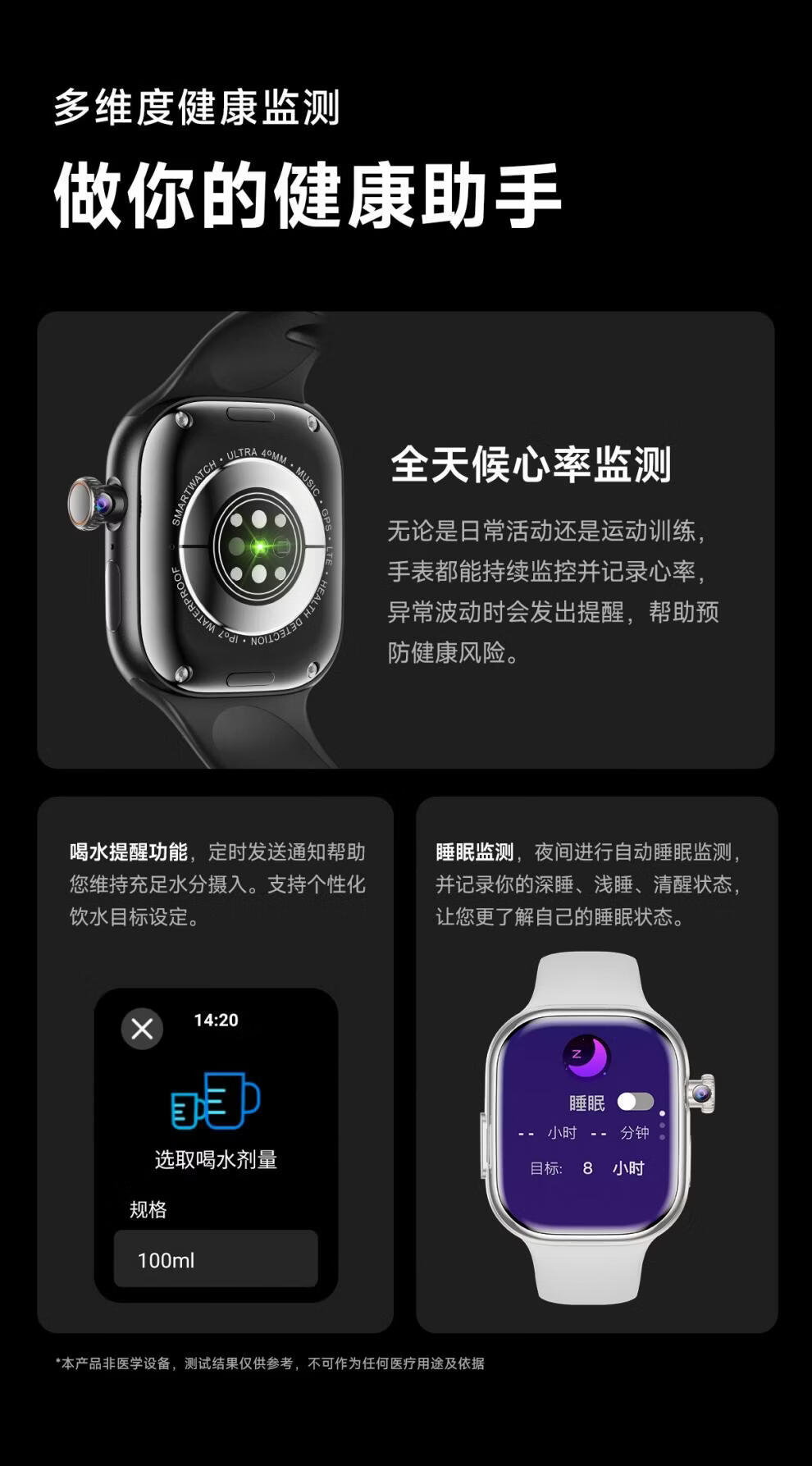颐初健康预警手表X6 血压手表血糖监测手表心率血氧心脑梗智能手表血脂尿酸无创免扎针趋势监测手表 X6智能健康监测预警-翟石黑
