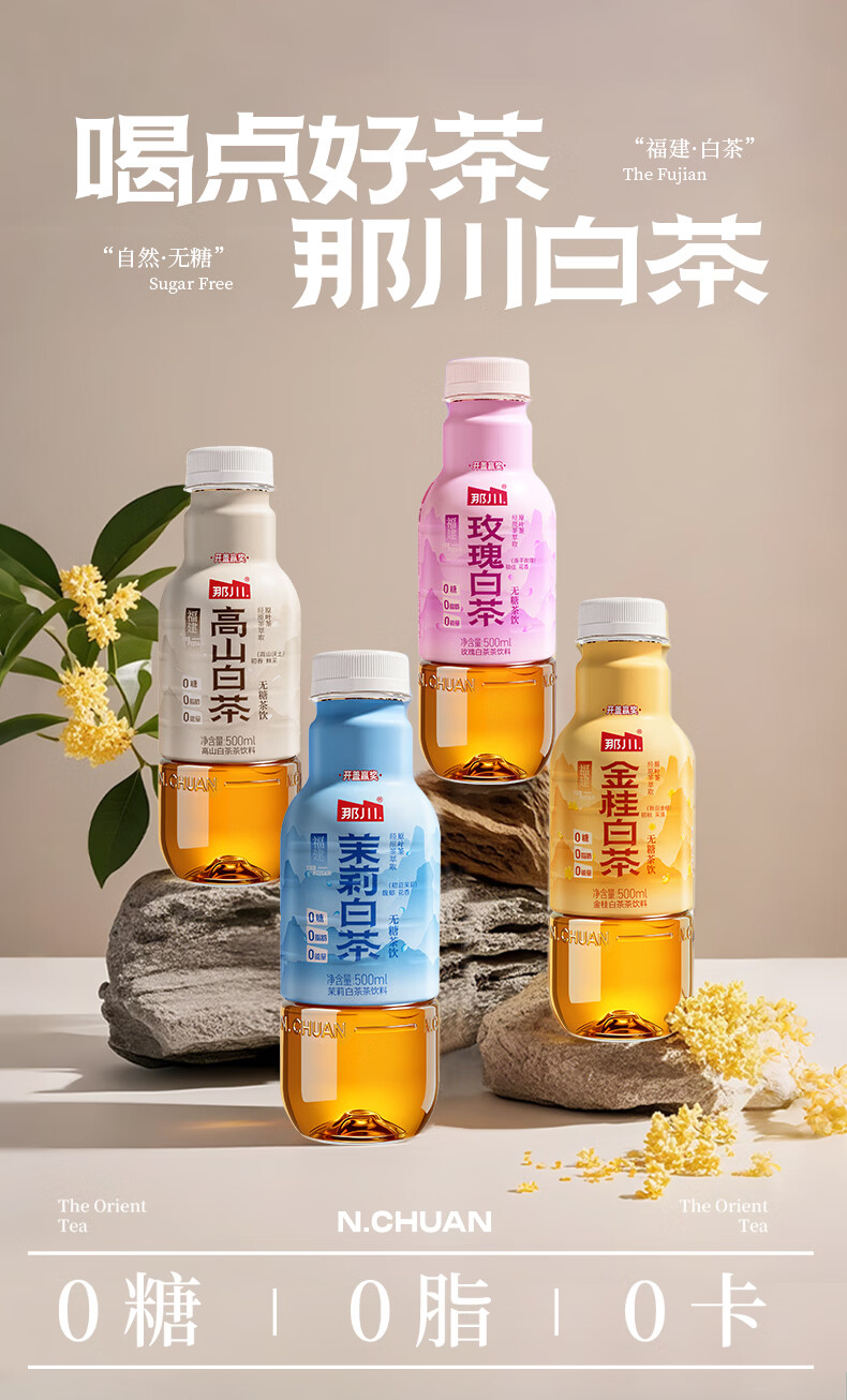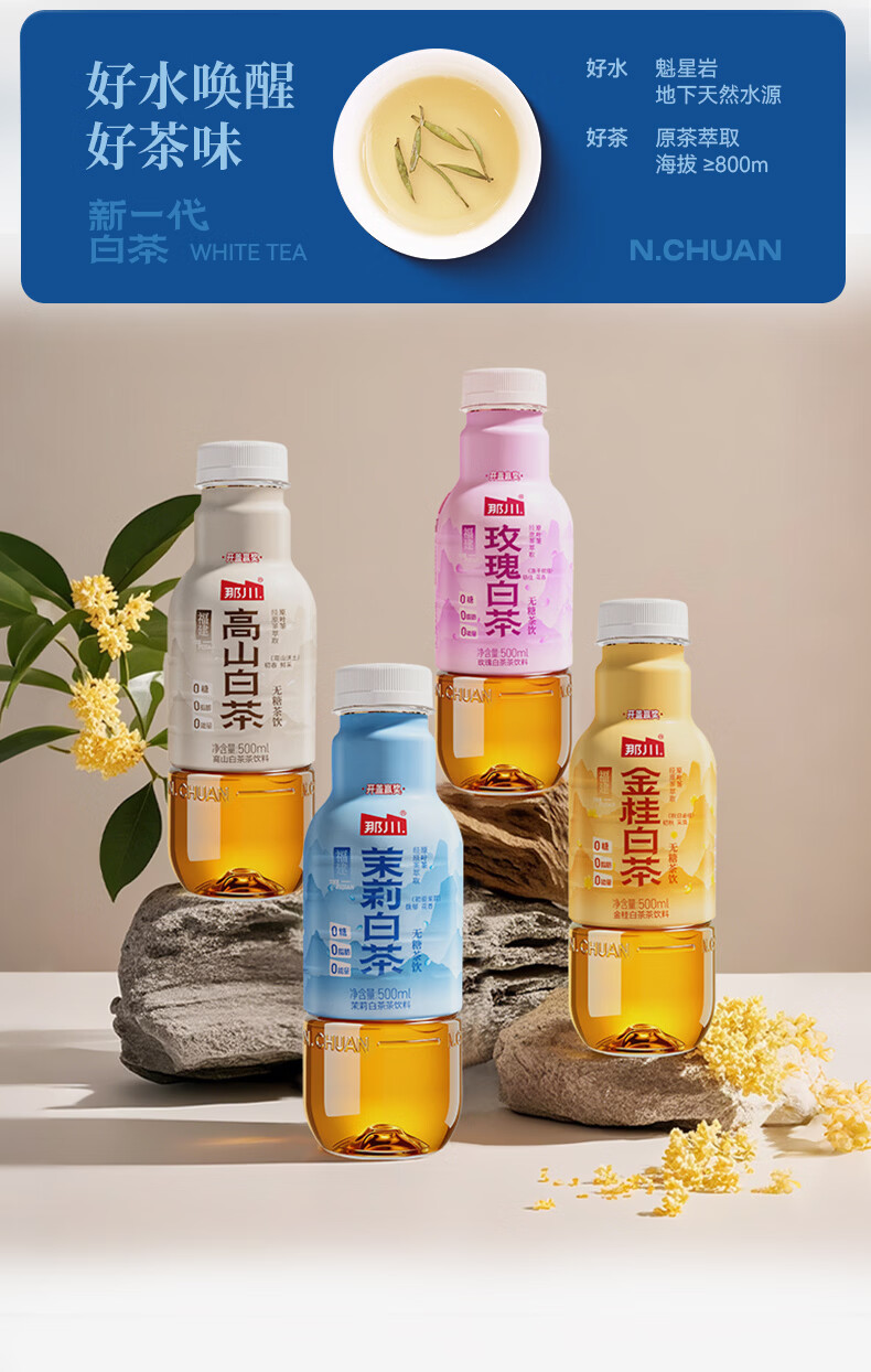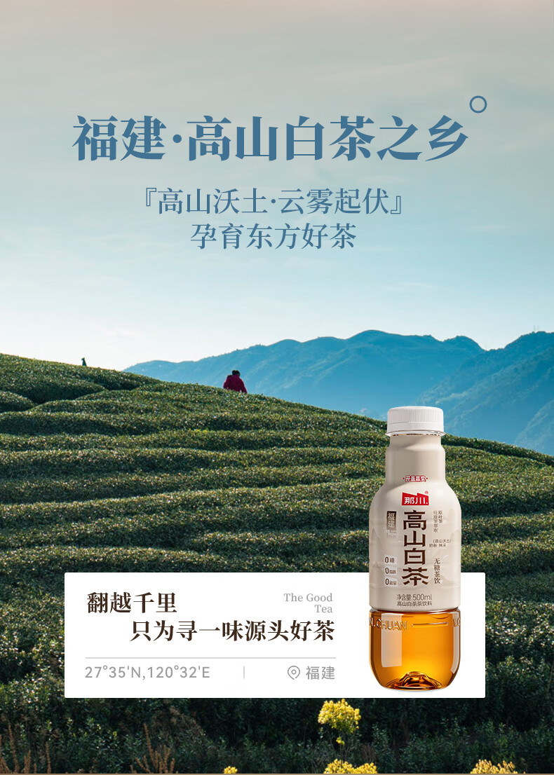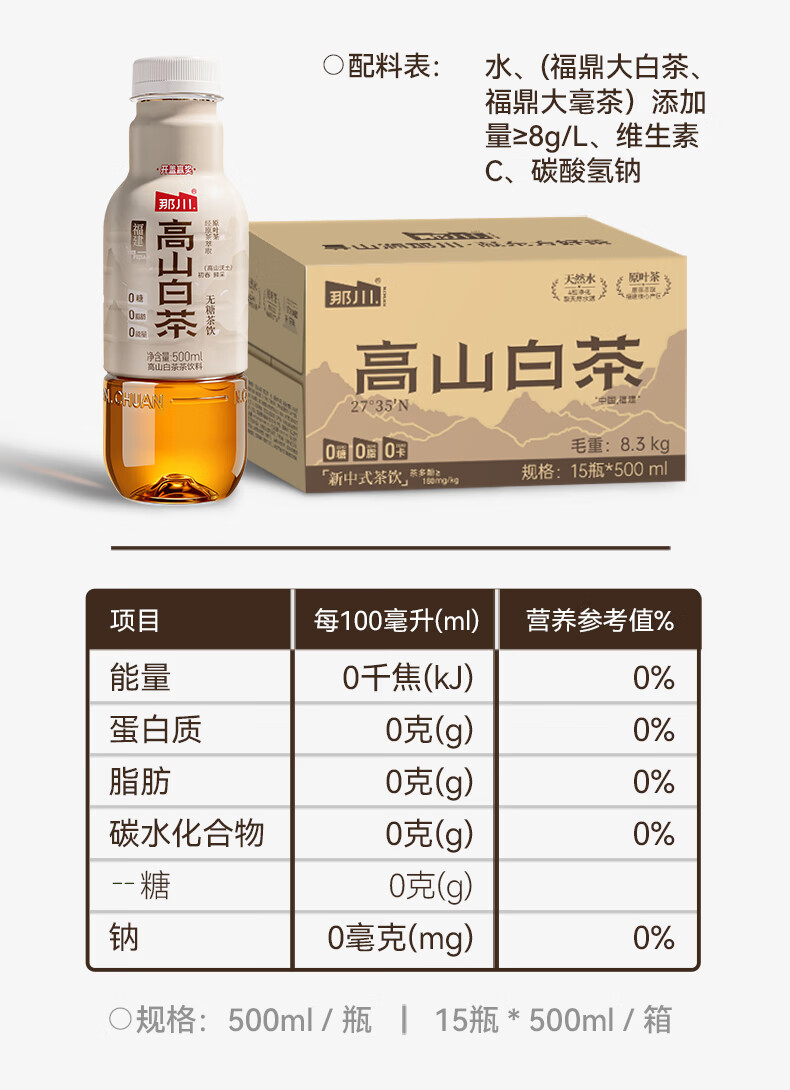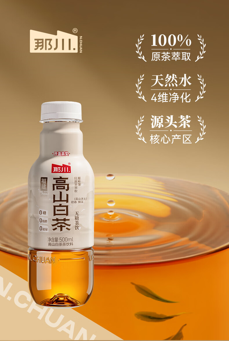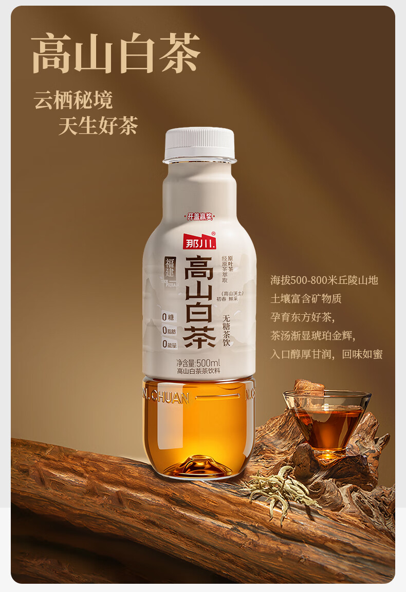 那川无糖茶 高山白茶 纯茶饮料 原叶萃取 0糖0脂0卡 500ml*15瓶整箱装 高山白茶500ml*15瓶【整箱装】