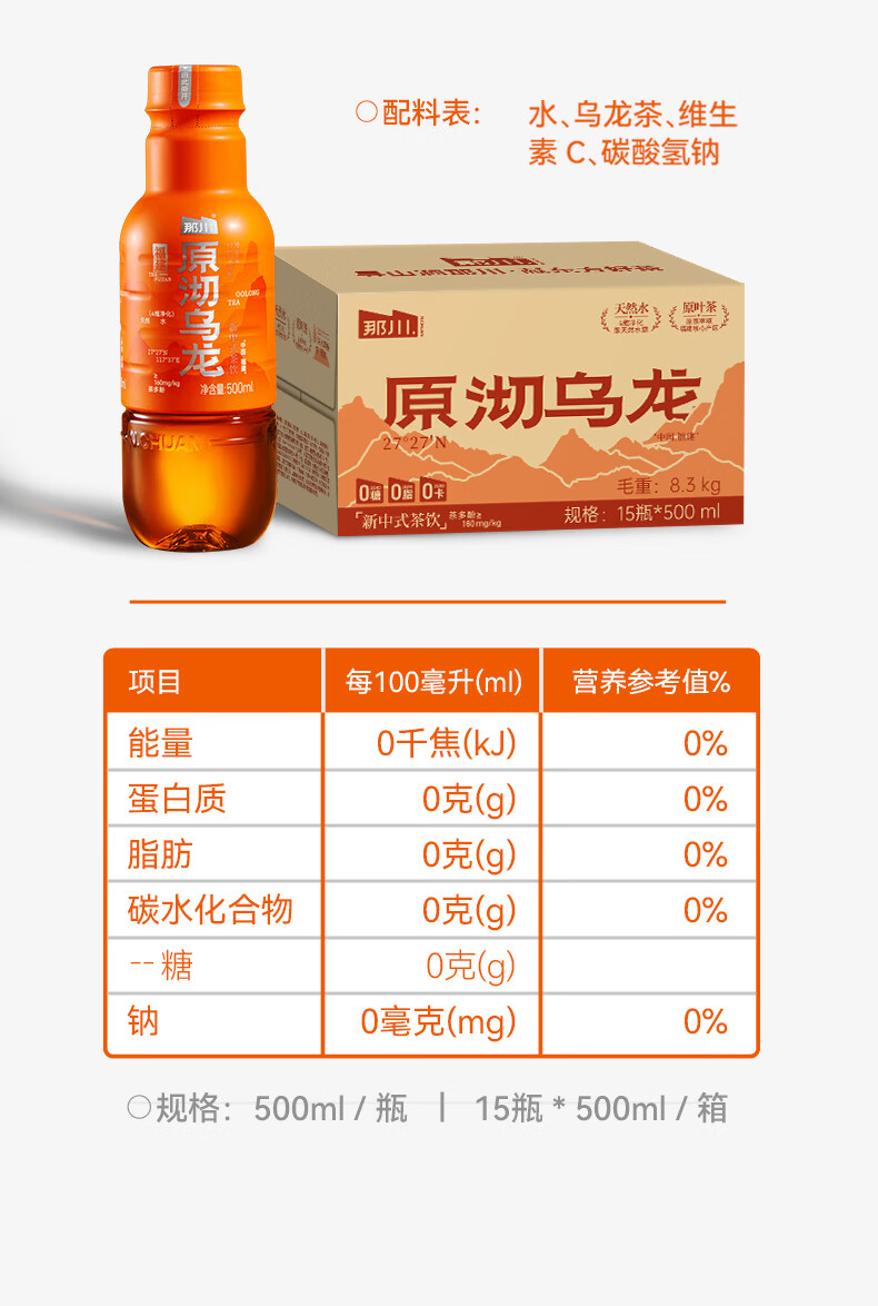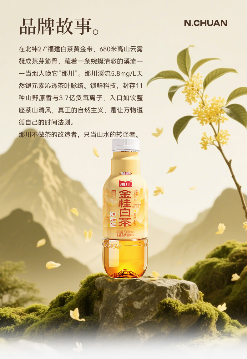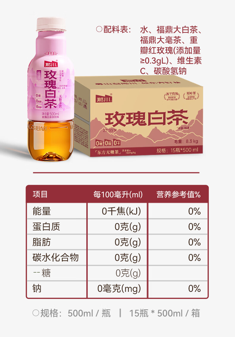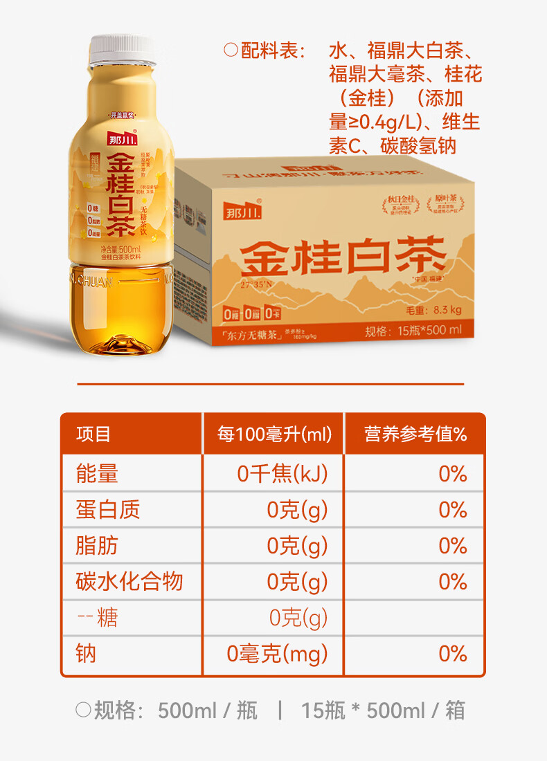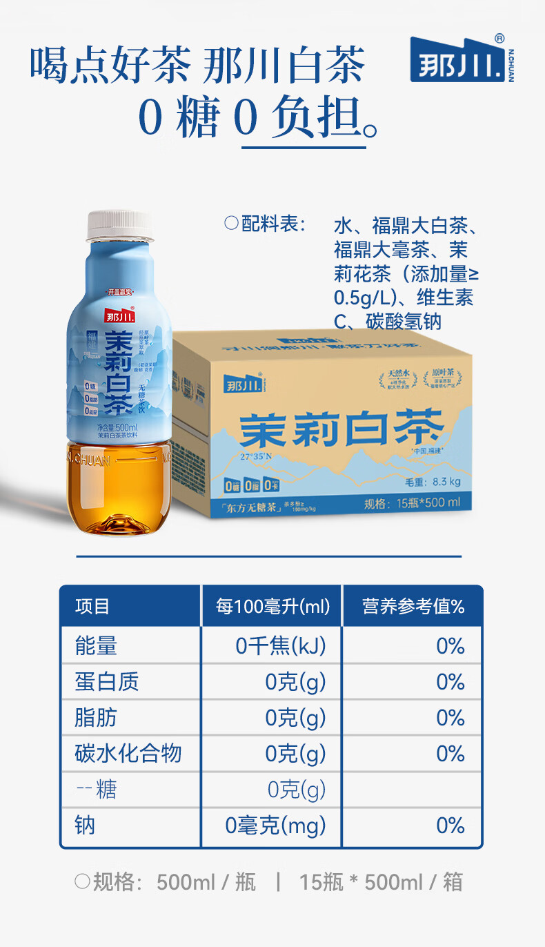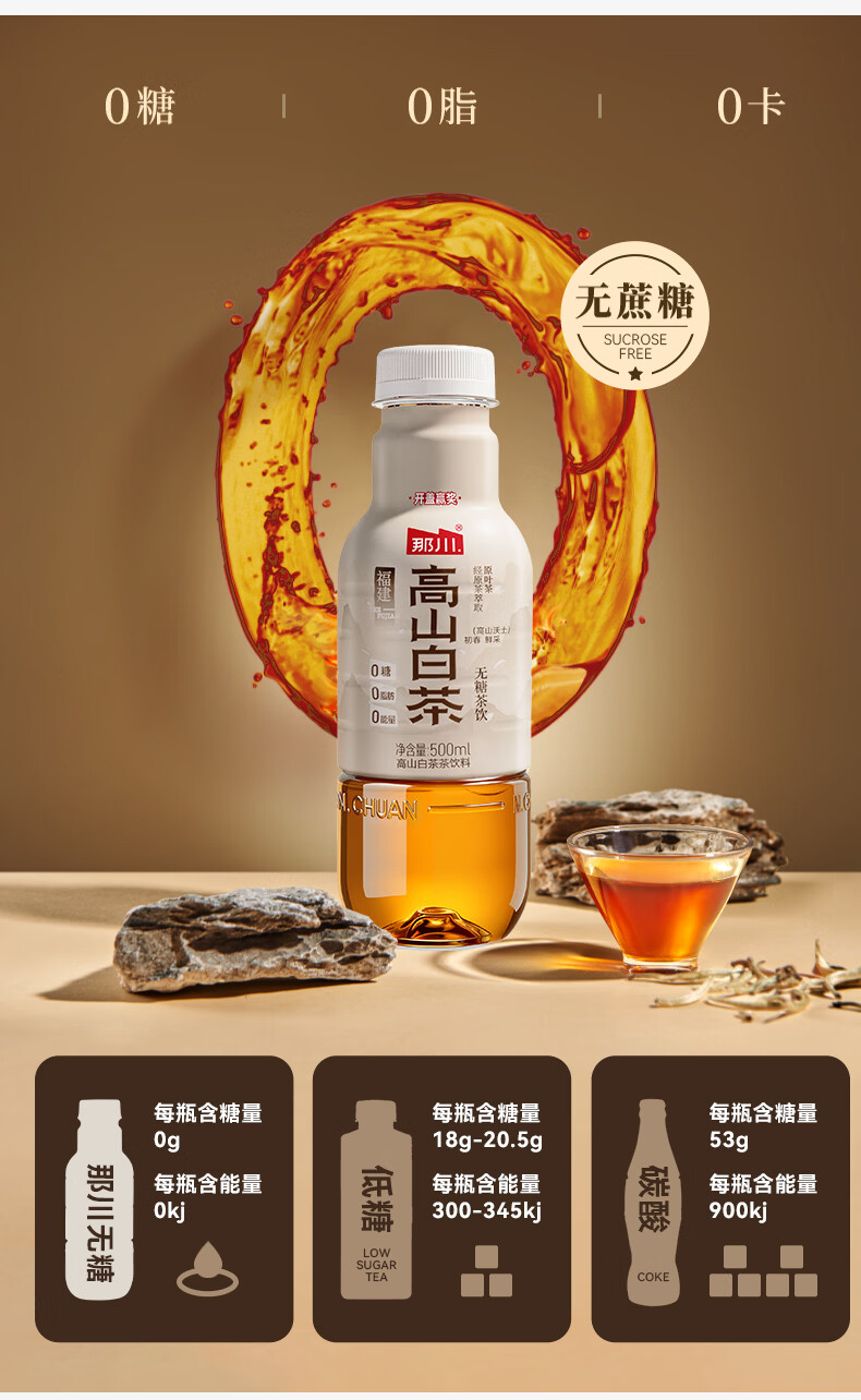 那川无糖茶 高山白茶 纯茶饮料 原叶萃取 0糖0脂0卡 500ml*15瓶整箱装 高山白茶500ml*15瓶【整箱装】