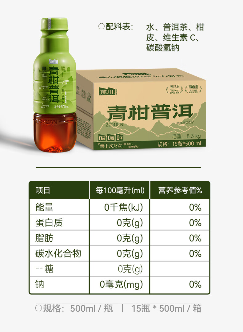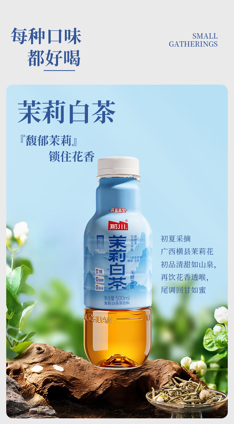 那川高山茉莉玫瑰白茶乌龙青柑普洱无糖茶 纯茶解渴饮料500*15瓶整箱 高山3+金桂3+玫瑰2+茉莉3+青柑2+乌龙2