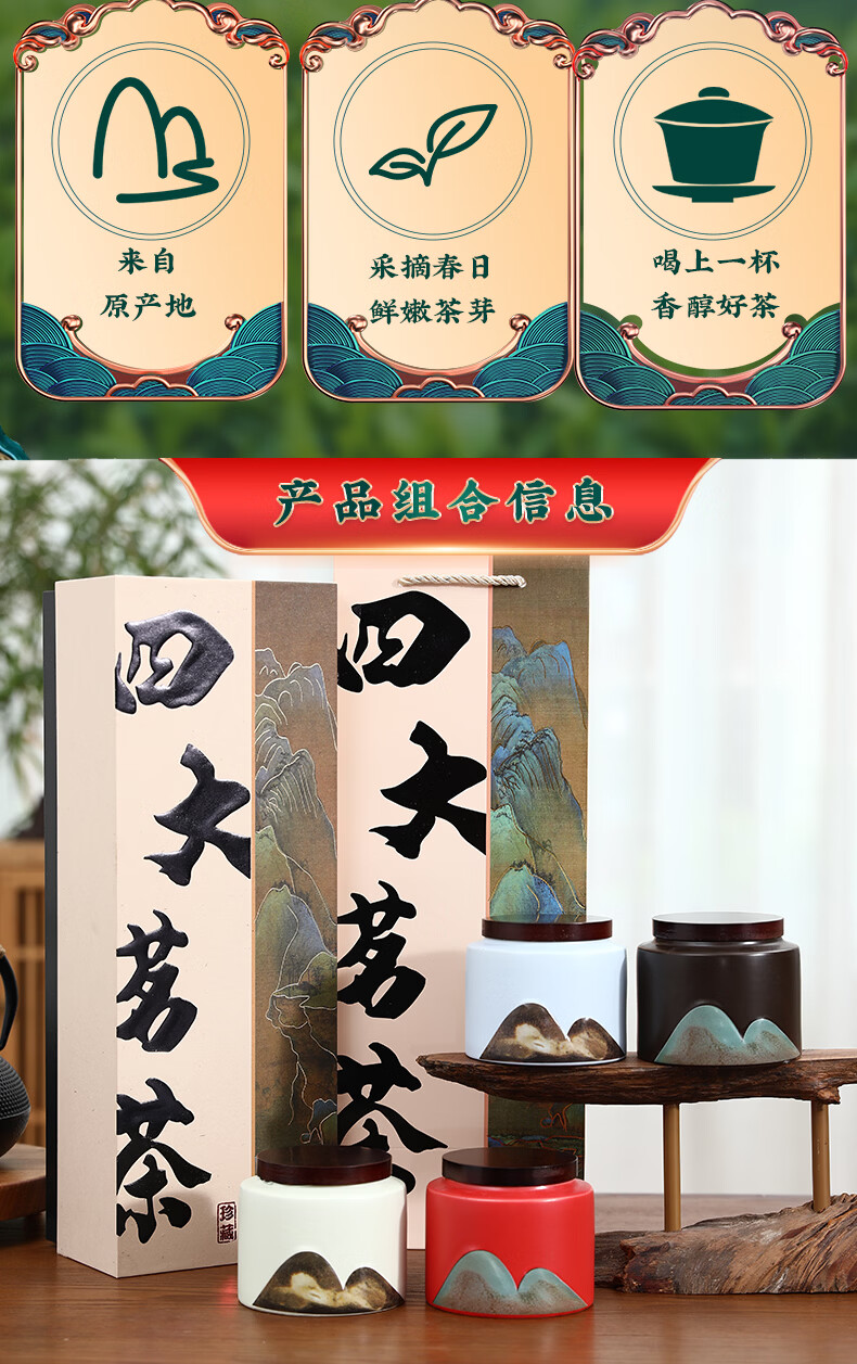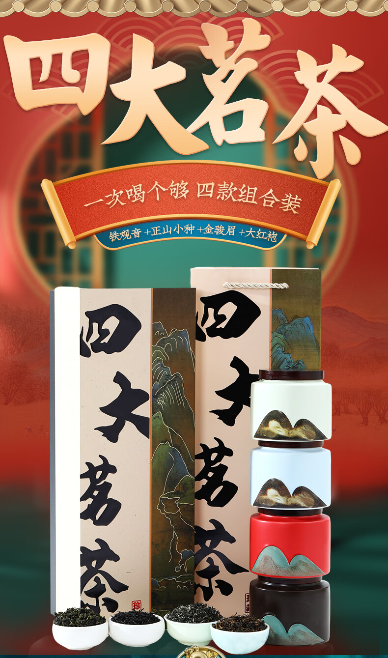 杭颂 正山小种 茶叶礼盒装特级果香红茶 年货送礼长辈领导节日礼物 【四大茗茶】金骏眉正山小种铁观音大红袍礼盒200g