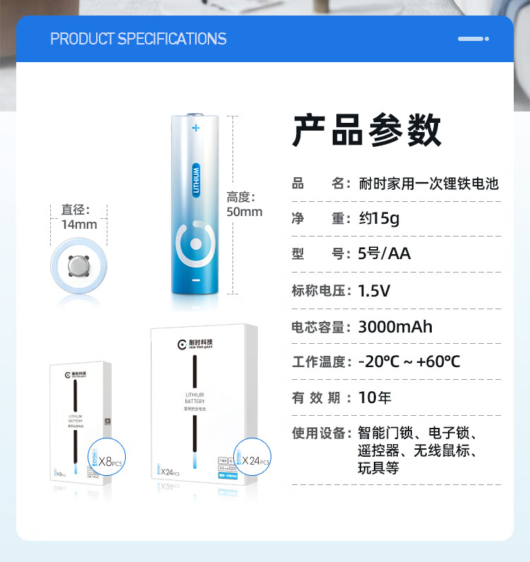 耐时(NICE)5号电池无汞环保锂铁电池 无线鼠标电池玩具电子秤血压仪血糖仪遥控器小风扇电池智能门锁 【限时特惠】7号8粒-电商特惠 专利锂铁电池