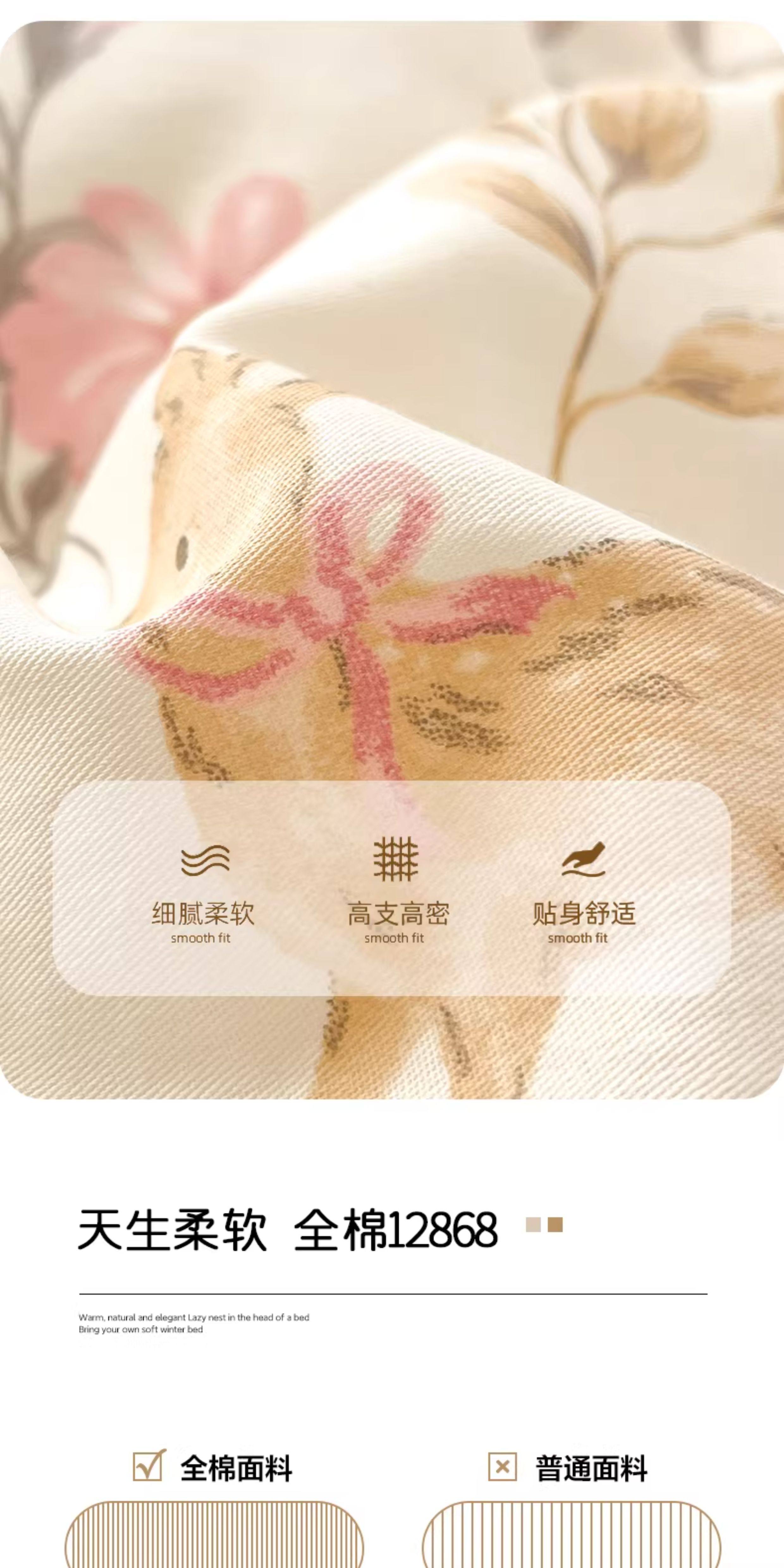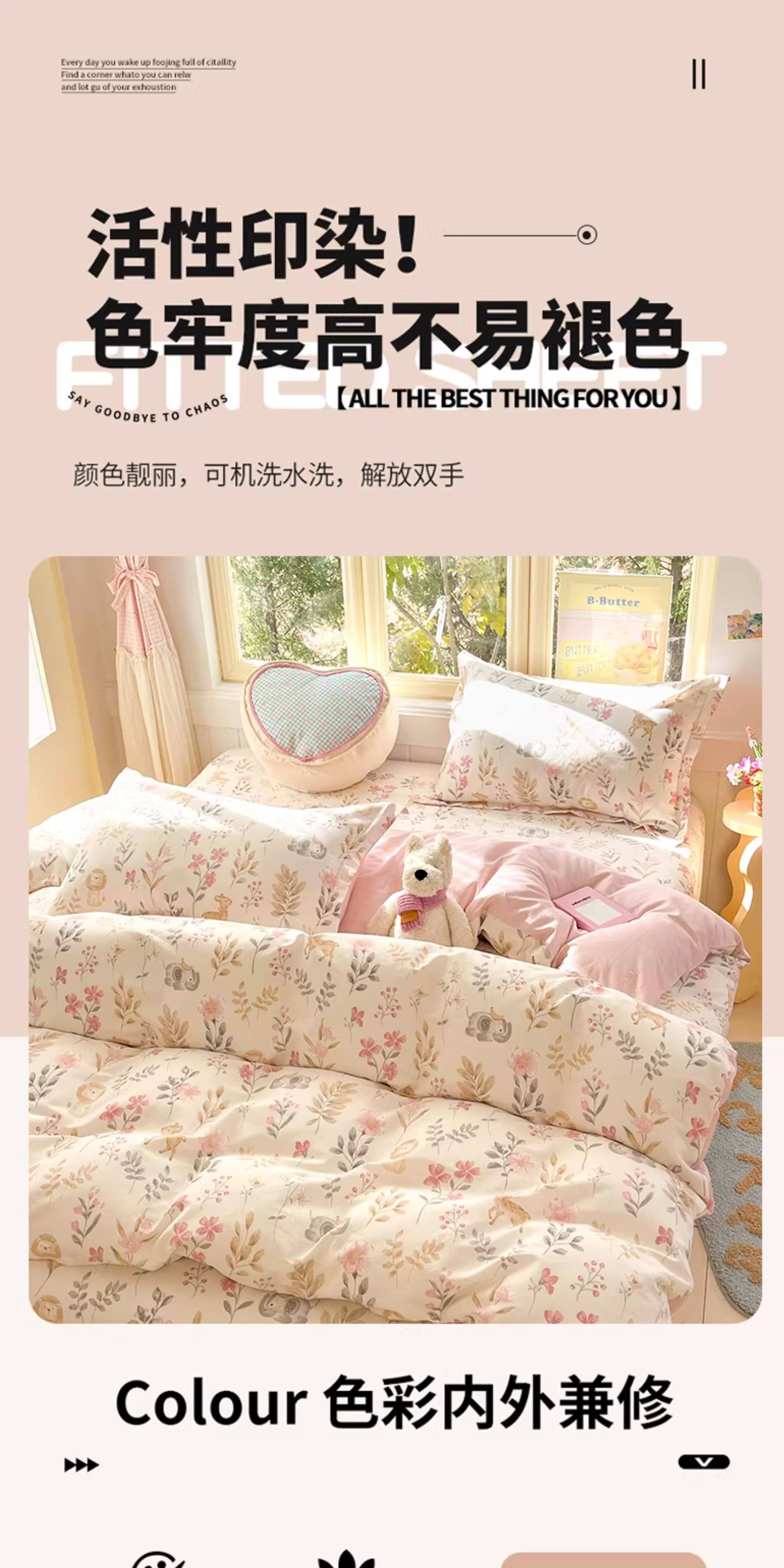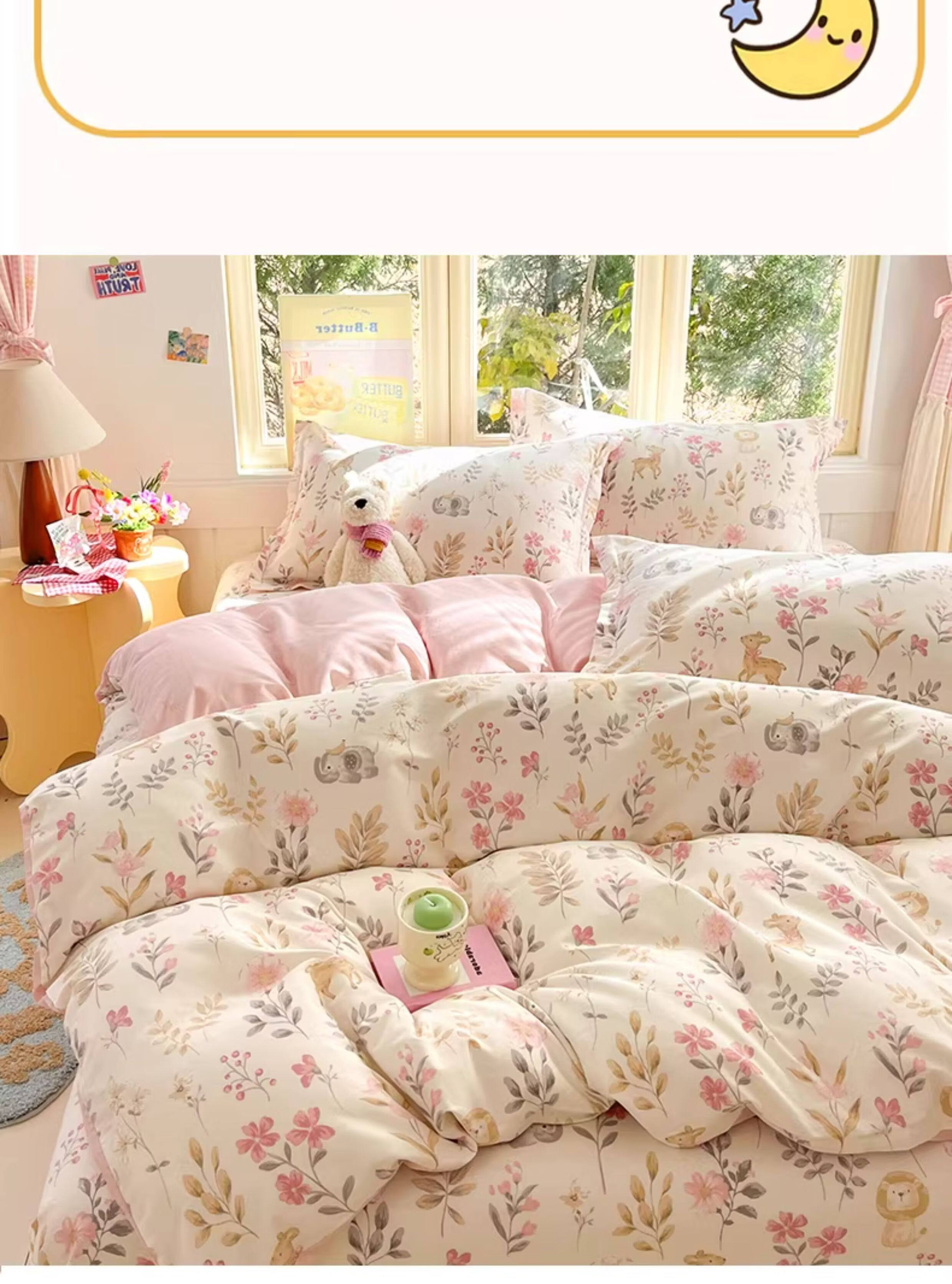 猫人全棉小清新床上四件套纯棉床单被套罩单双人床品三件套四季通用 蓝梦花园【100%新疆全棉精美荷叶边亲肤裸睡】 床笠款 1.5m床四件套【适200*230cm被芯】