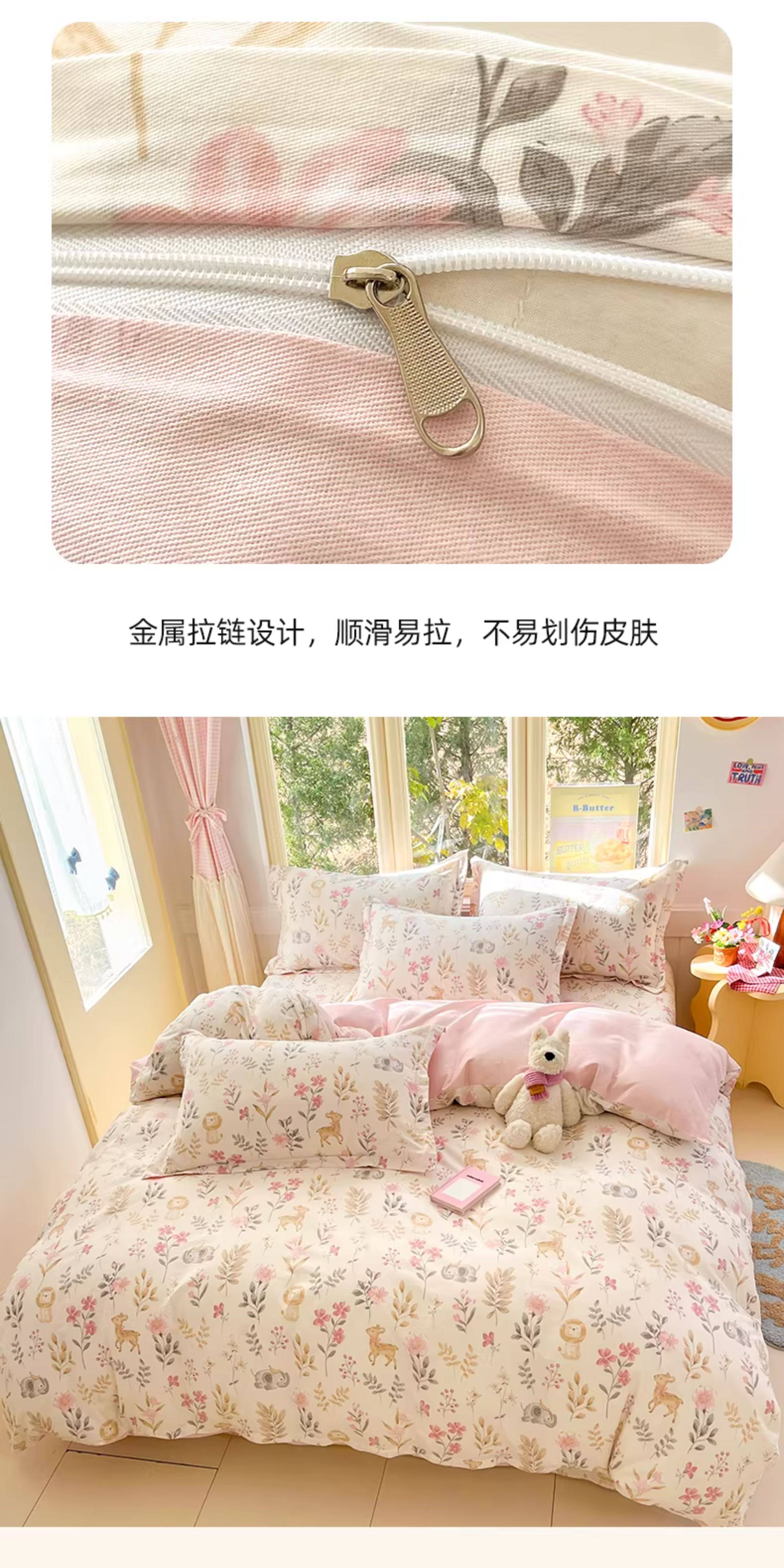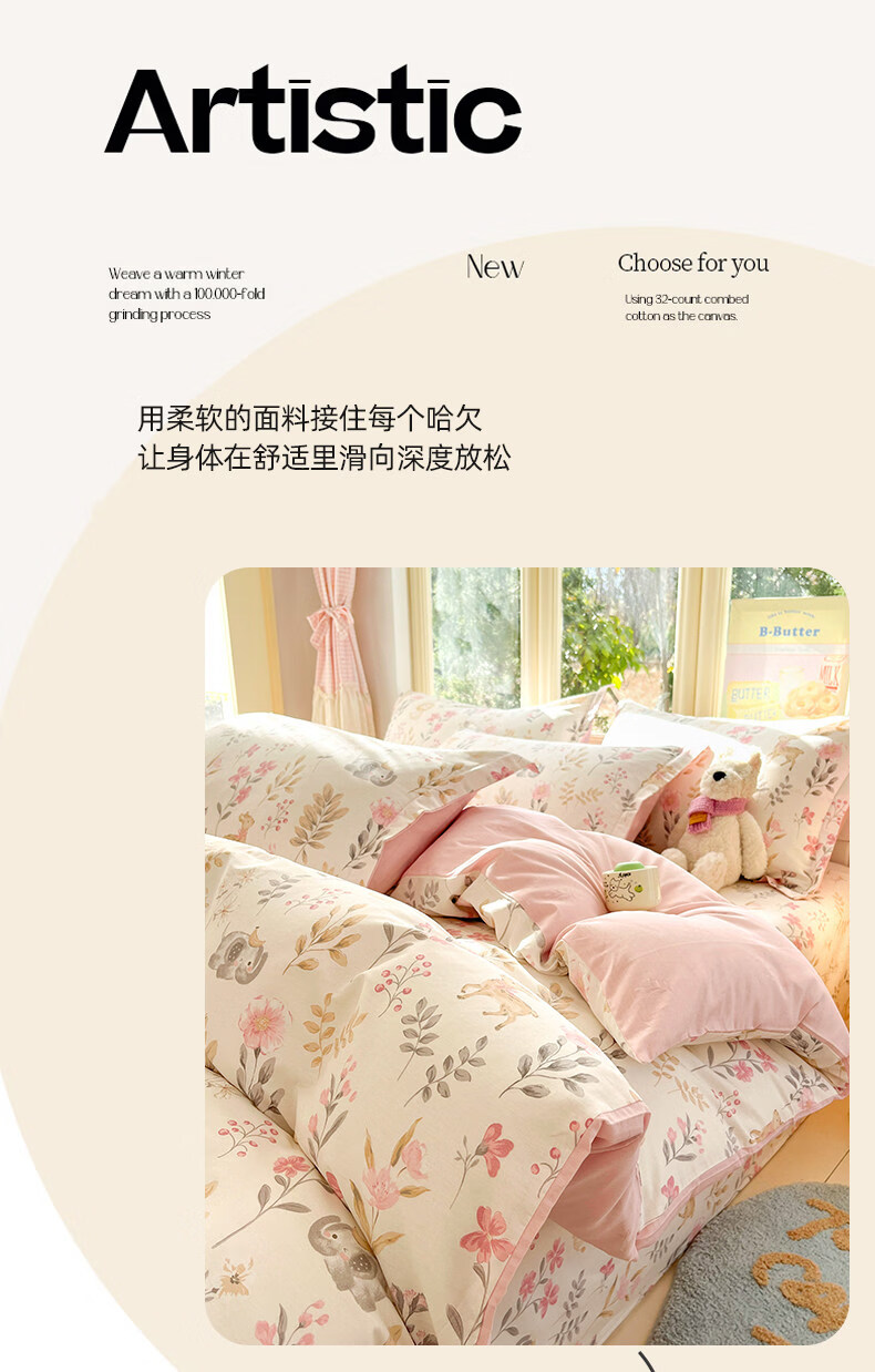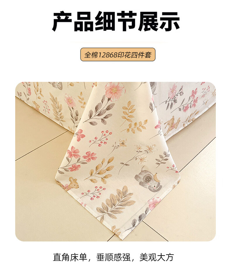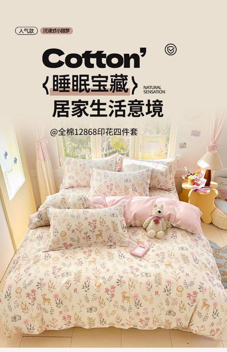 猫人(MiiOW)全棉印花床上四件套家用纯棉床单被套加厚床品宿舍三件套四季通用 浪花轻歌【亲肤全棉丨四季可用】 1.5m 床笠款 四件套-200x230cm被套