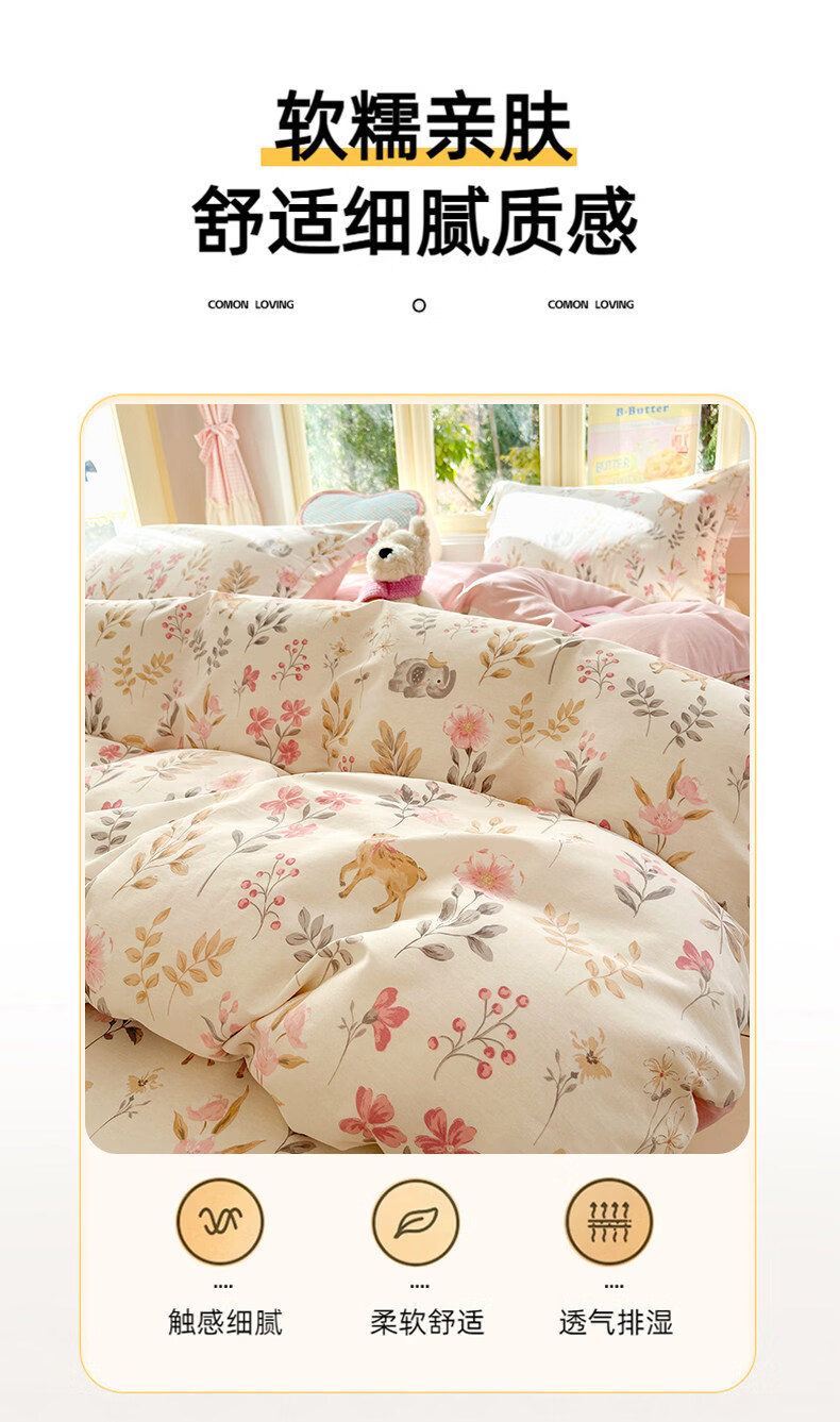 猫人(MiiOW)纯棉四件套全棉床上用品2026新款宿舍床单被套被罩三件套四季通用 A类升级款-浅蓝灰【100%全棉水洗棉越洗越柔】 床单款 2.0m床四件套适220x240cm被芯