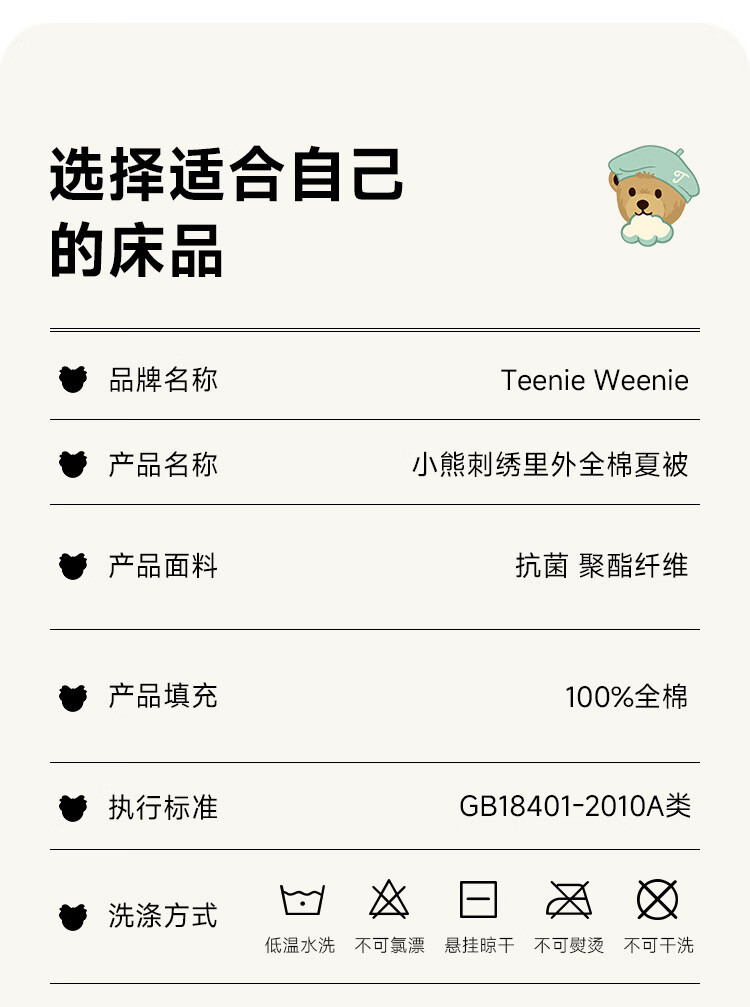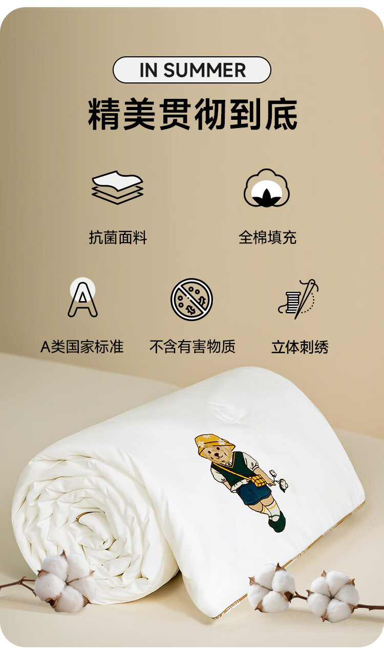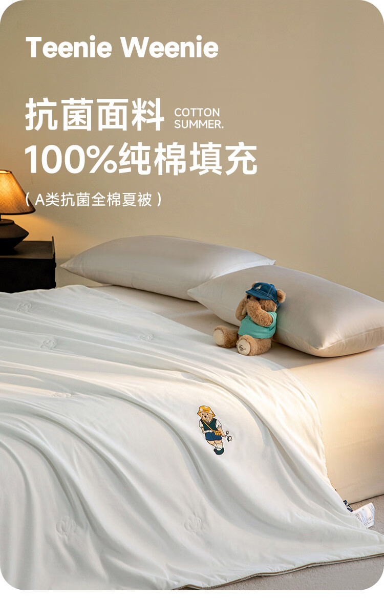 Teenie Weenie小熊A类26年春夏新款抗菌棉花被空调被单人双人夏凉被 【抗菌面料+100%棉花填充】 白色 200cm*230cm 双人夏被