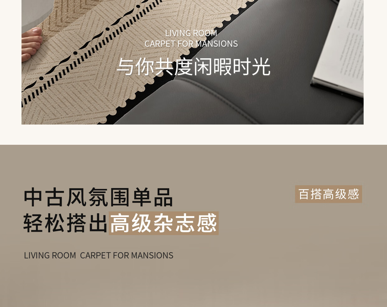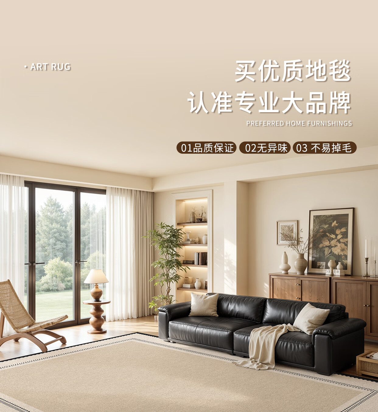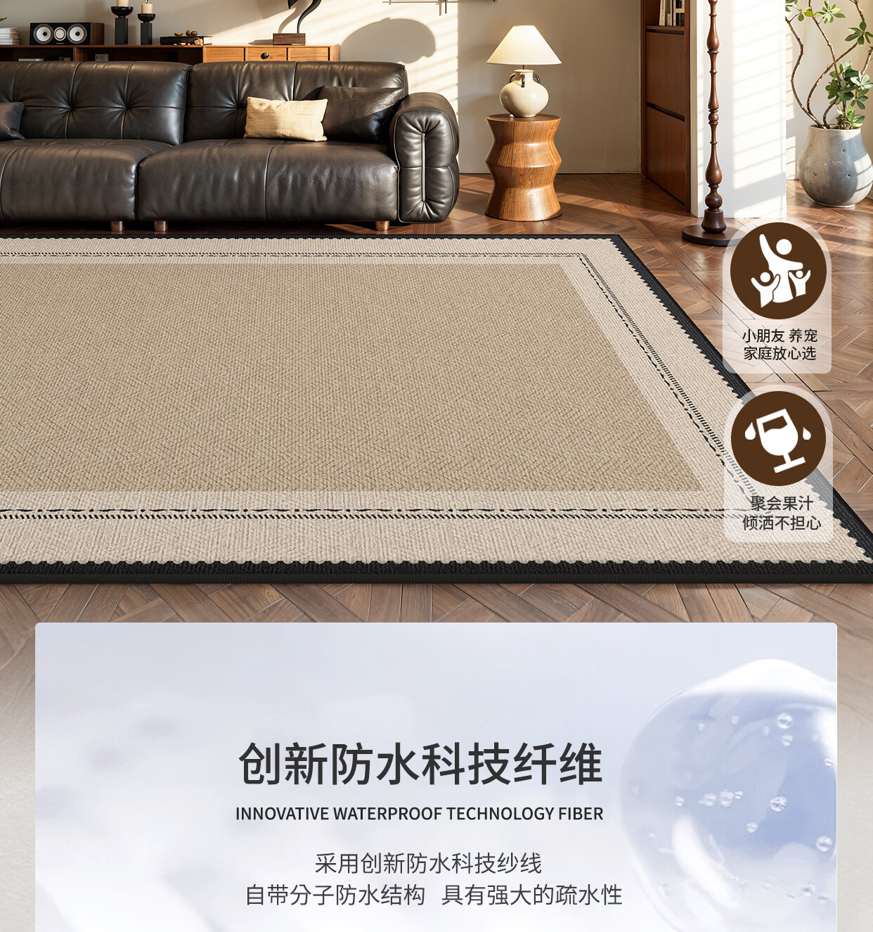 Y U-LIVE地毯客厅中古风2026新款沙发卧室床边垫免洗可擦高级家用轻简约 圈绒棉布-岩秋 定制请联系客服【享优惠】